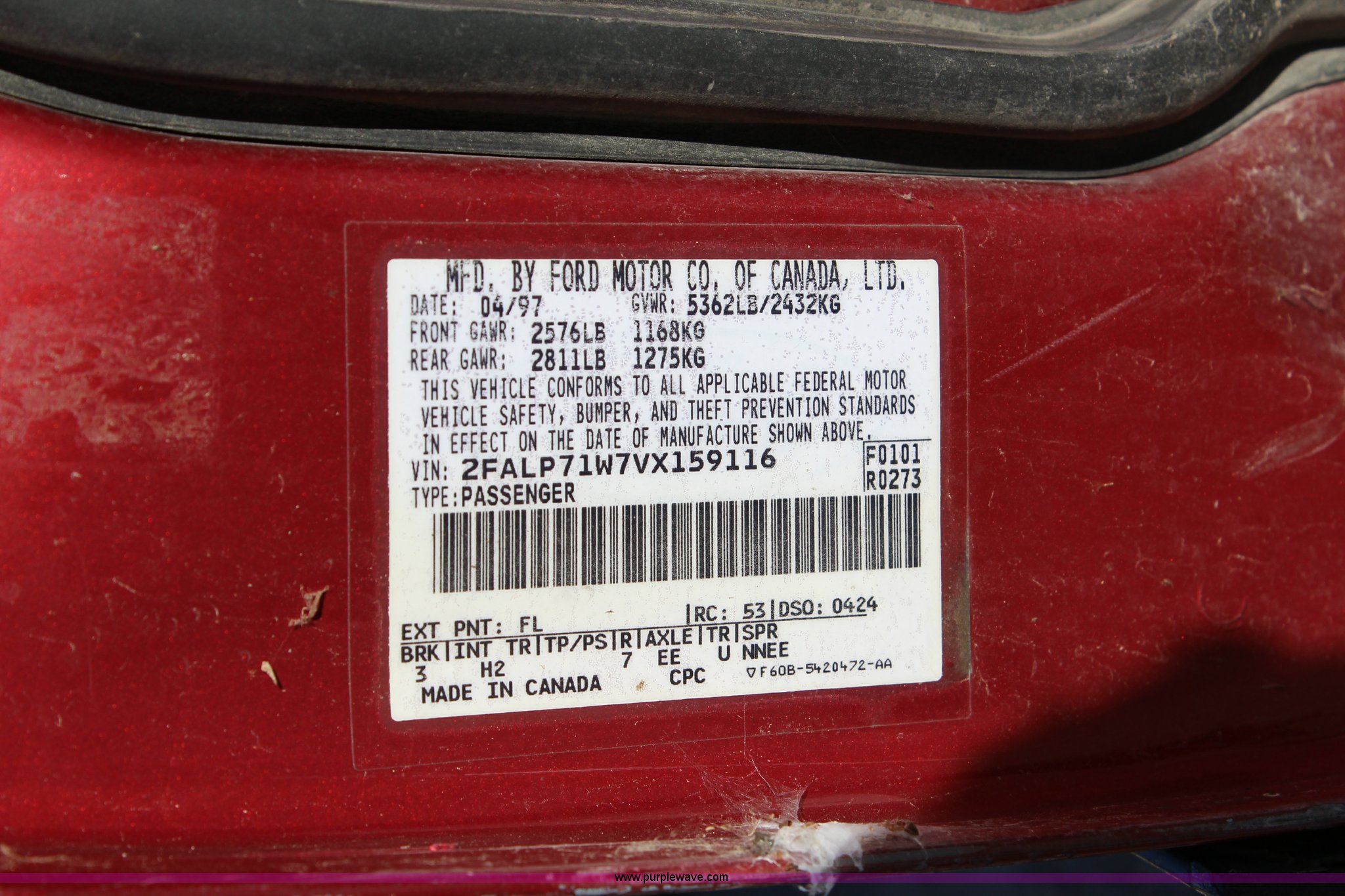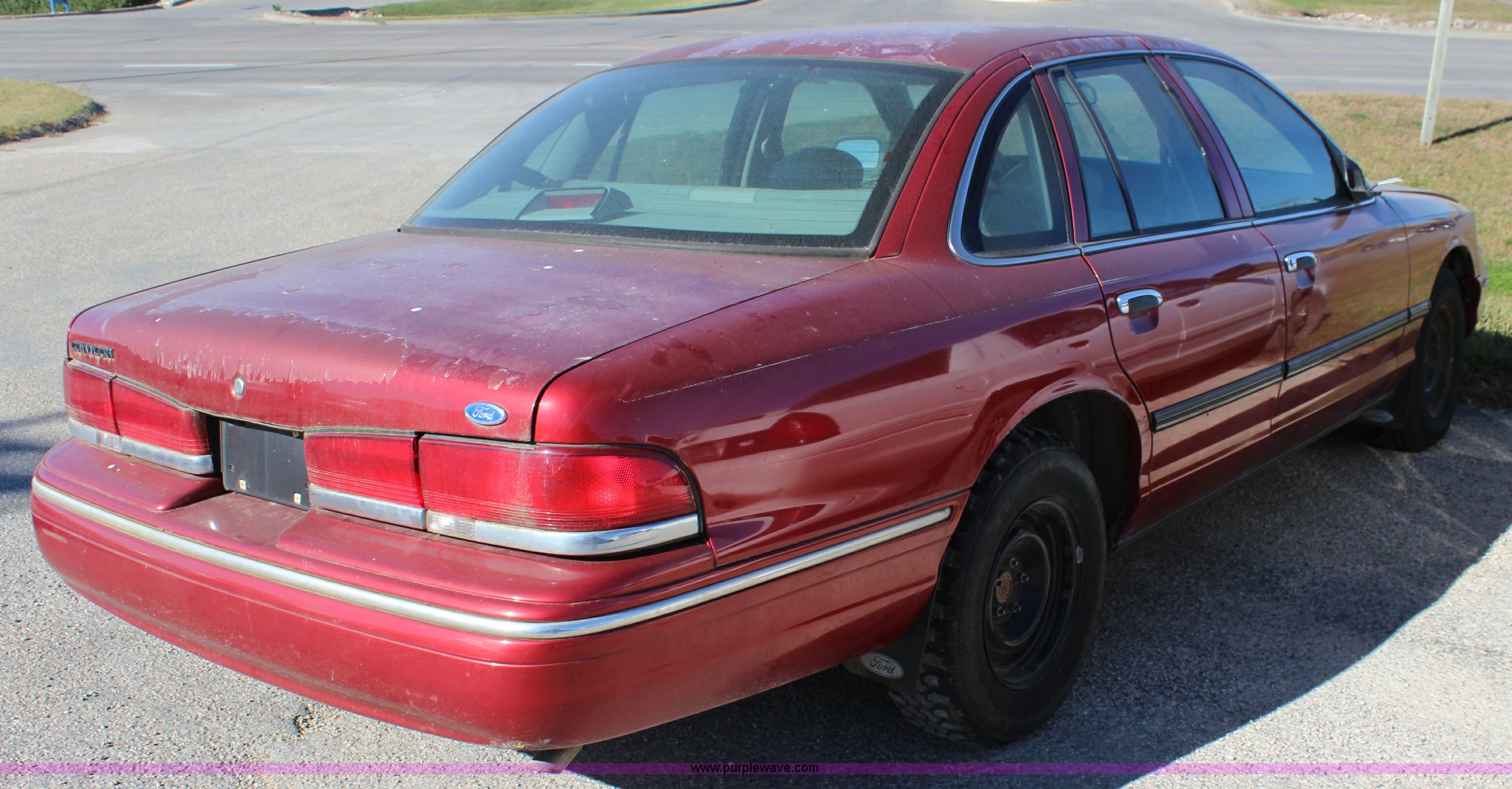 Purple Wave is selling a used Passenger Vehicle in Kansas. This item is a 1997 Ford Crown Victoria Police Interceptor with the following: 224,686 miles on odometer, 4.6L V8 SOHC 16V gas engine, Automatic transmission, AC and heat, Tilt, Cruise, Power windows, locks, mirrors, and seat, Cloth interior, P215/75R15 tires, Interior/exterior cosmetic damage, Right mirror missing, Radio missing, Non-operational unit