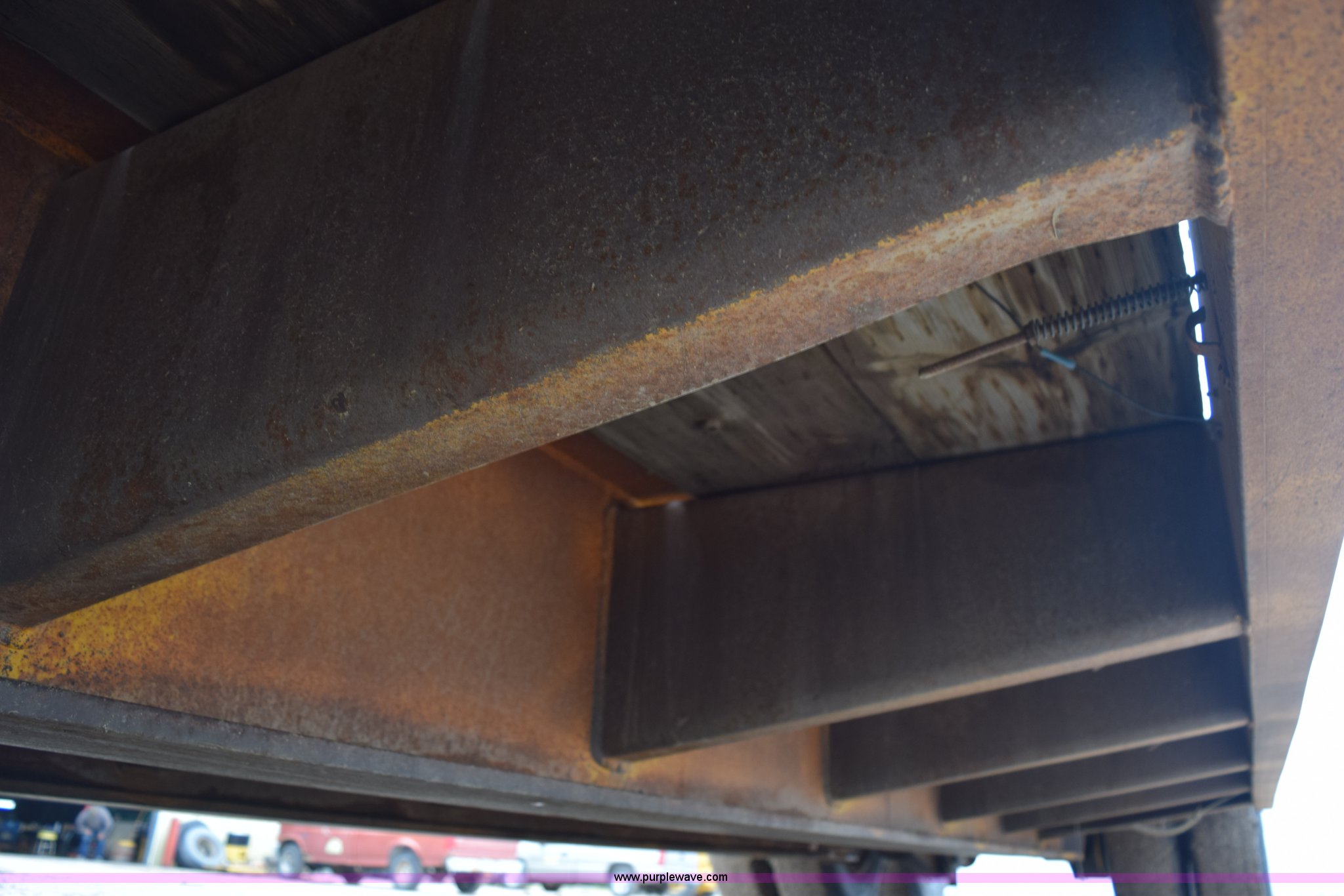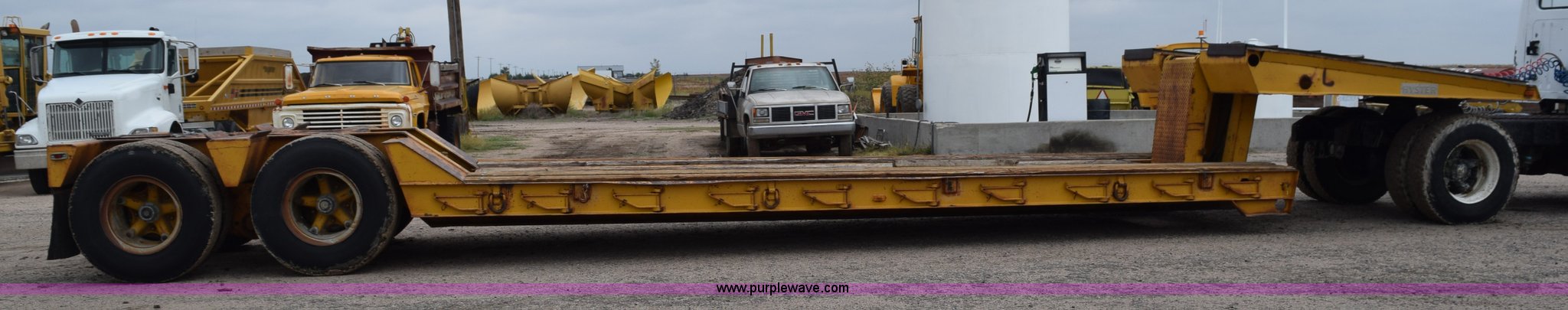 Purple Wave is selling a used Equip. Trailer in Kansas. This item is a 1978 Hyster lowboy equipment trailer with the following: 33'L x 8'W, 23'L main deck, 10'L neck, 12"W outriggers, Hydraulic detach, Kohler 12 HP gas engine, D-ring tie downs, Spring suspension, Air brakes, Tandem axle, 11.00R20 tires