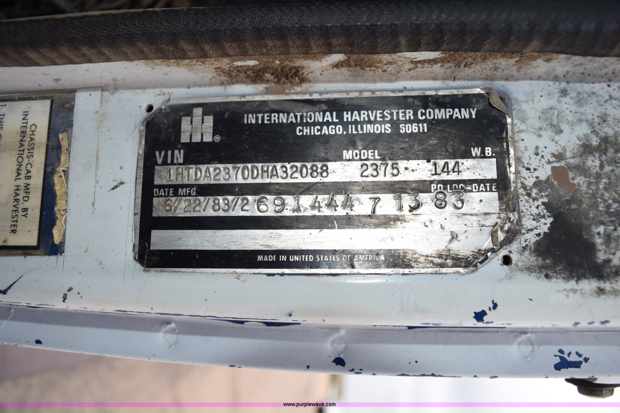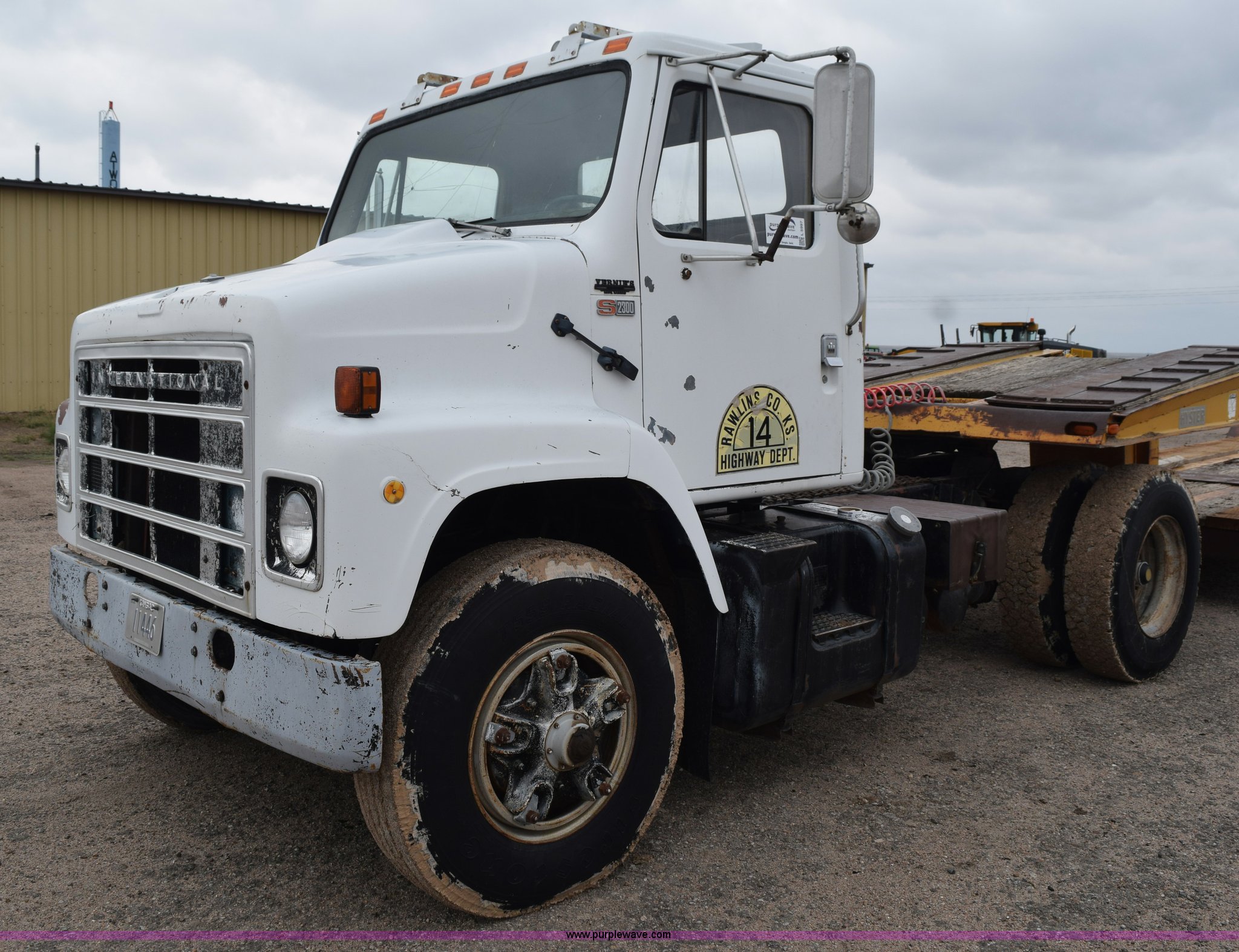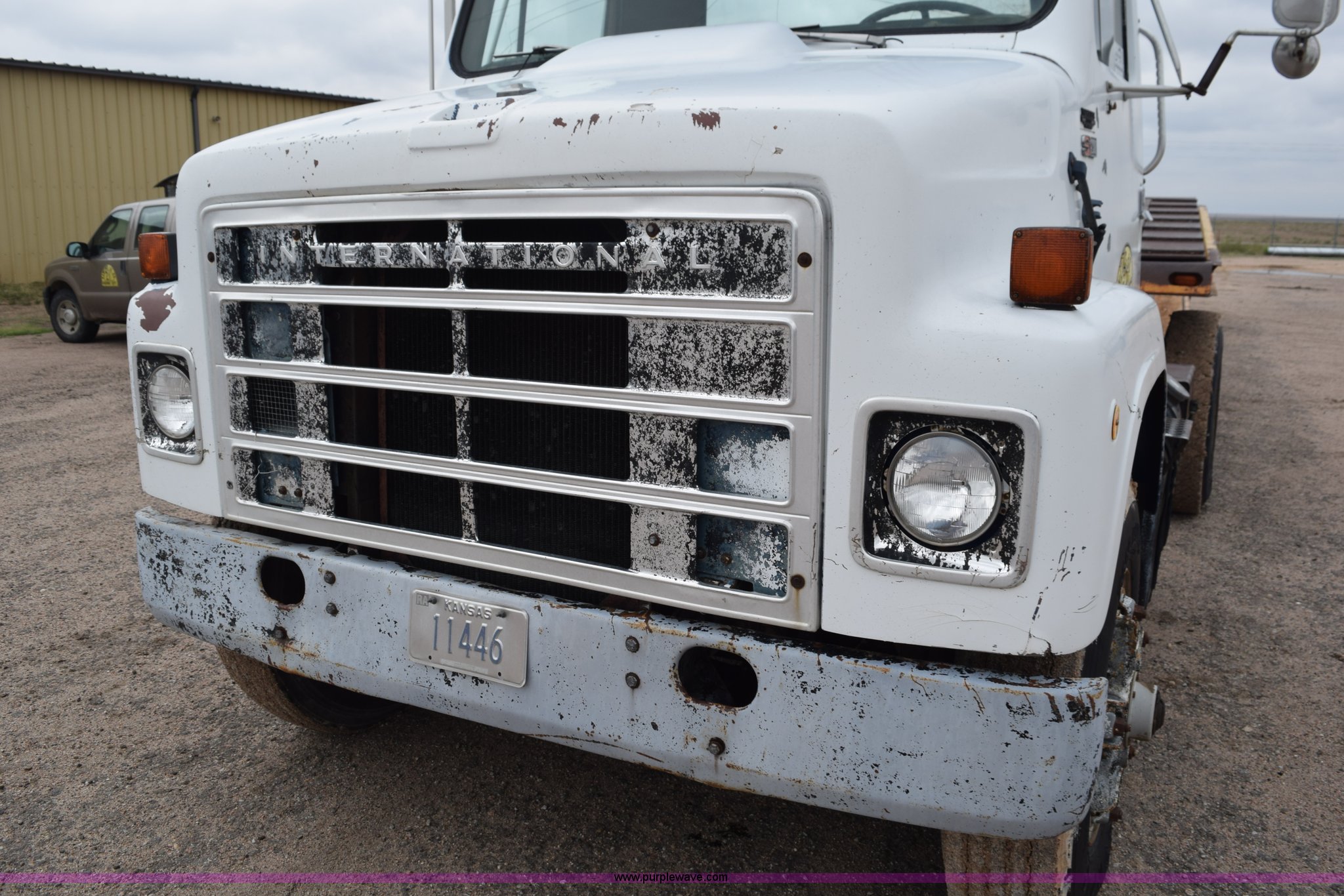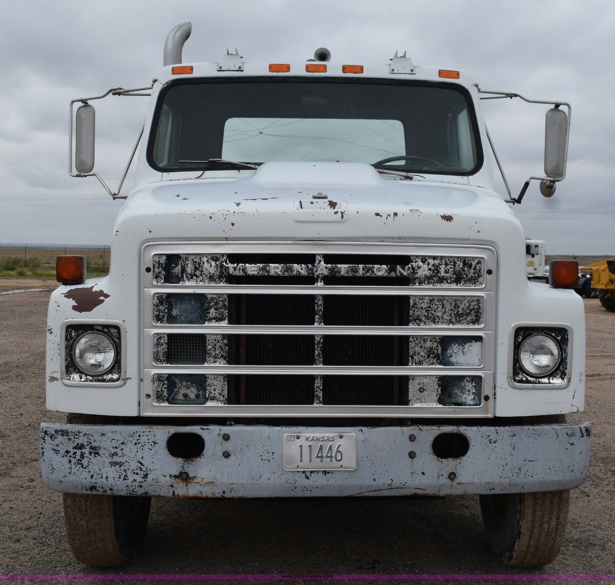 Purple Wave is selling a used Truck Tractor in Kansas. This item is a 1983 International 2375 semi truck with the following: 471,085 miles on odometer, Cummins six cylinder turbo diesel engine, Seven speed manual transmission, Single axle, Heat, Air suspension seat, Ether start, Single rear exhaust stack, Fixed fifth wheel, Dual fuel tanks, Spring suspension, Air brakes, 144" wheelbase, 11R22.5 tires, Cracked windshield
