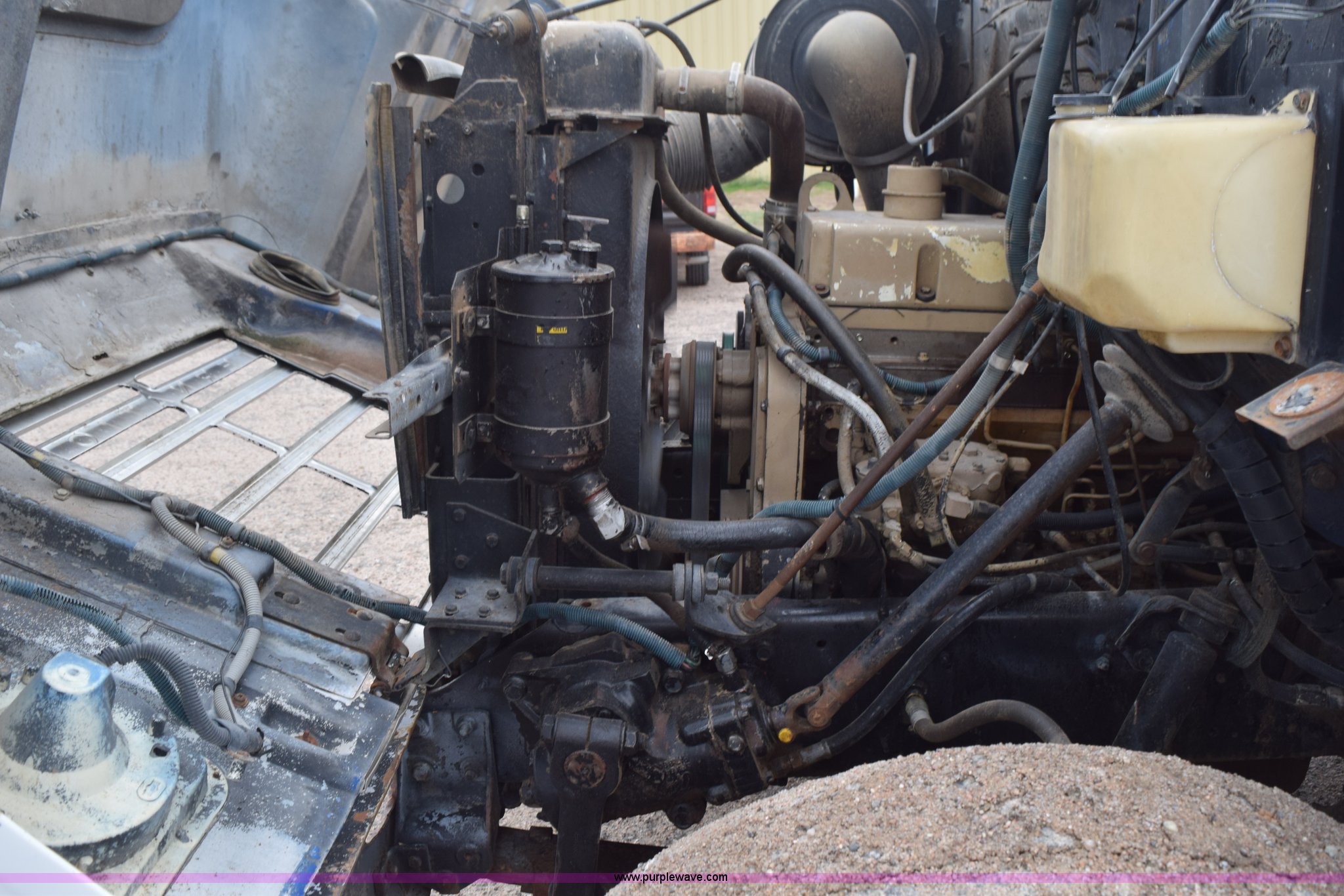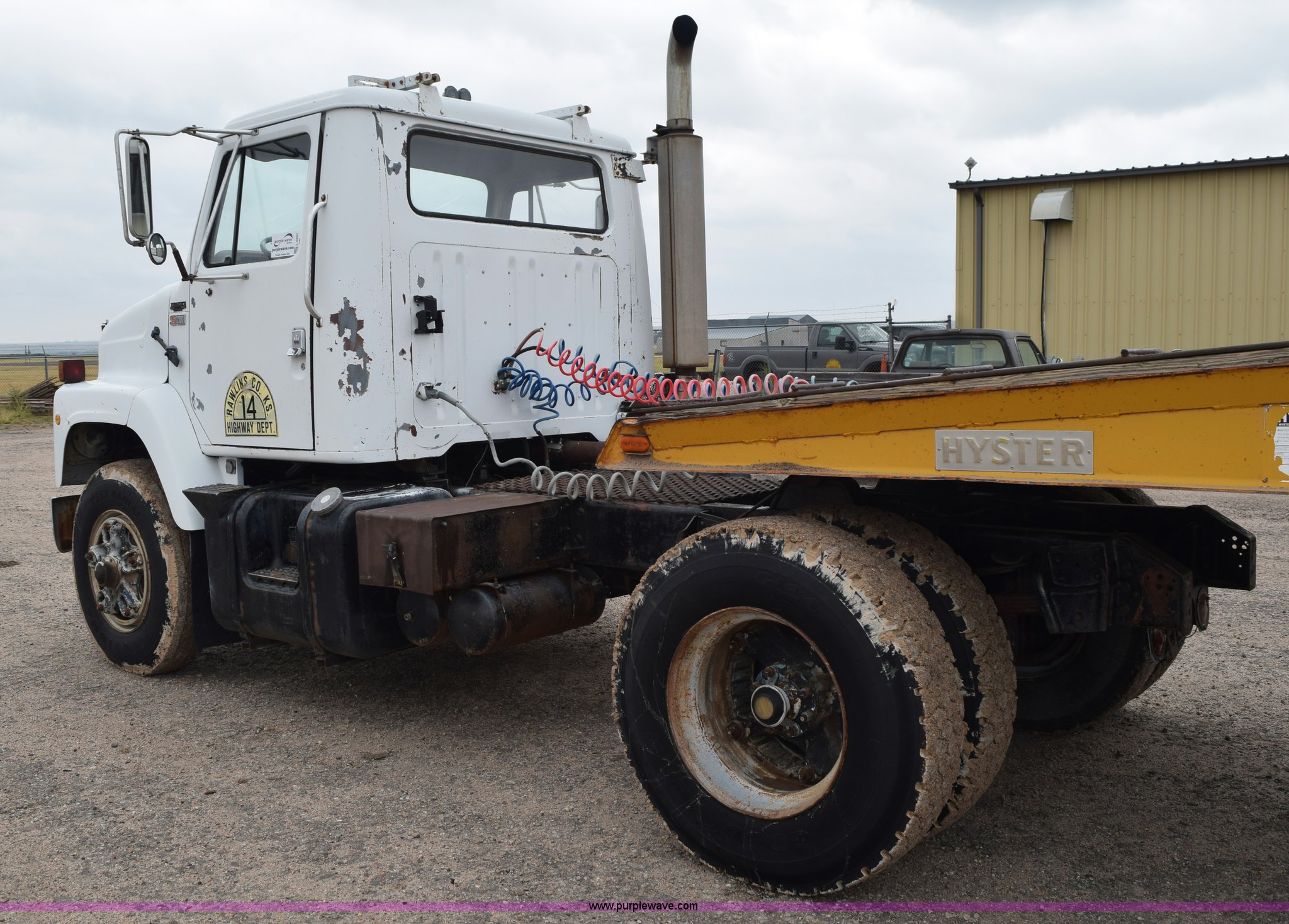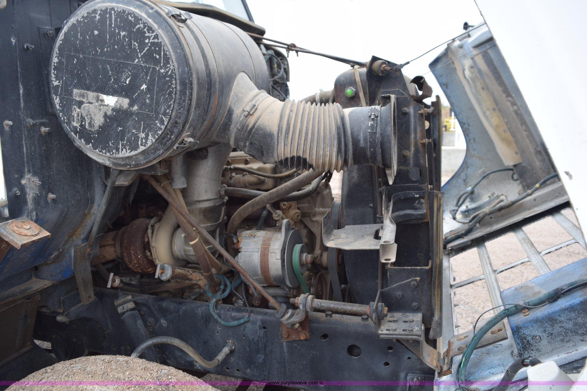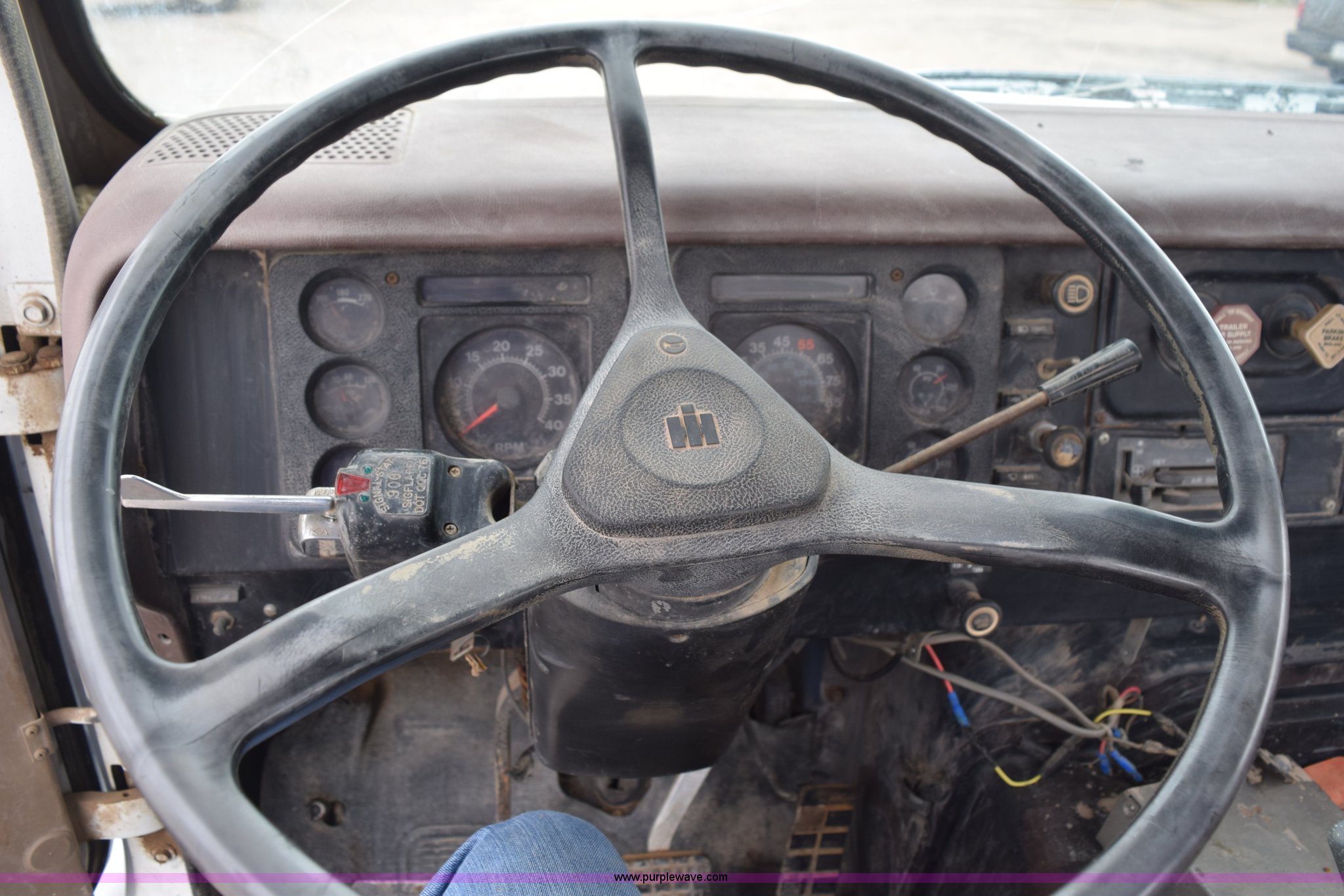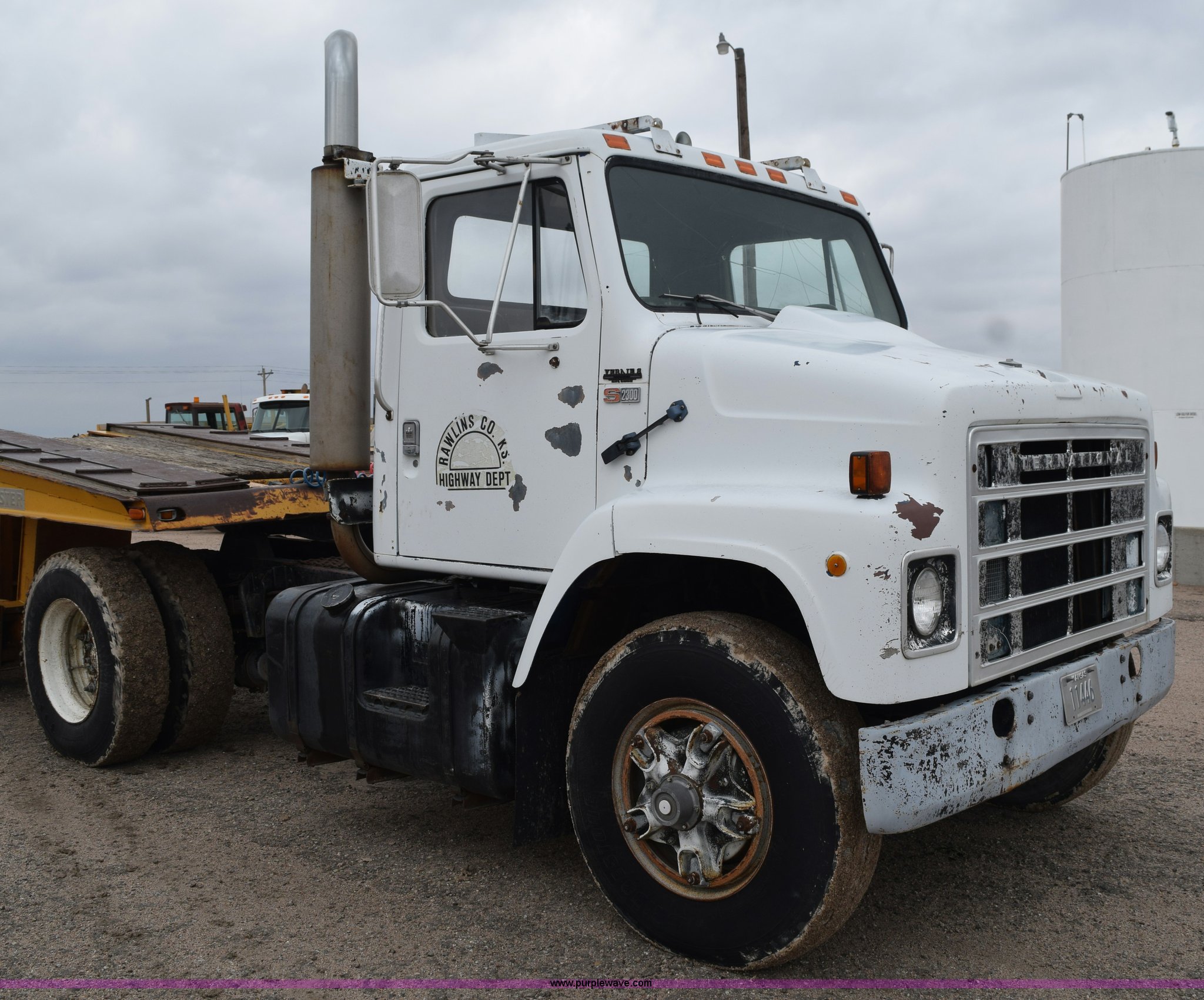 Purple Wave is selling a used Truck Tractor in Kansas. This item is a 1983 International 2375 semi truck with the following: 471,085 miles on odometer, Cummins six cylinder turbo diesel engine, Seven speed manual transmission, Single axle, Heat, Air suspension seat, Ether start, Single rear exhaust stack, Fixed fifth wheel, Dual fuel tanks, Spring suspension, Air brakes, 144" wheelbase, 11R22.5 tires, Cracked windshield