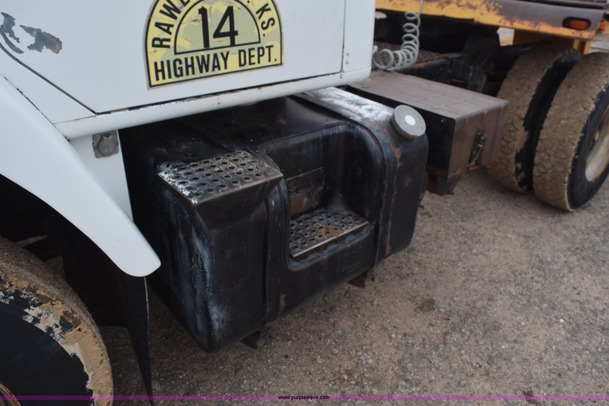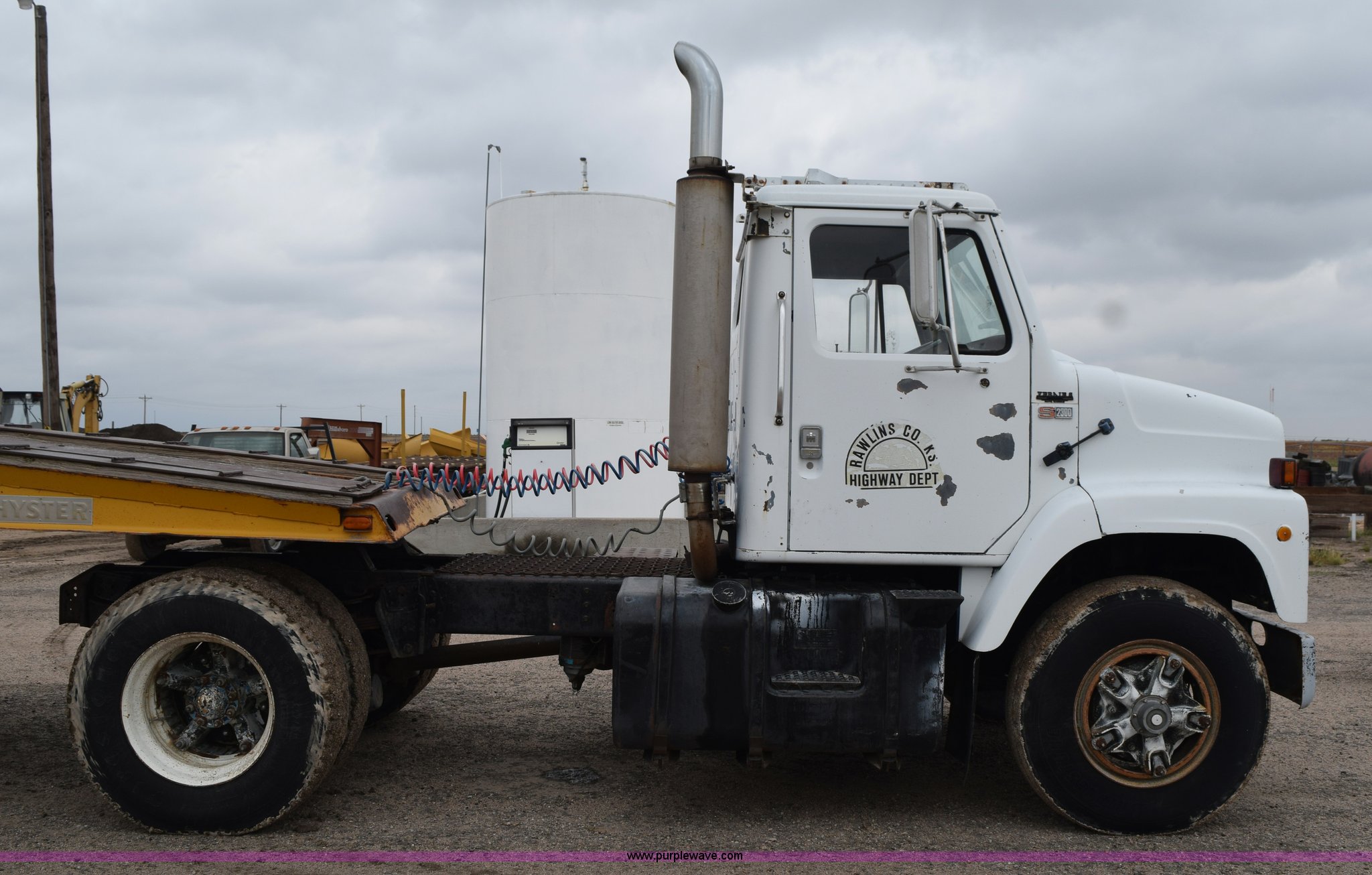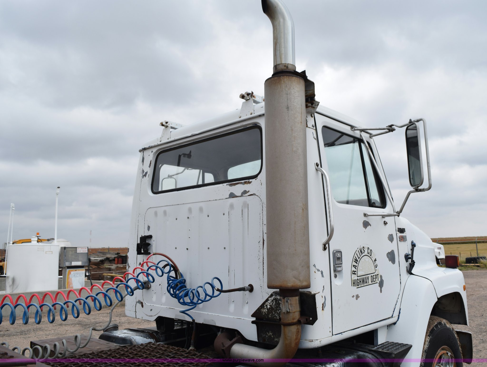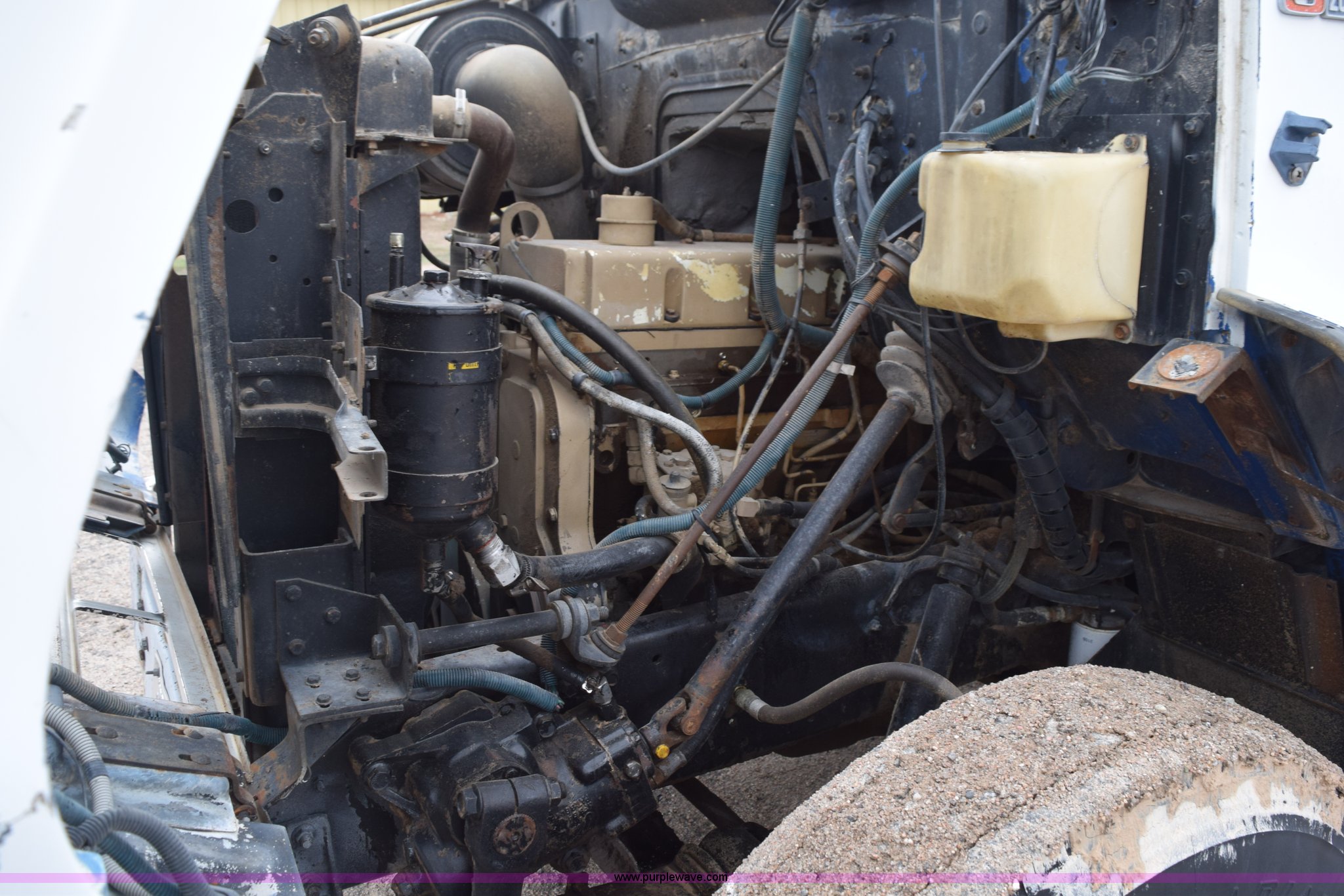 Purple Wave is selling a used Truck Tractor in Kansas. This item is a 1983 International 2375 semi truck with the following: 471,085 miles on odometer, Cummins six cylinder turbo diesel engine, Seven speed manual transmission, Single axle, Heat, Air suspension seat, Ether start, Single rear exhaust stack, Fixed fifth wheel, Dual fuel tanks, Spring suspension, Air brakes, 144" wheelbase, 11R22.5 tires, Cracked windshield