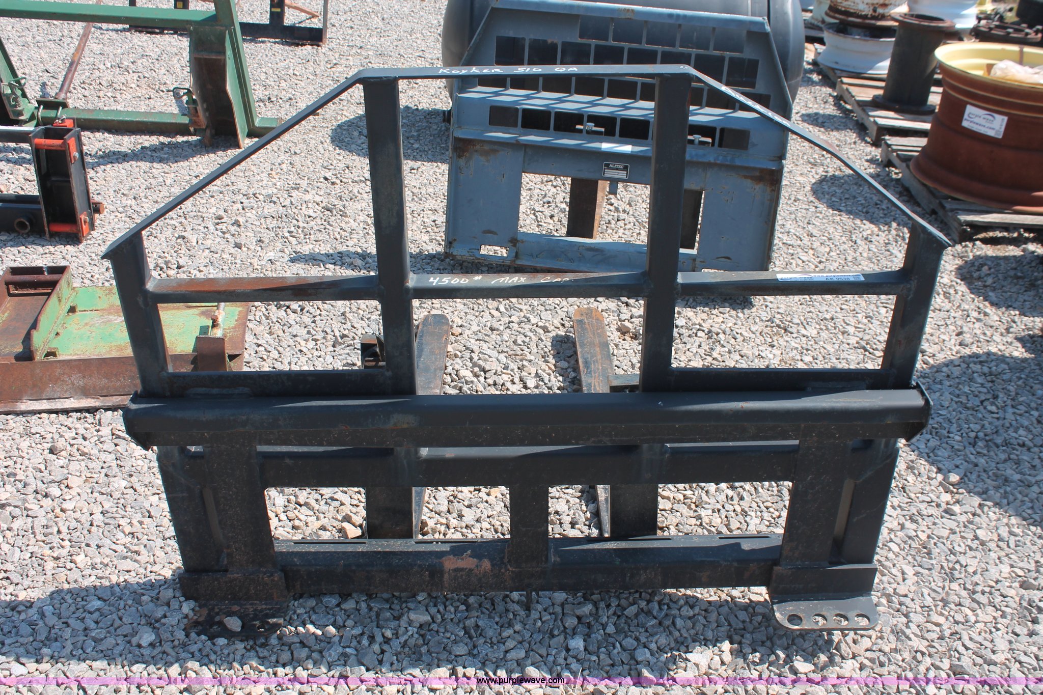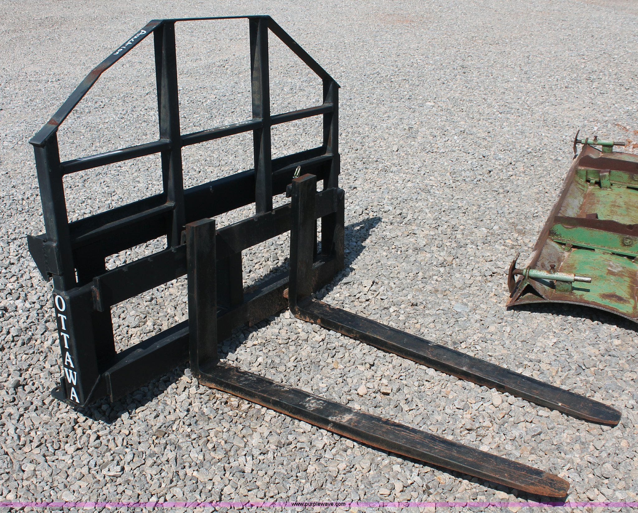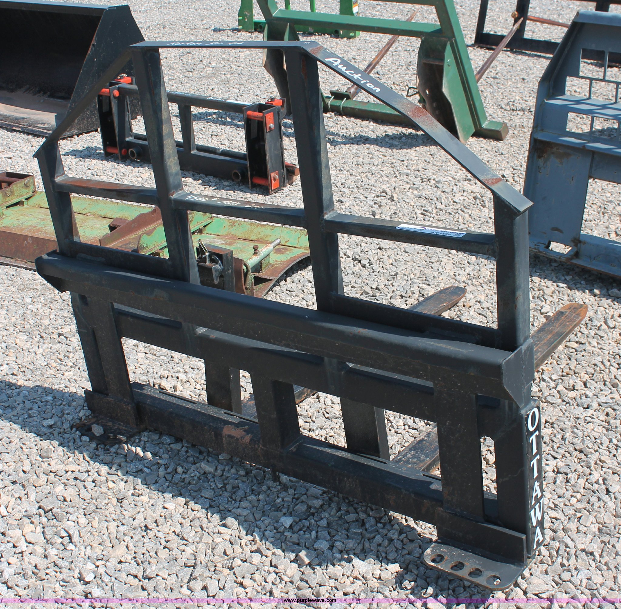 Purple Wave is selling a used Ag Tractor Loader or Attach. in Oklahoma. This item is a Ottawa/Koyker 510ZT fork attachment with the following: 56.5"W, 48"L forks, 1 1/4" pins, 4,500 lbs capacity