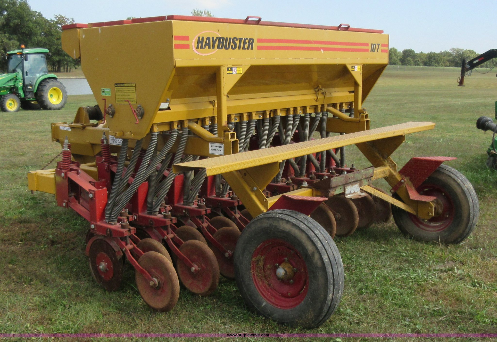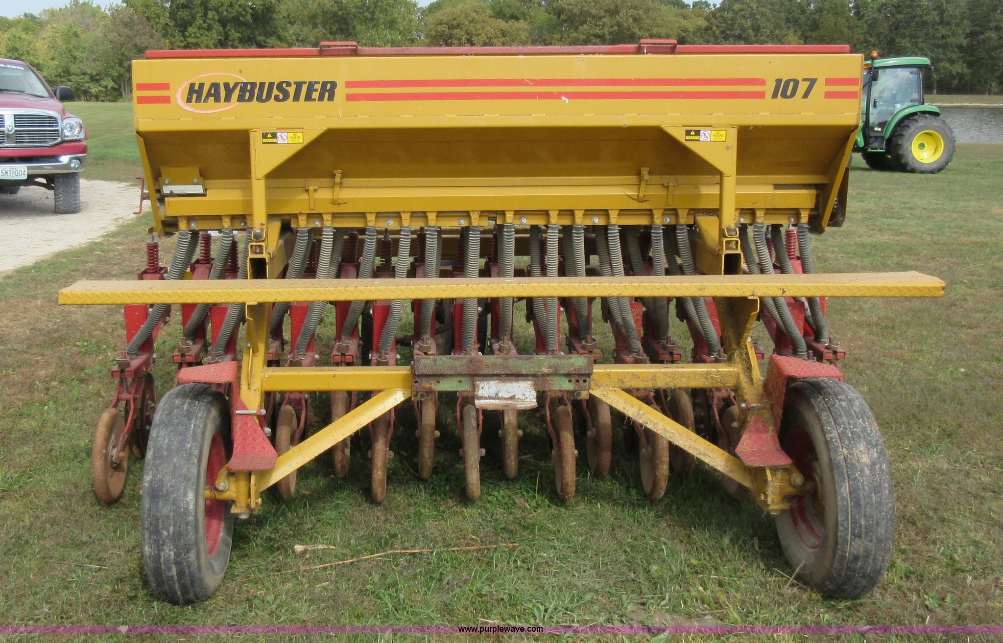 Purple Wave is selling a used Grain Drill or Seeder in Missouri. This item is a HayBuster grain drill with the following: 5,661 acres on meter, 10'W, 7" spacing, Pin hitch, 7.60-15SL tires, Serial 912595