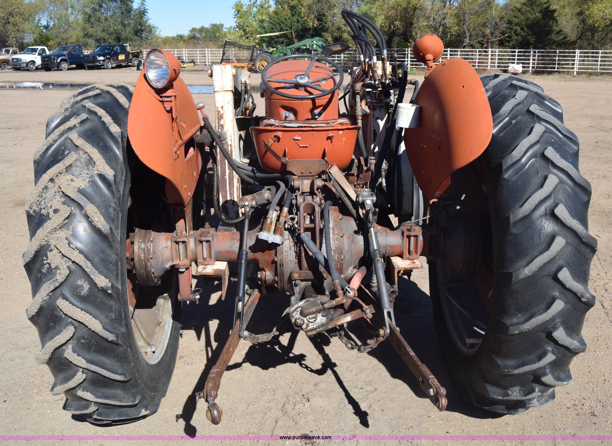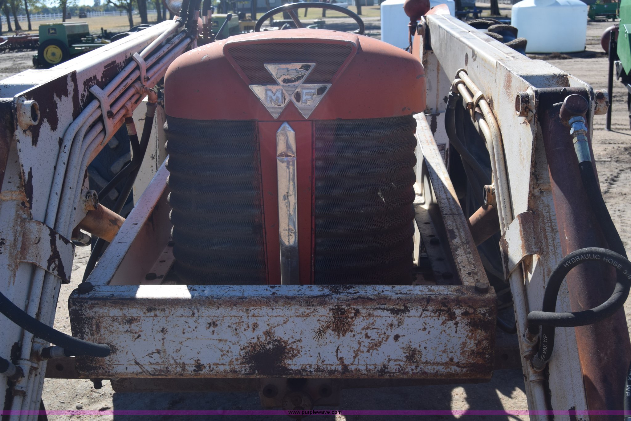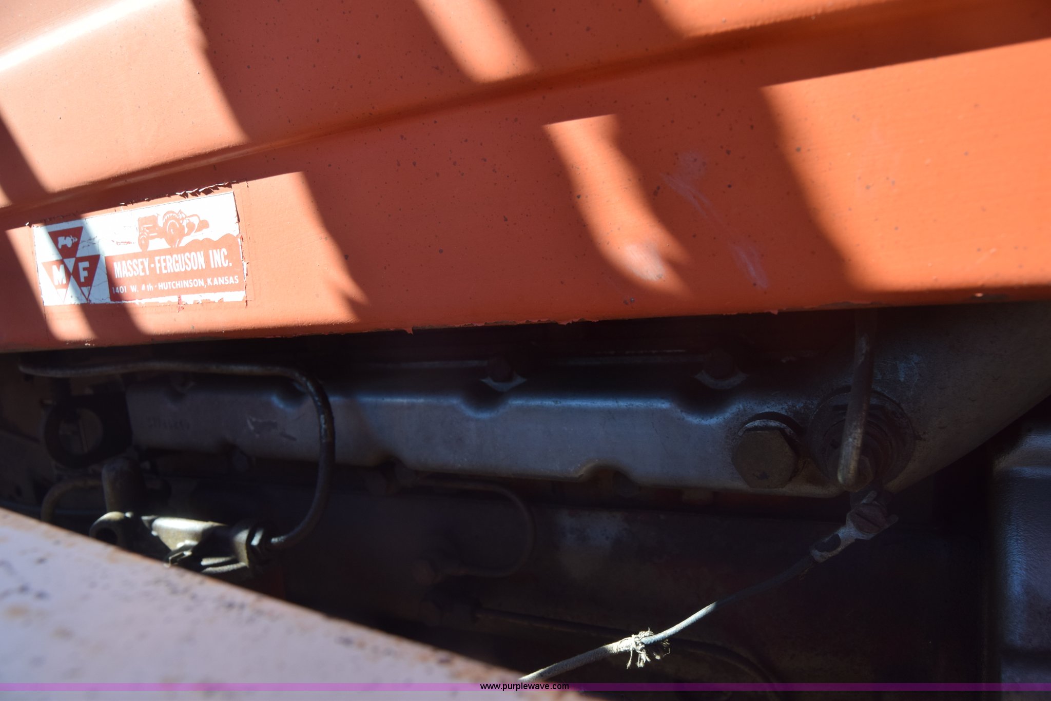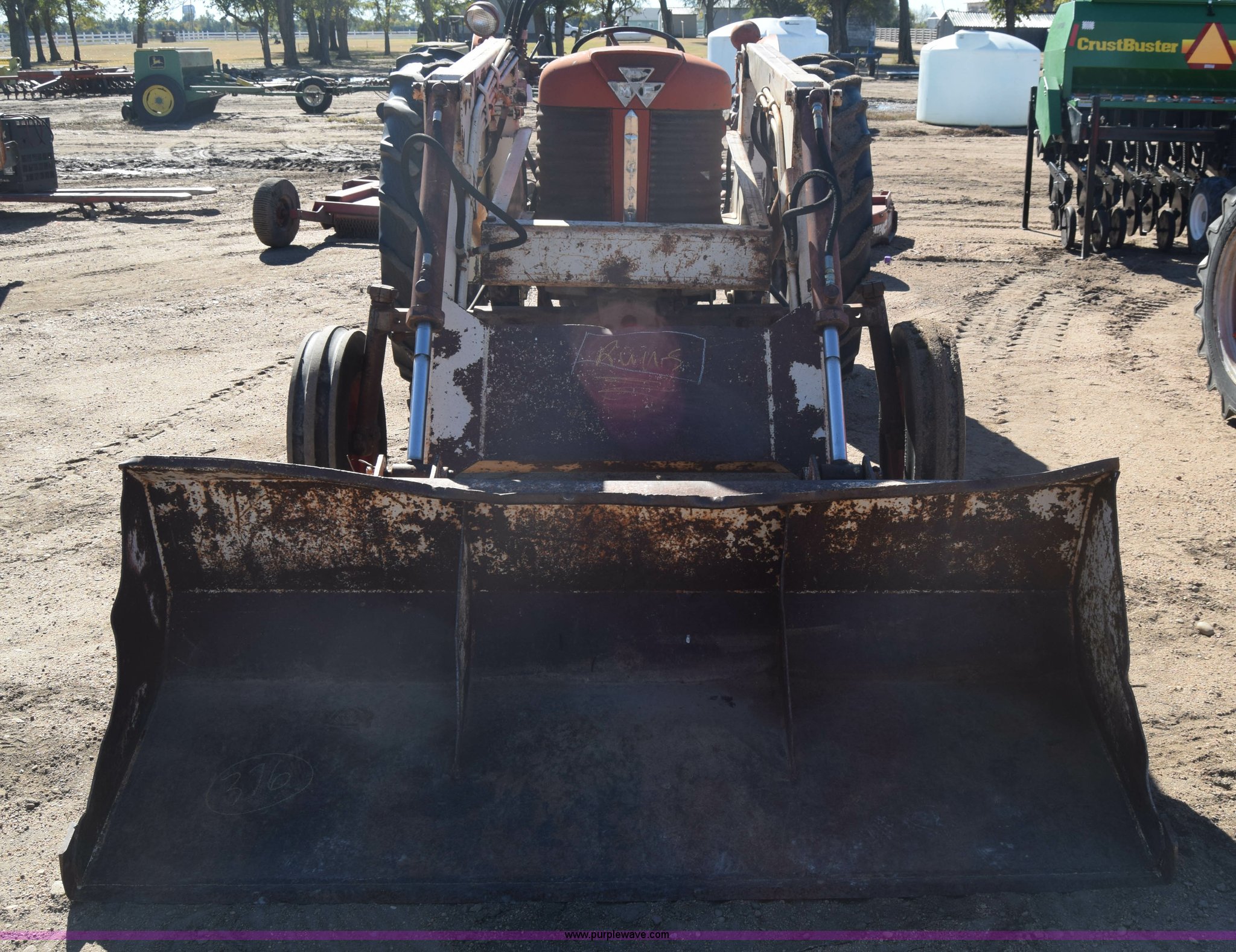 Purple Wave is selling a used Tractor in Kansas. This item is a Massey-Ferguson 65 tractor with the following: 2,677 hours on meter, 3.3L four cylinder diesel engine, 41 HP, Three speed manual transmission, United loader, 7'W bucket, Three point, (2) rear hydraulic remote sets, 84" wheelbase, 6.00-16 front tires, 13.6-38 rear tires