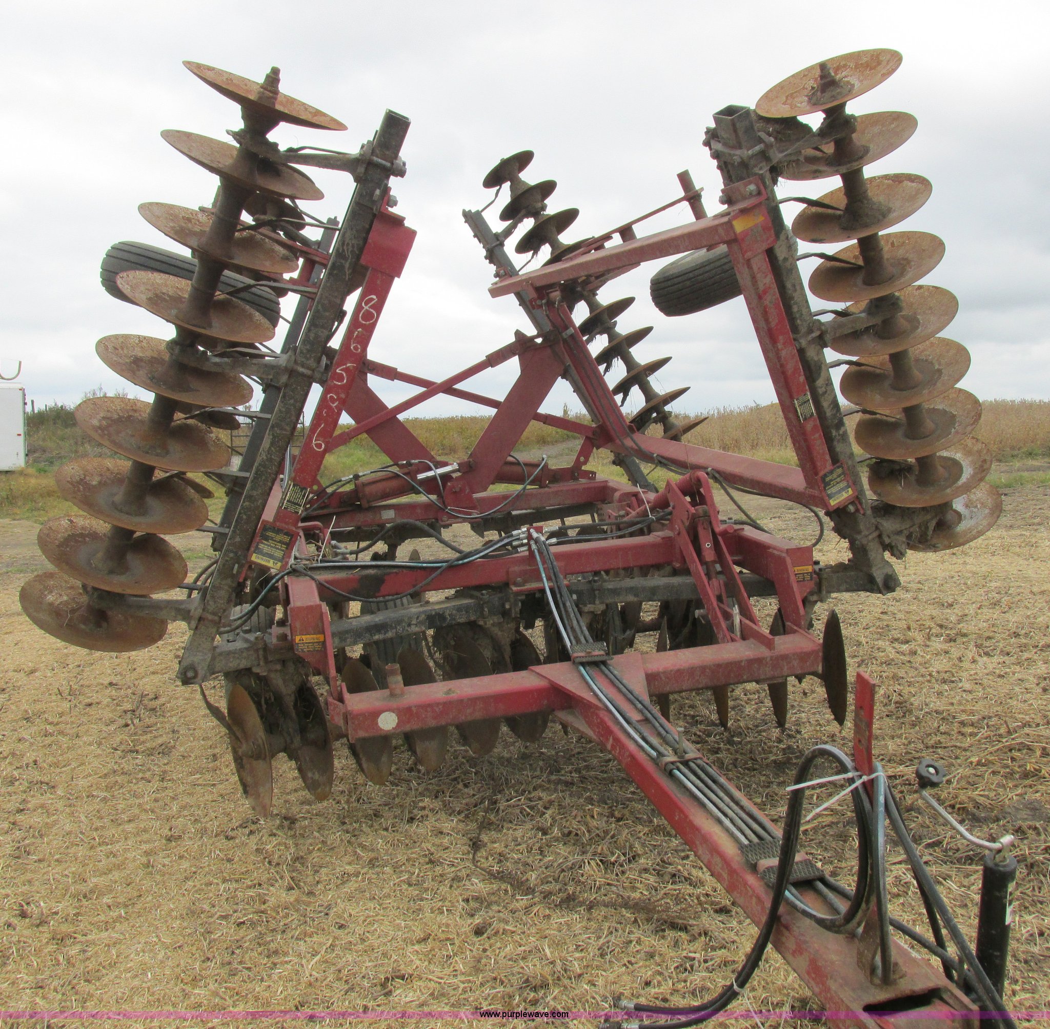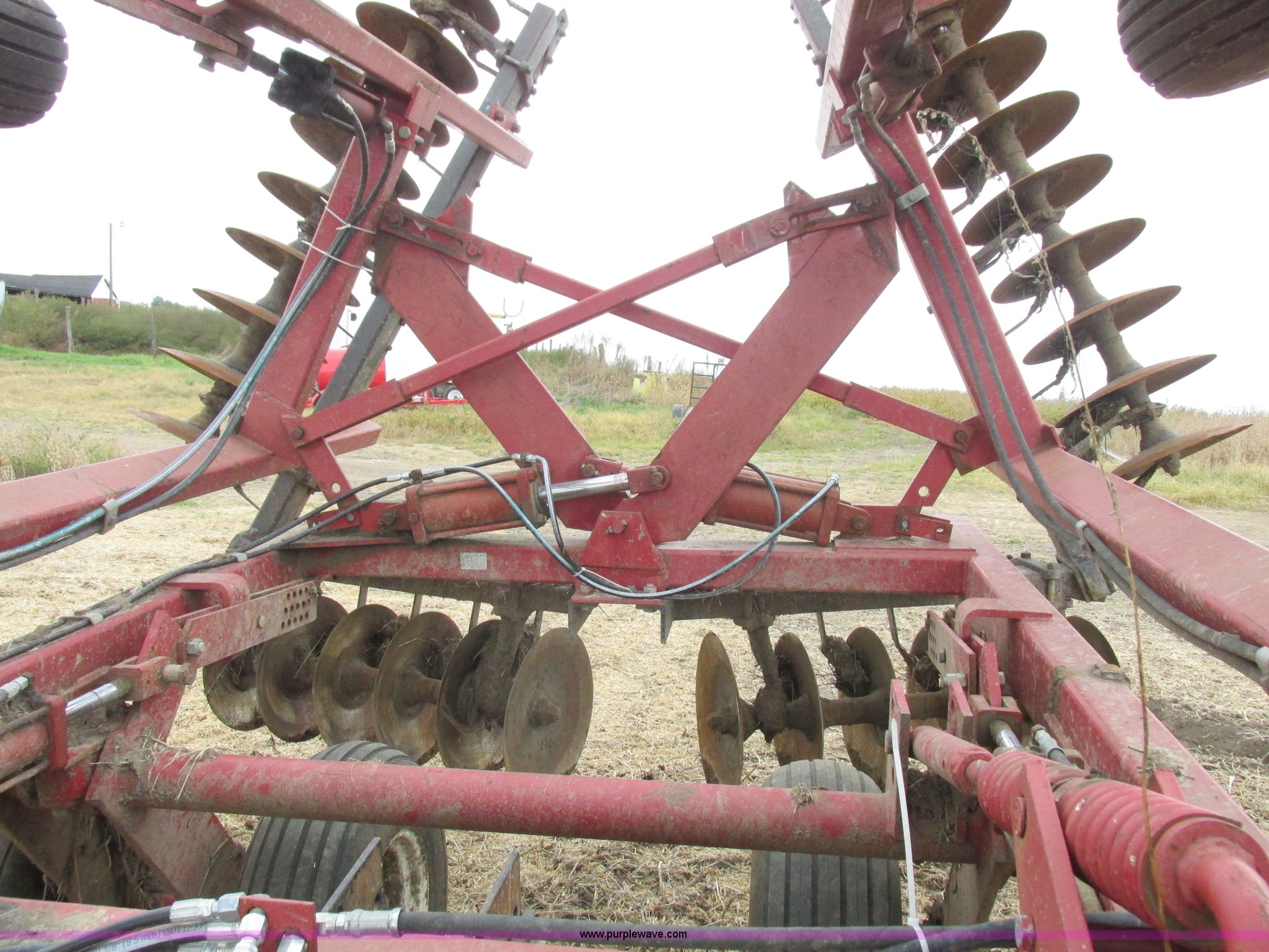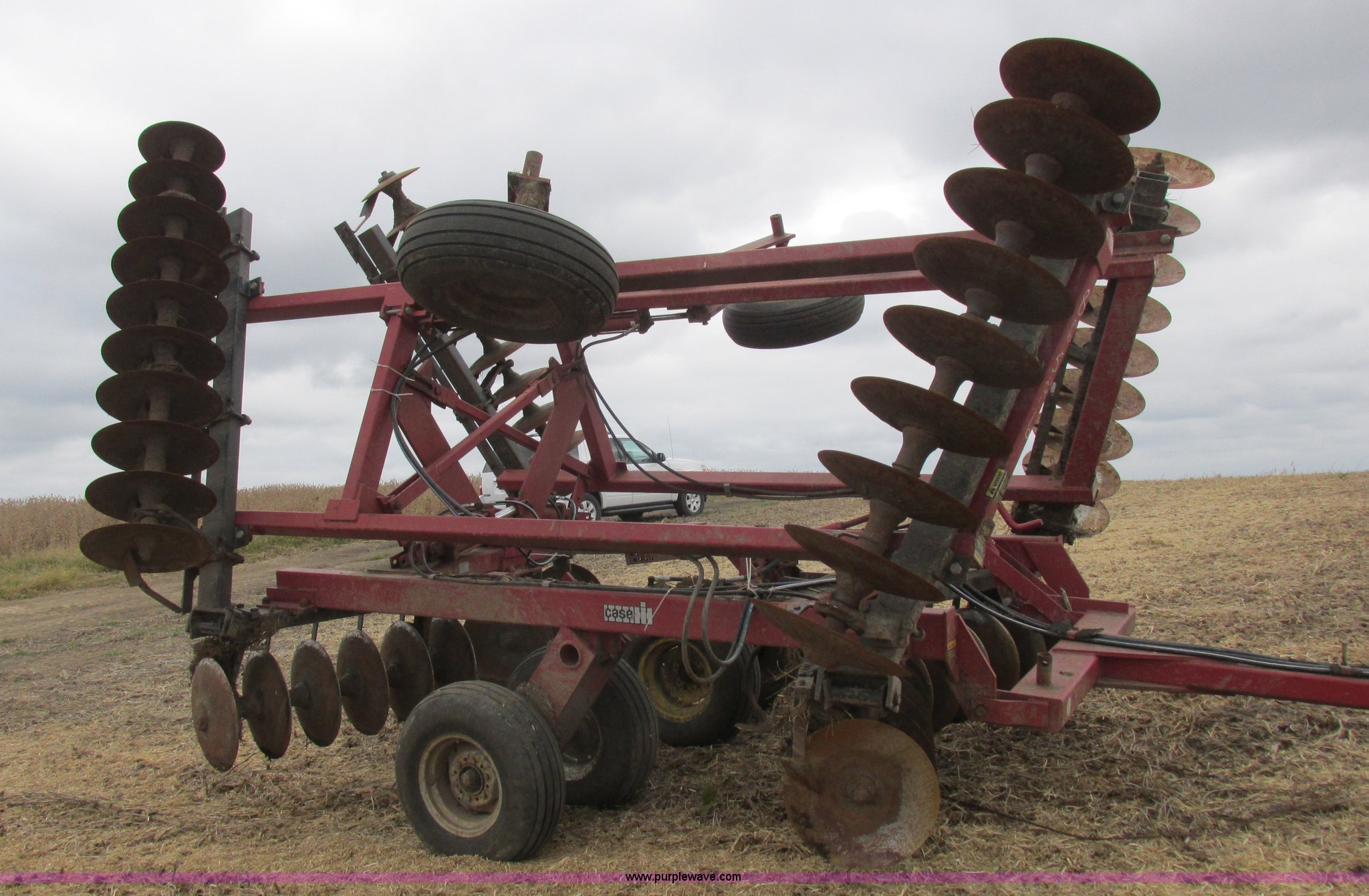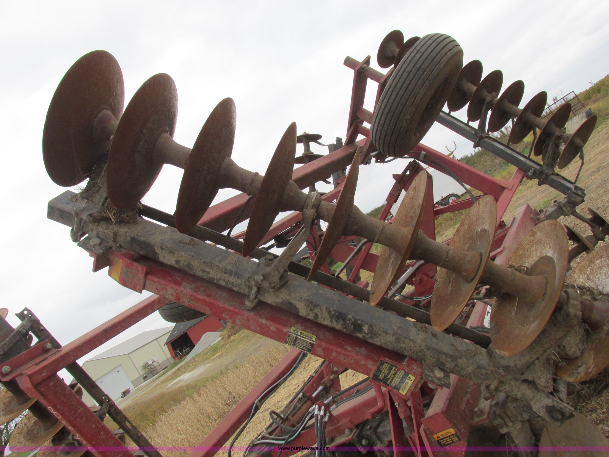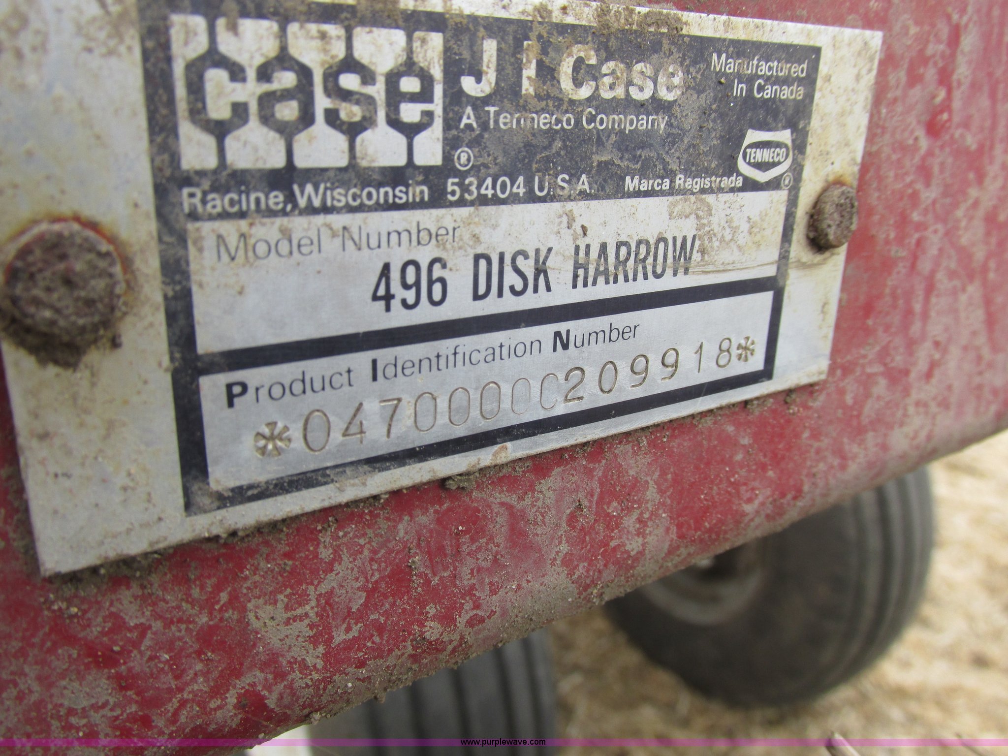 Purple Wave is selling a used Disk in Missouri. This item is a Case IH 496 disk with the following: 24'W, Hydraulic fold, Hydraulic couplers, Pin hitch, 9.5L-14 tires, Serial 0400000209918