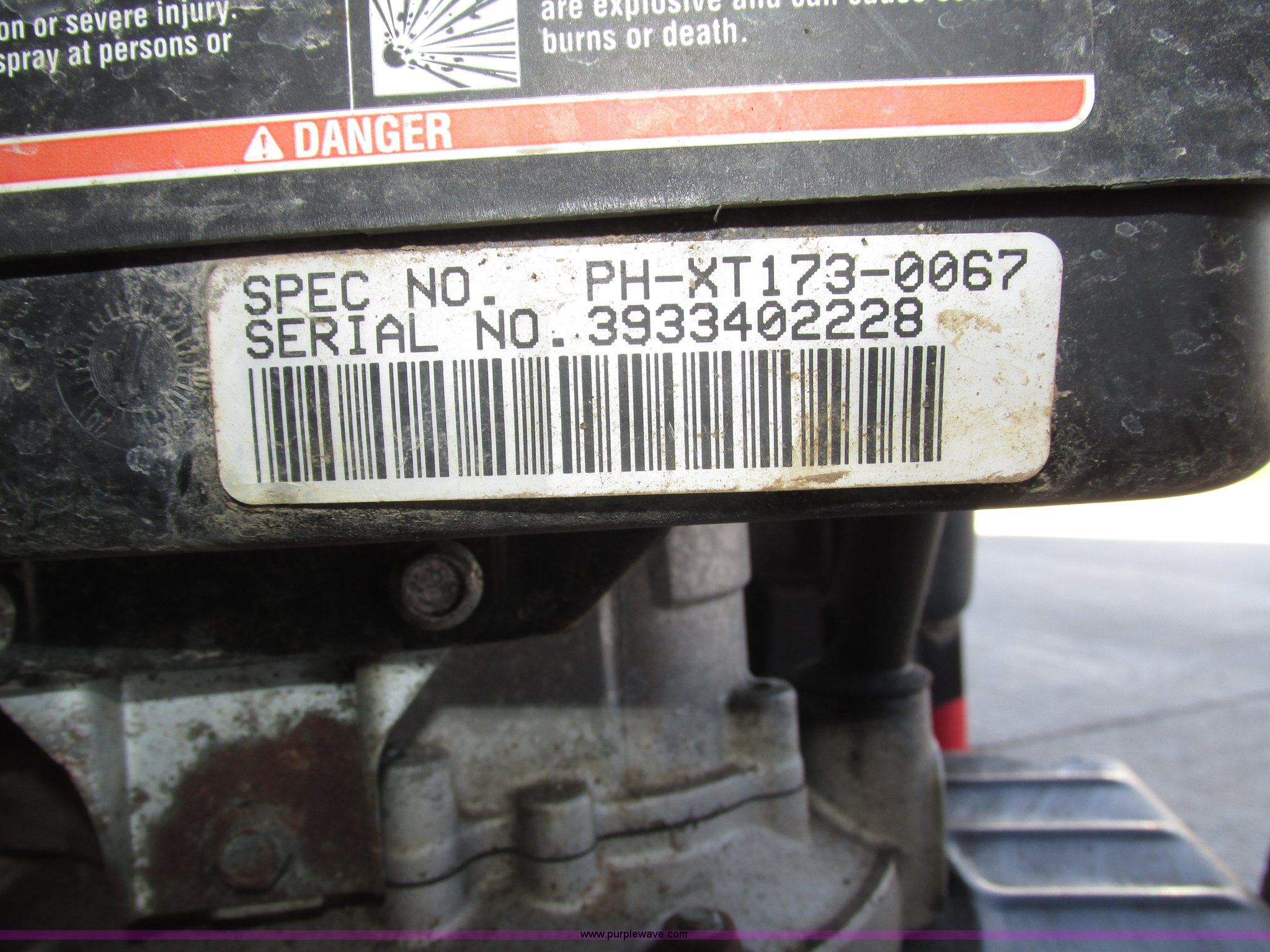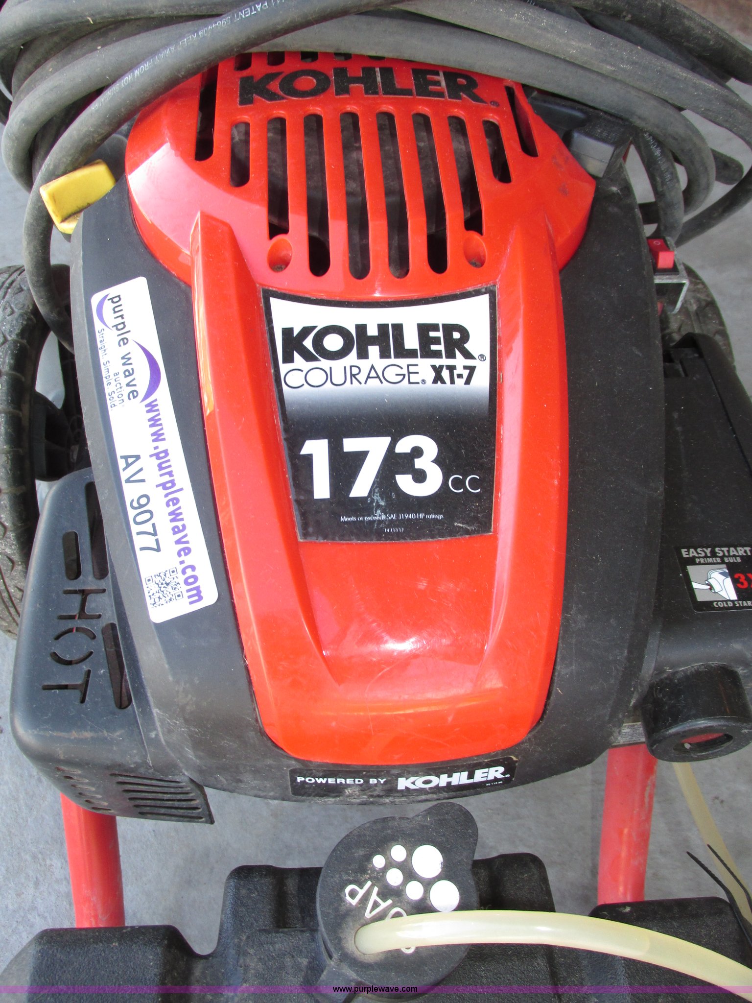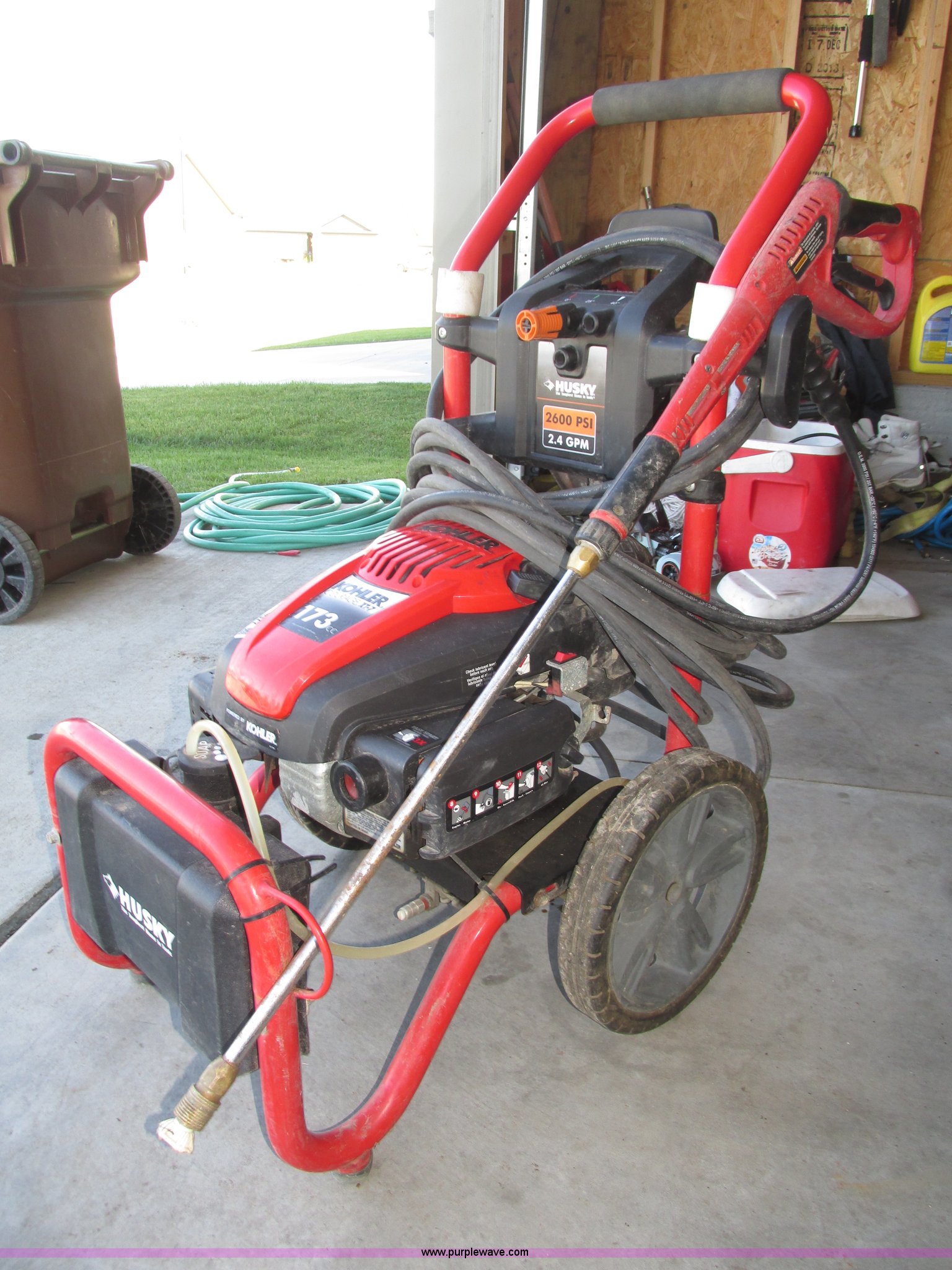 Purple Wave is selling a used Pressure Washer in Nebraska. This item is a 2010 Husky pressure washer with the following: Kohler Courage XT-7 173cc gas engine, Priming bulb, 2,600 psi, (2) tips, 2.4 gpm, Hose hanger, Wand, Lockable trigger, Hose, Hose hookup, Detergent tank, 12" diameter wheels, Serial 3933402228