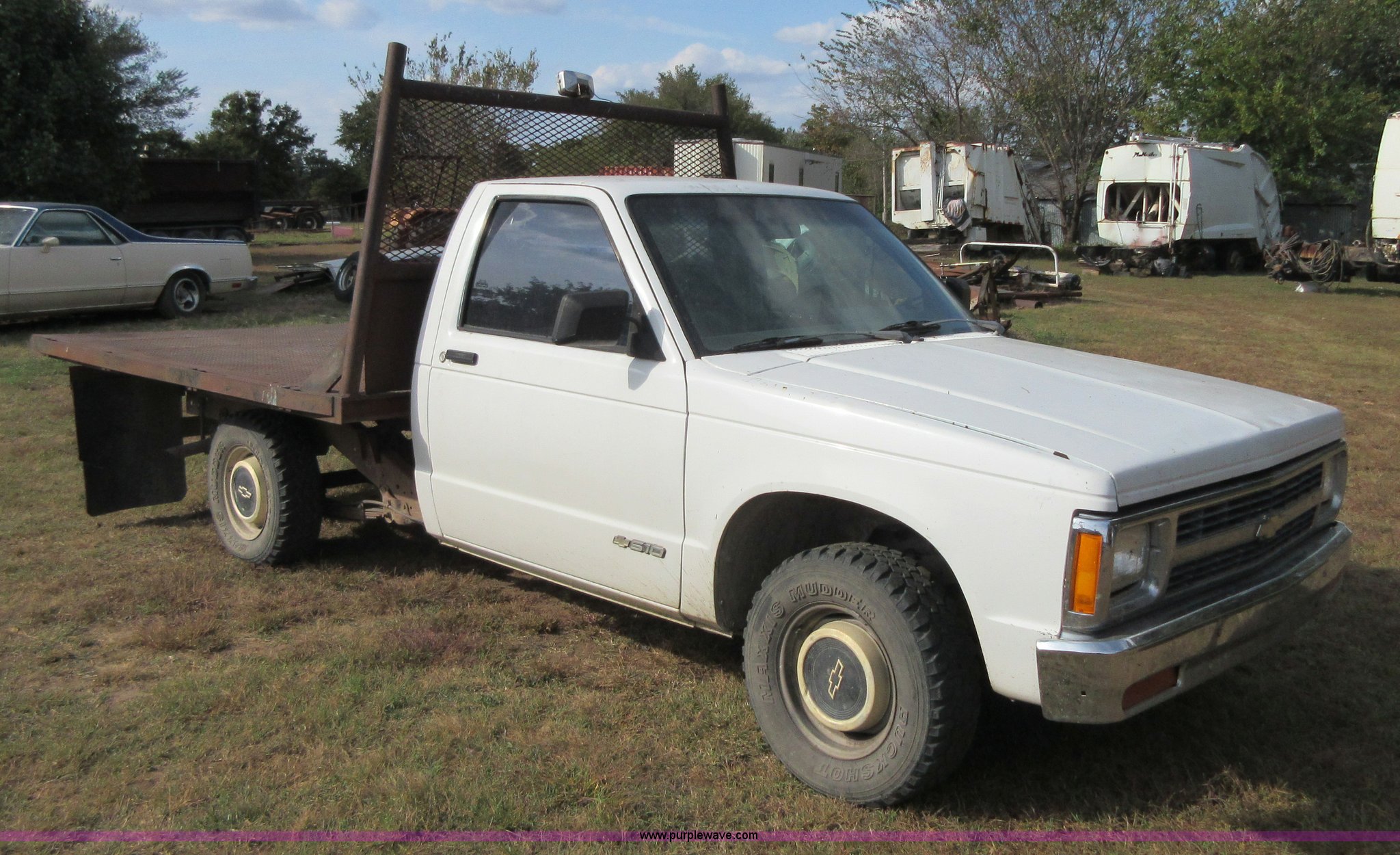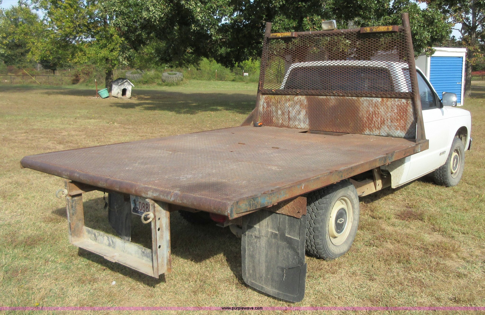 Purple Wave is selling a used Compact Pickup or Van in Oklahoma. This item is a 1993 Chevrolet S10 flatbed pickup truck with the following: 99,990 miles on odometer, 4.3L V6 OHV 12V gas engine, Automatic transmission, AC and heat, Manual windows and locks, Vinyl interior, 9'L x 94"W flatbed, Gooseneck ball, 27x8.50R14 tires