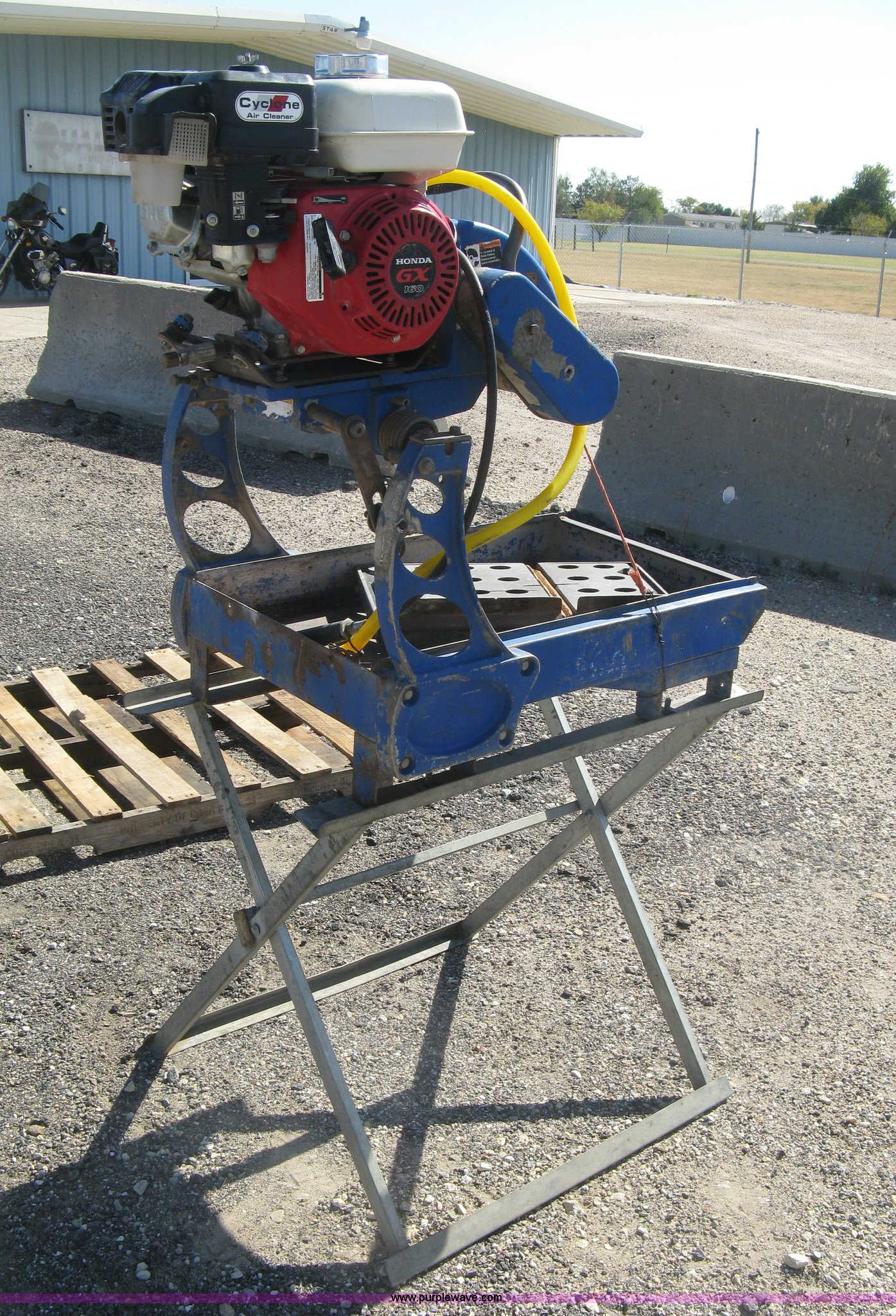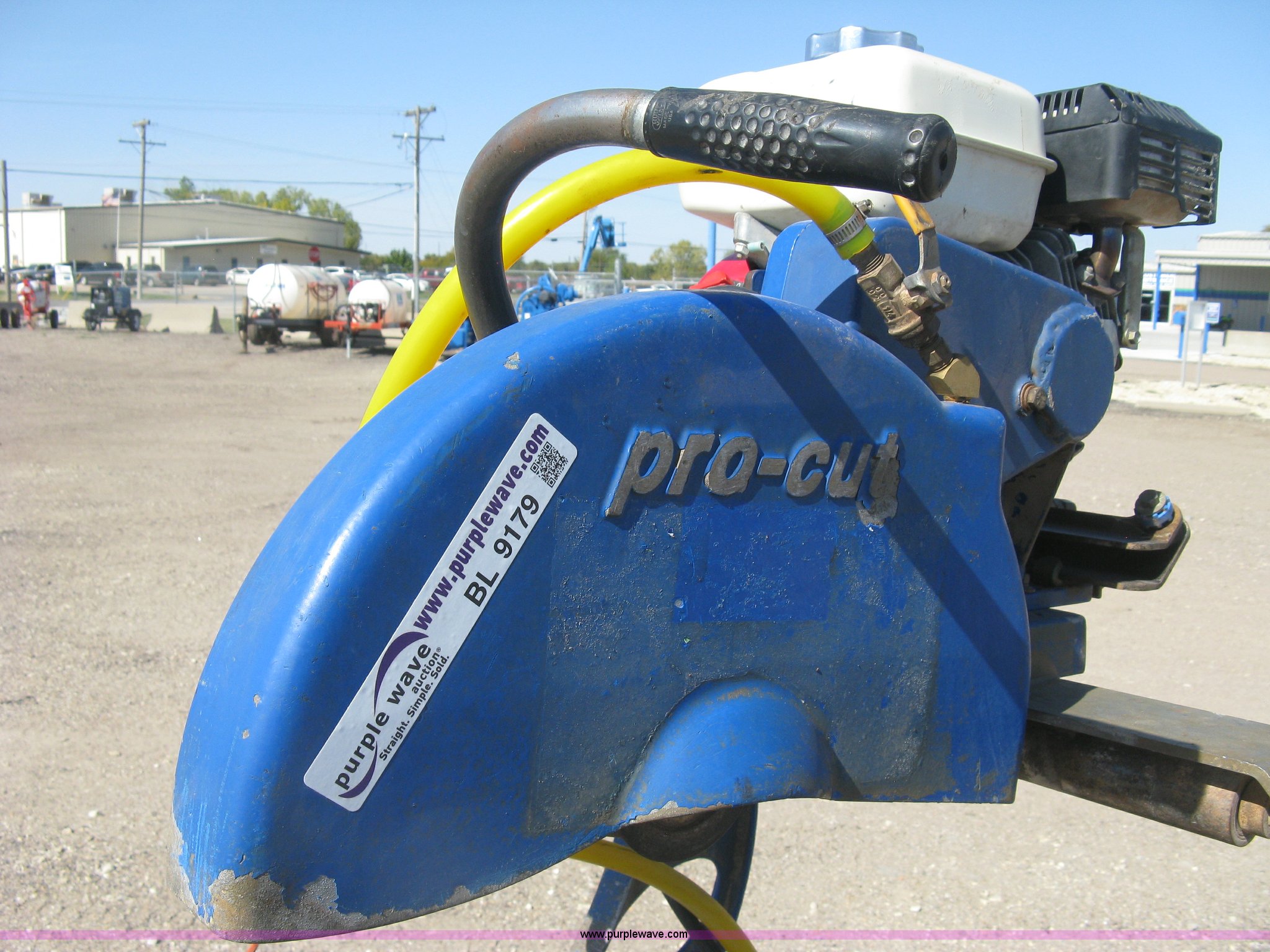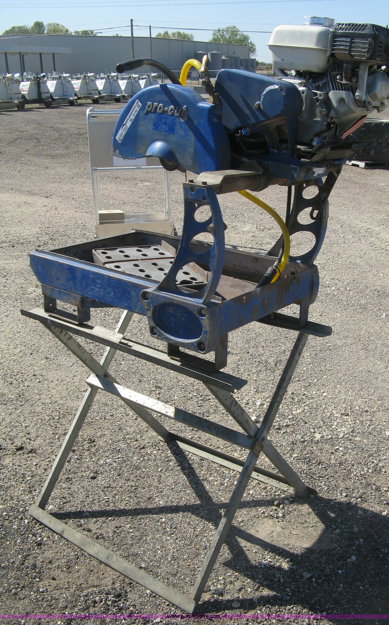Purple Wave is selling a used Concrete Equip. or Acces. in Kansas. This item is a Pro-cut YMC546 brick saw with the following: Honda GX160 gas engine, Wet tray, Brick stand, Wet system, Stand, No blade, Play-in blade mounting shaft
