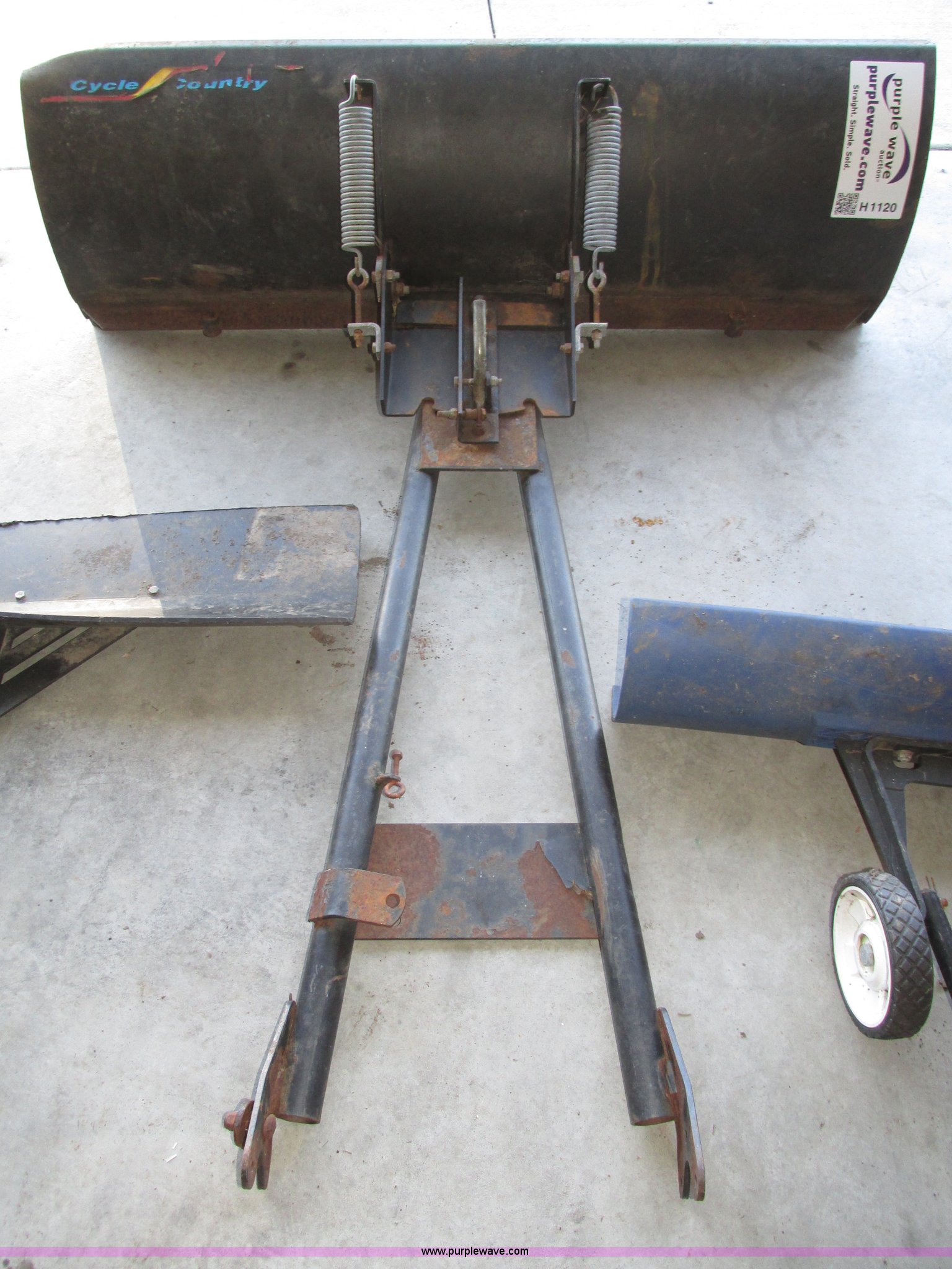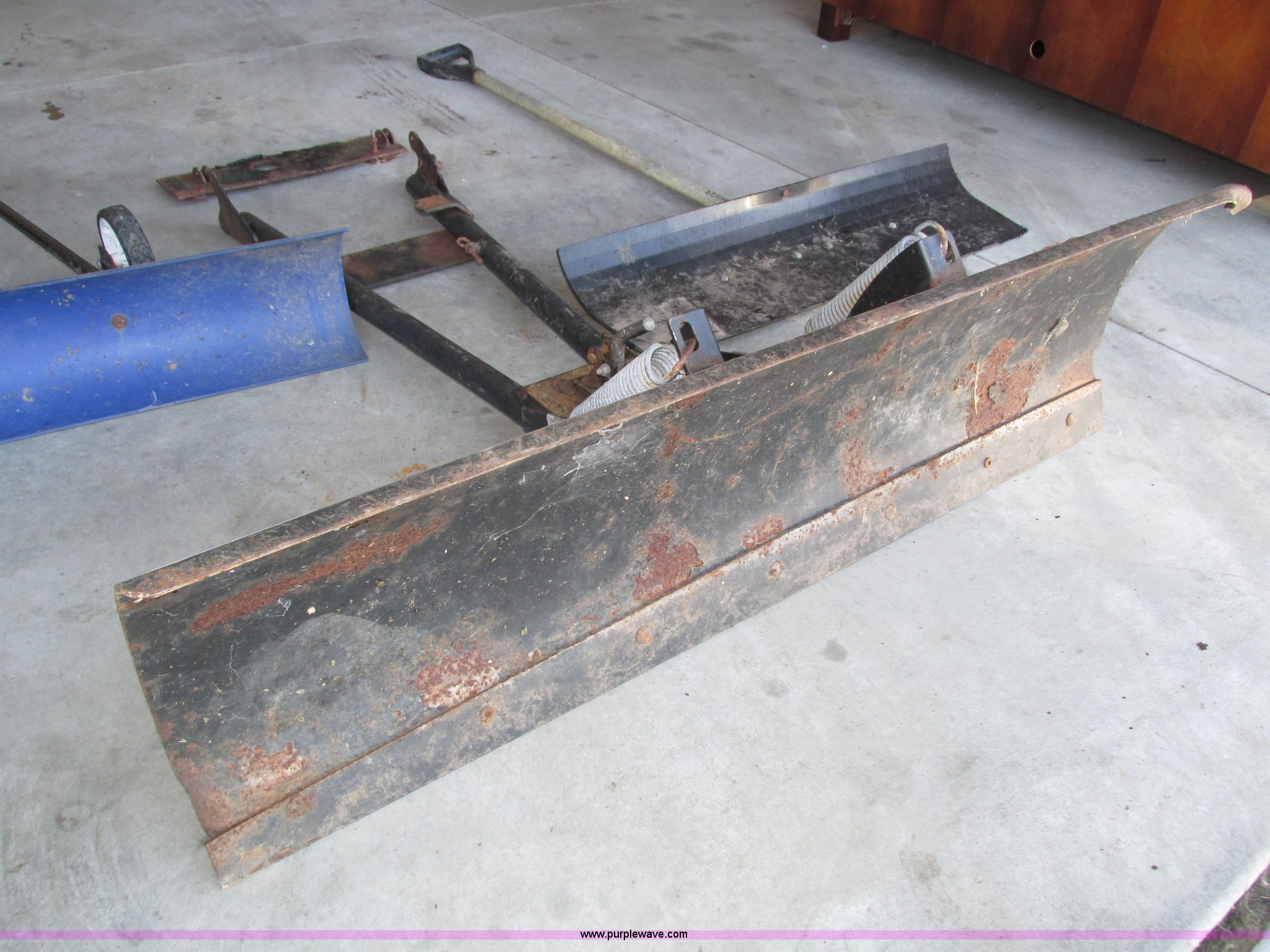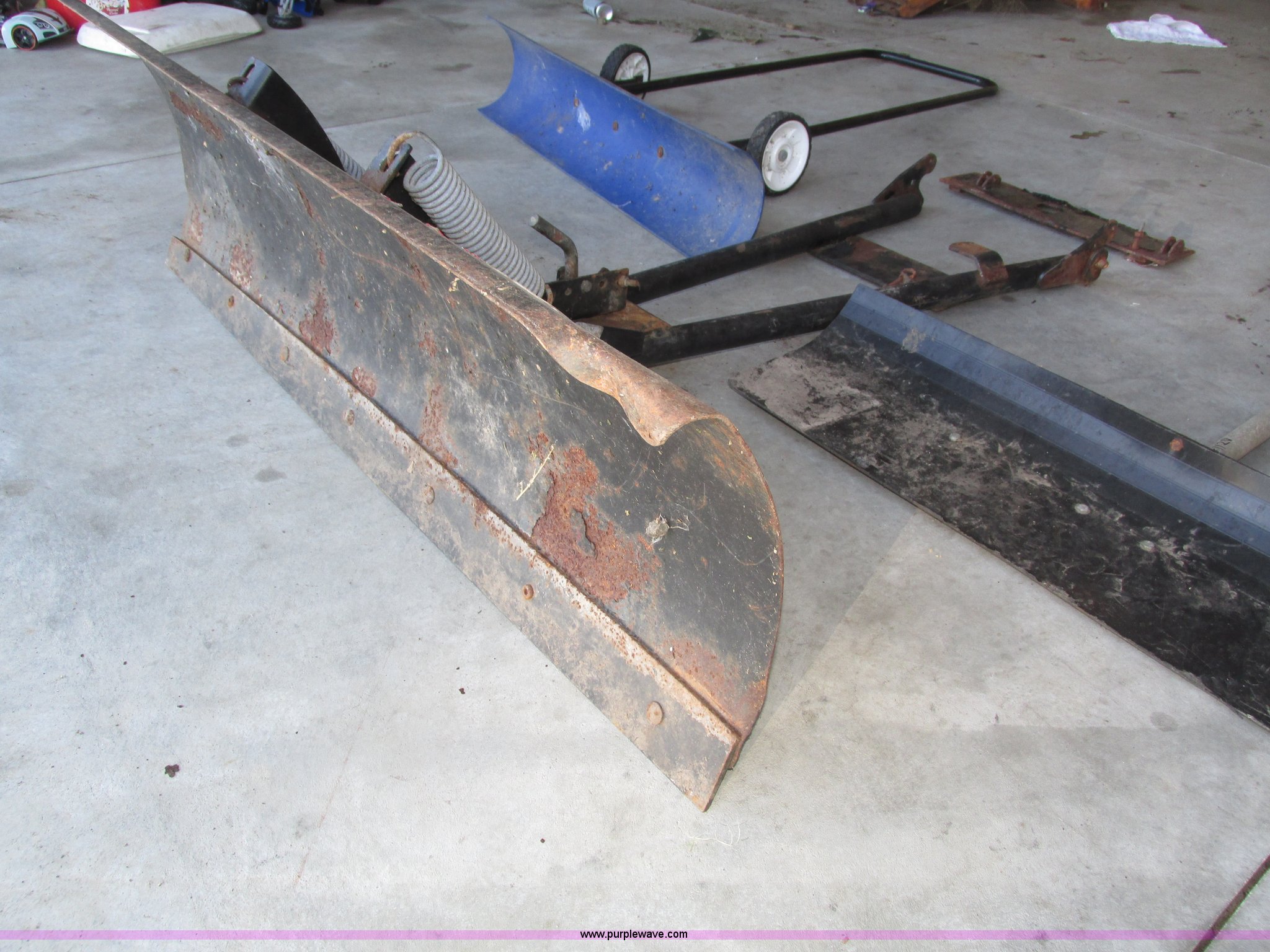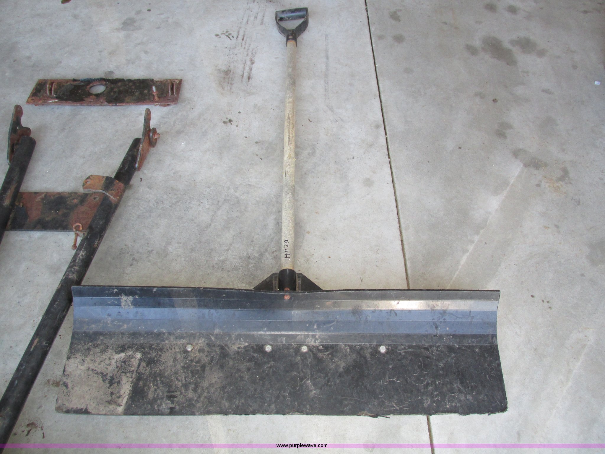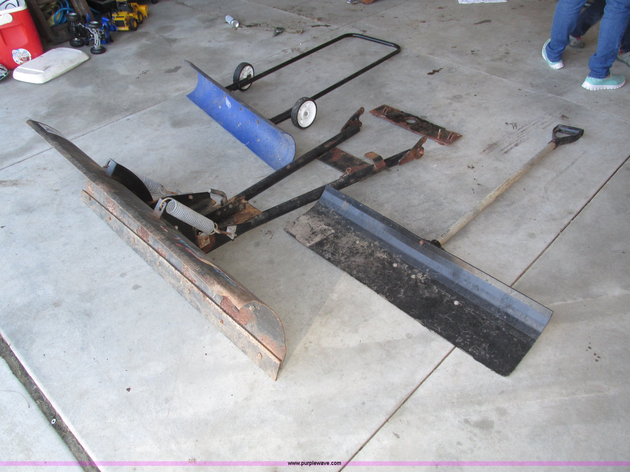 Purple Wave is selling a used Lawn and Garden in Nebraska. This item is a Assorted snow removal tools and accessories with the following: Cycle Country 48"W x 15"H snow blade, Additional mounting bracket, Previously used with ATV, 36"W plastic snow shovel, Wood D-handle, 36"W snow pusher, Two wheels