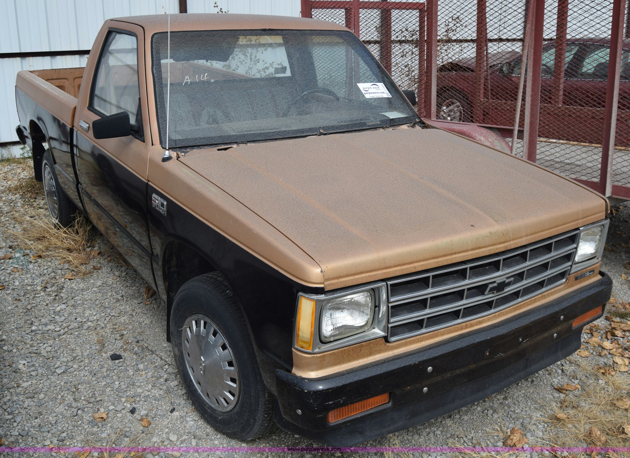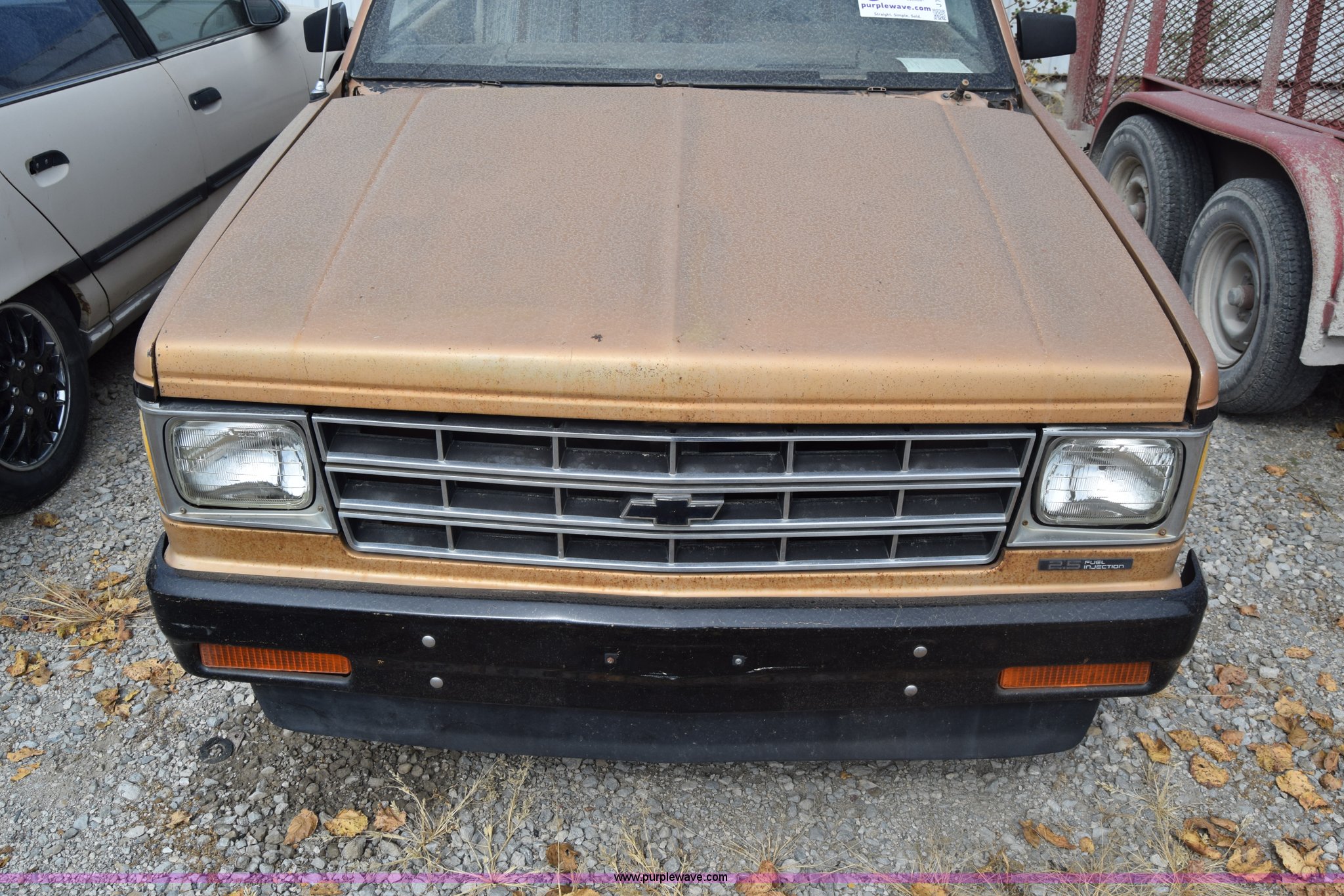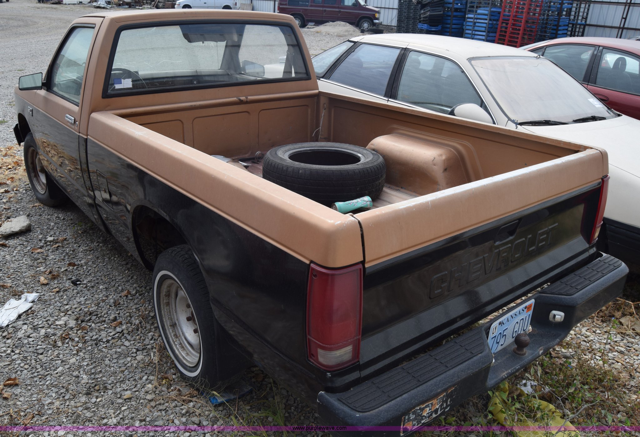 Purple Wave is selling a used Compact Pickup or Van in Kansas. This item is a 1987 Chevrolet S10 pickup truck with the following: 130,712 miles on odometer, 2.5L L4 OHV 8V gas engine, Four speed manual transmission, AC and heat, AM/FM/CD, Manual windows and locks, Cloth interior, 195/75R14 tires, Interior/exterior cosmetic damage, Cracked windshield, Dents, Scratches, No keys