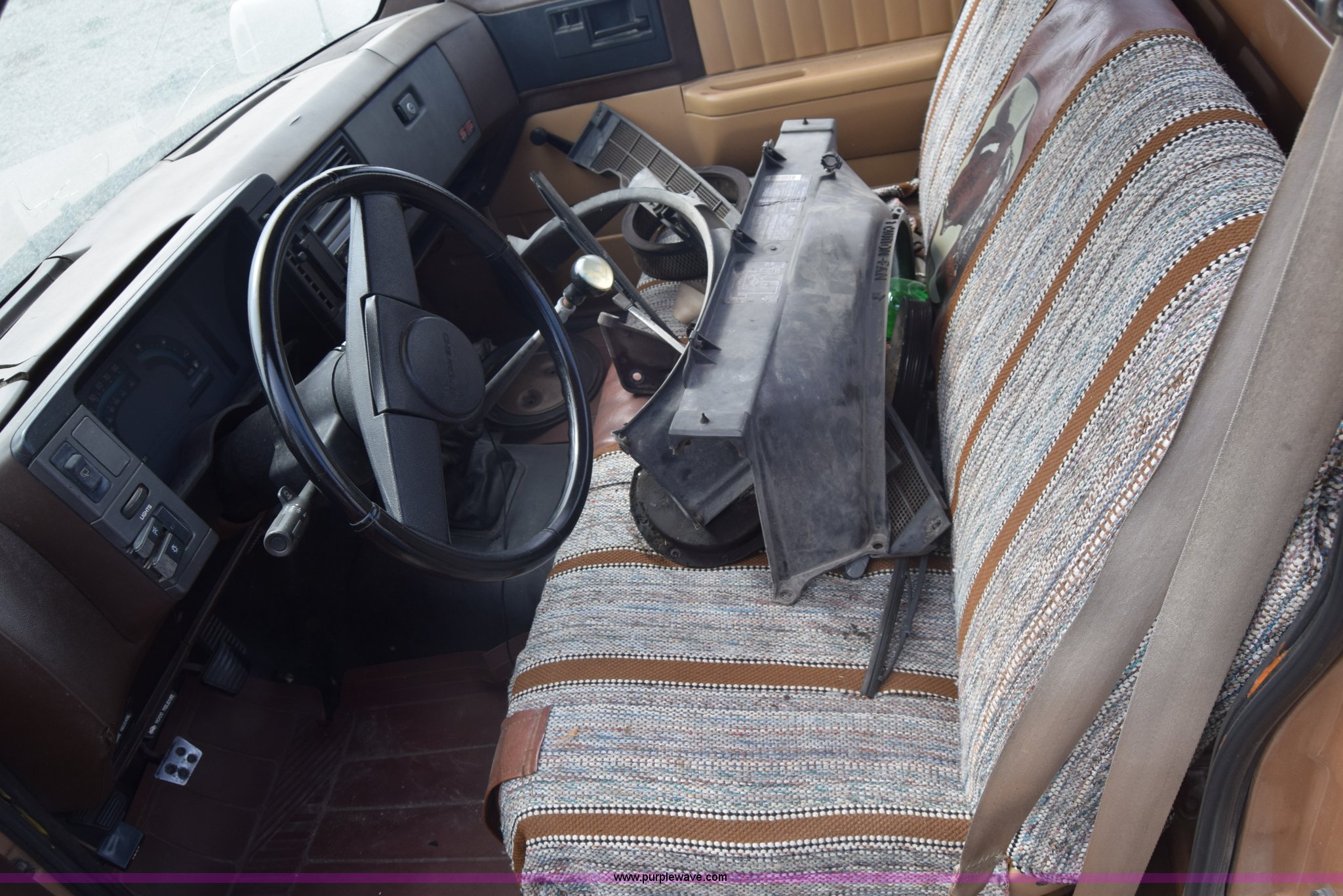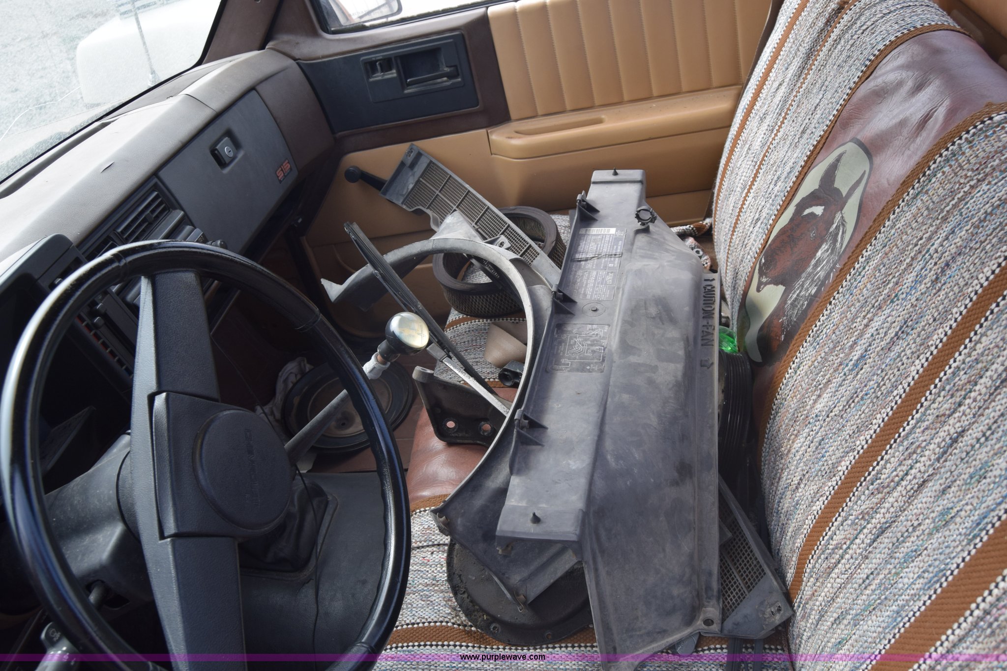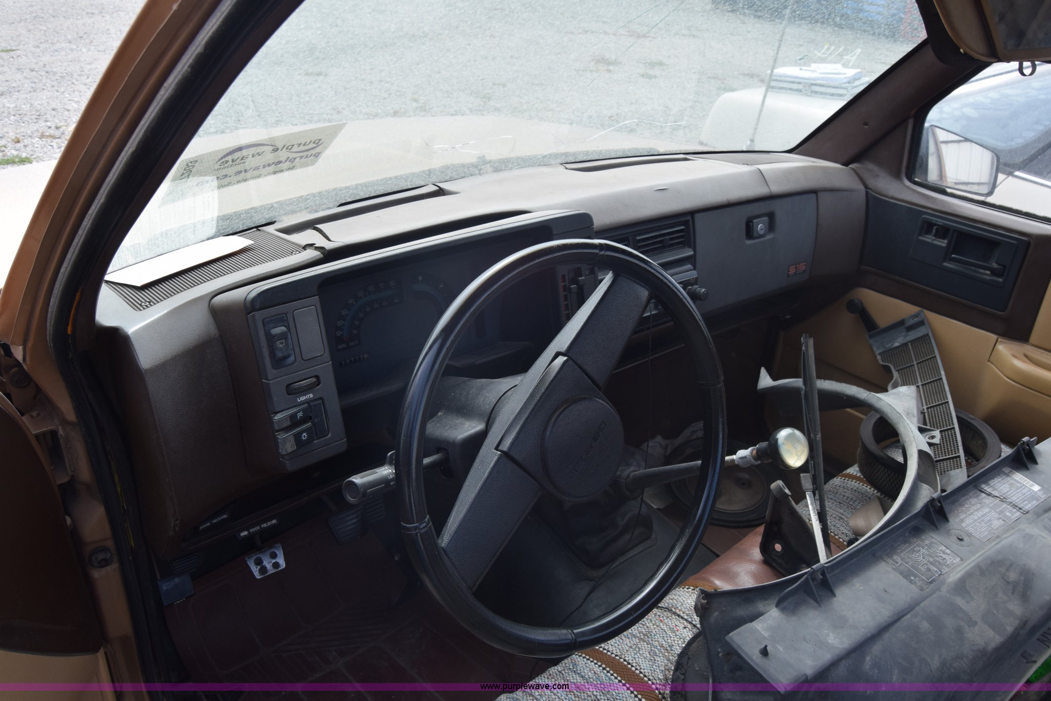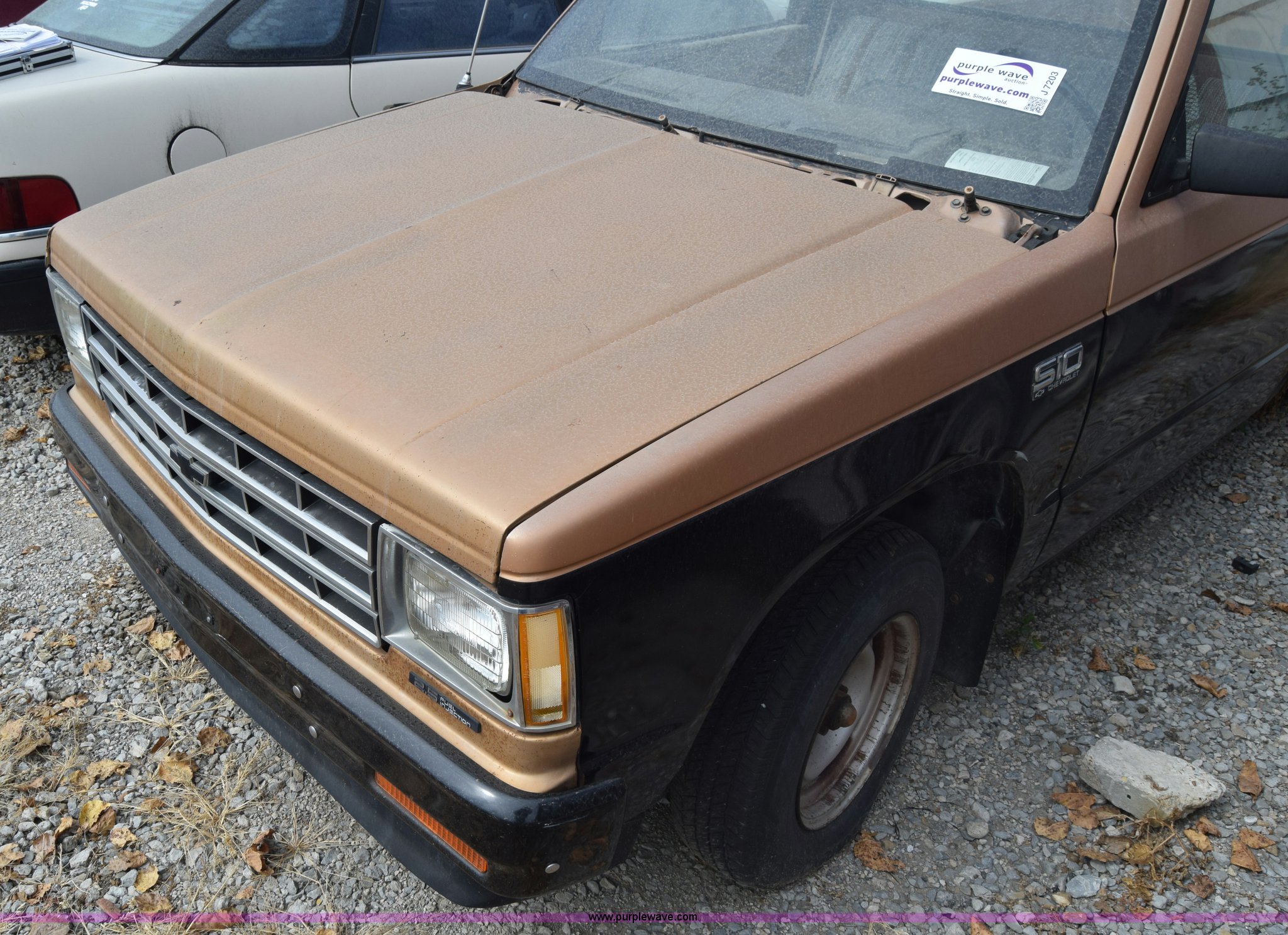 Purple Wave is selling a used Compact Pickup or Van in Kansas. This item is a 1987 Chevrolet S10 pickup truck with the following: 130,712 miles on odometer, 2.5L L4 OHV 8V gas engine, Four speed manual transmission, AC and heat, AM/FM/CD, Manual windows and locks, Cloth interior, 195/75R14 tires, Interior/exterior cosmetic damage, Cracked windshield, Dents, Scratches, No keys