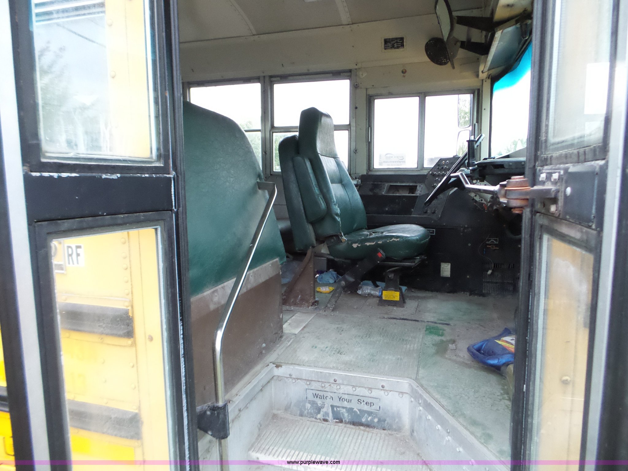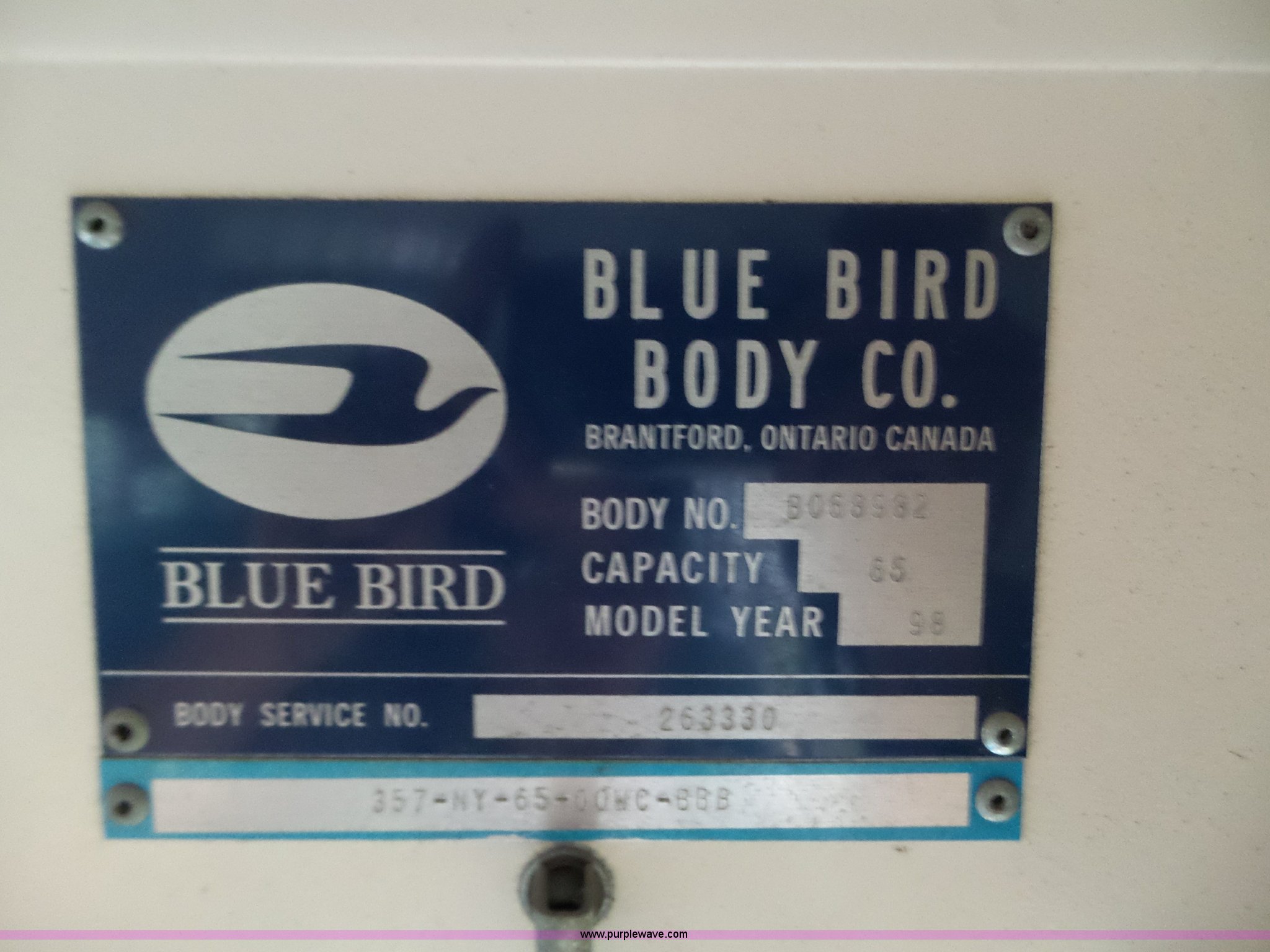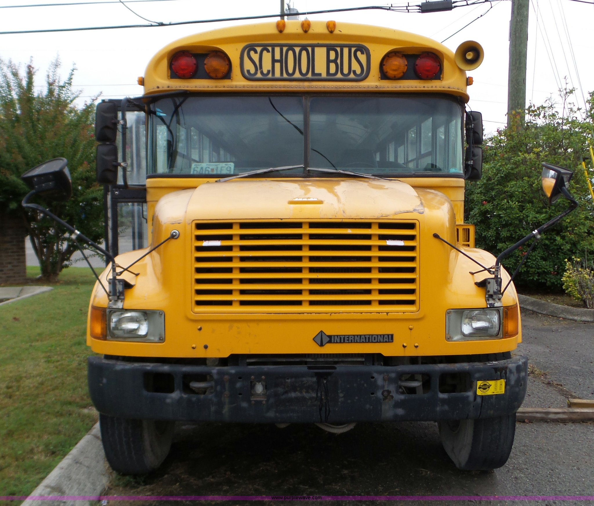 Purple Wave is selling a used Bus in Tennessee. This item is a 1998 International 3800 Blue Bird school bus with the following: 81,932 miles on odometer, 7,288 hours on meter, International T444E 7.3L V8 diesel engine, Automatic transmission, Heat, Cruise, Vinyl interior, Front tow hooks, Manual passenger door, 65 passenger capacity, Spring suspension, Air brakes, 11R22.5 tires, Cracked window