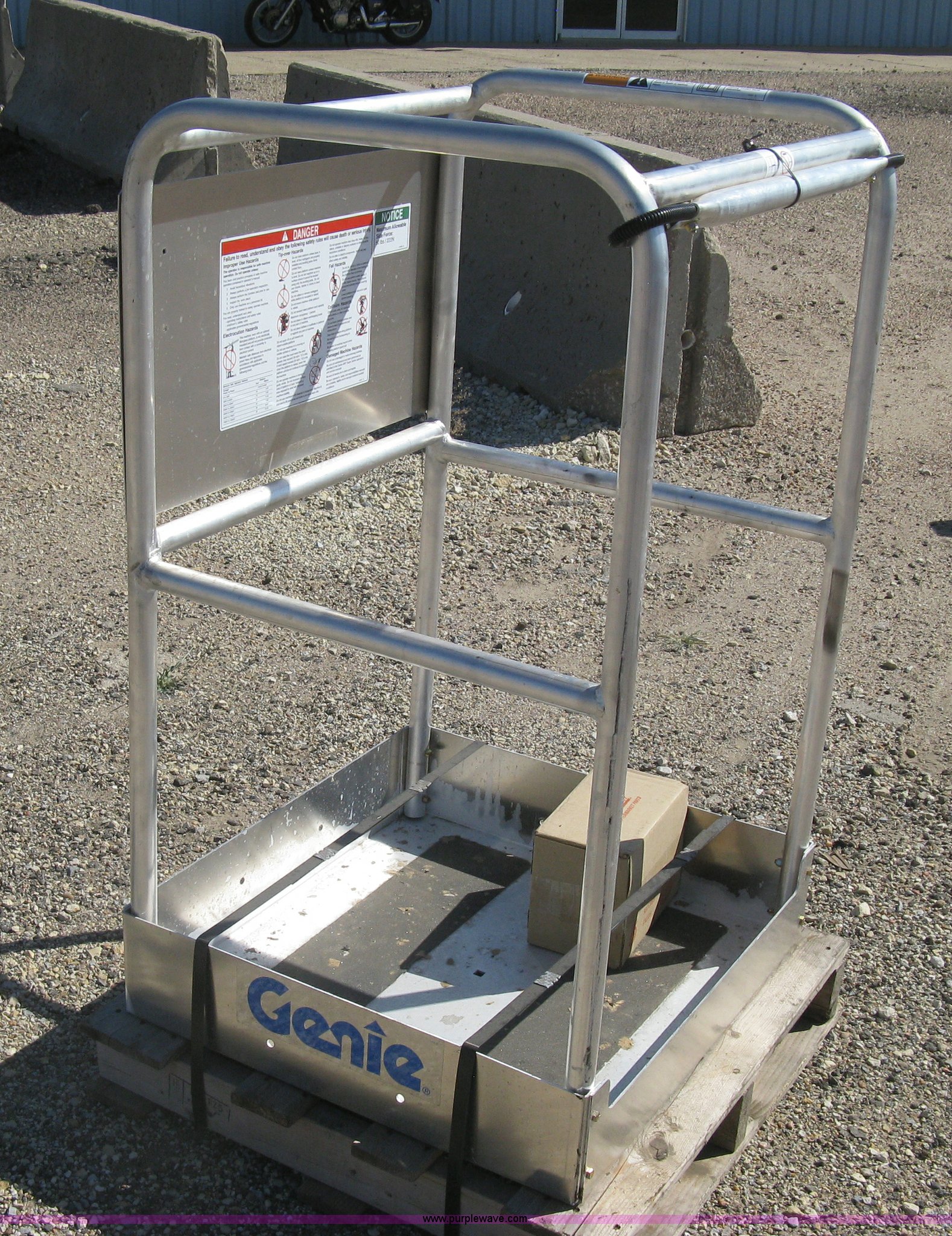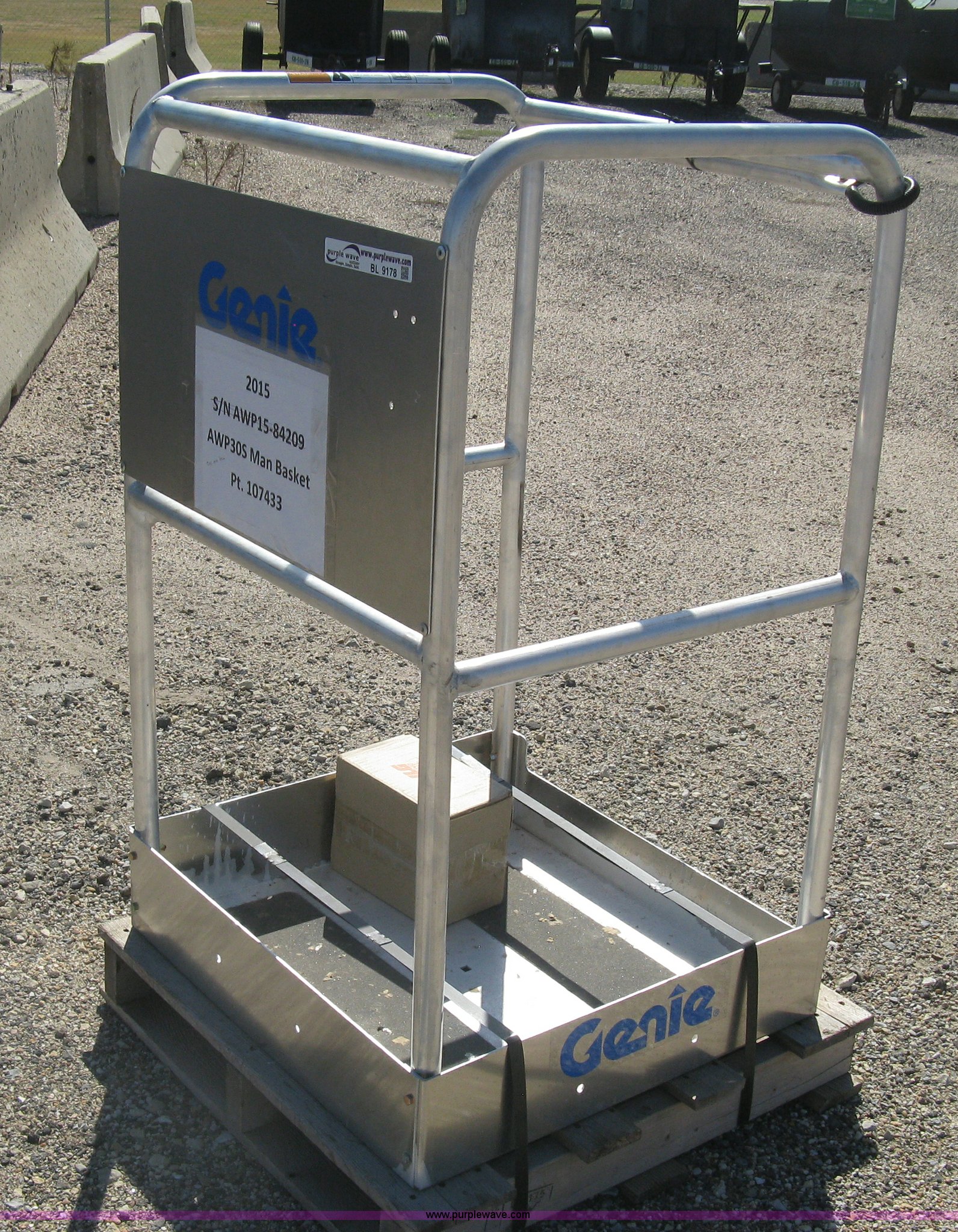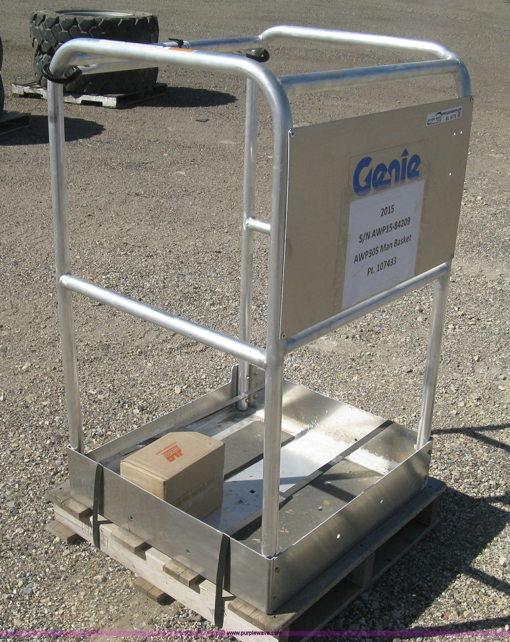 Purple Wave is selling a used Aerial Lift Attach. in Kansas. This item is a 2015 Genie AWP30S man basket with the following: Single person capacity, Hardware, New in box, Part No. 107433, Unused