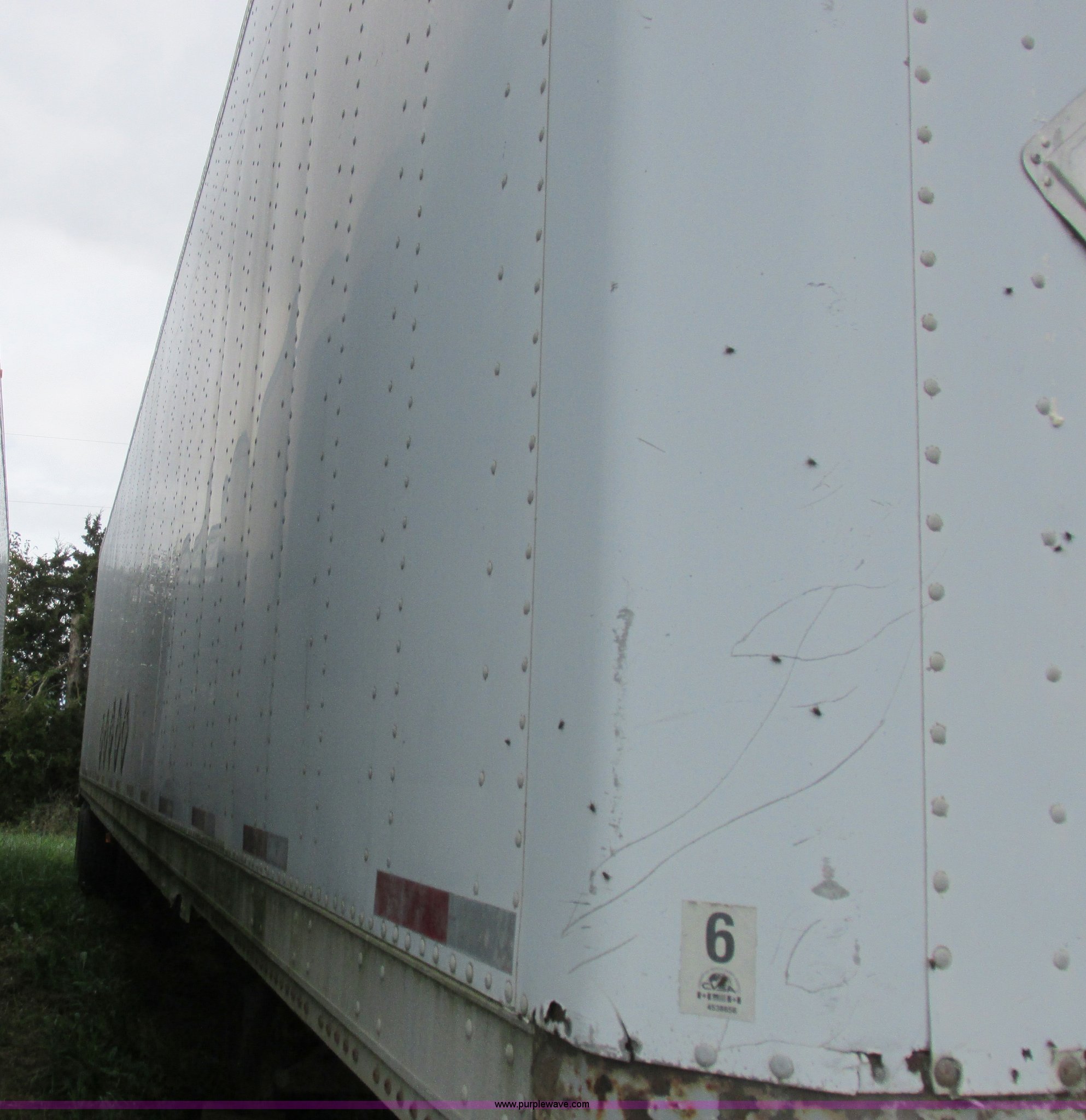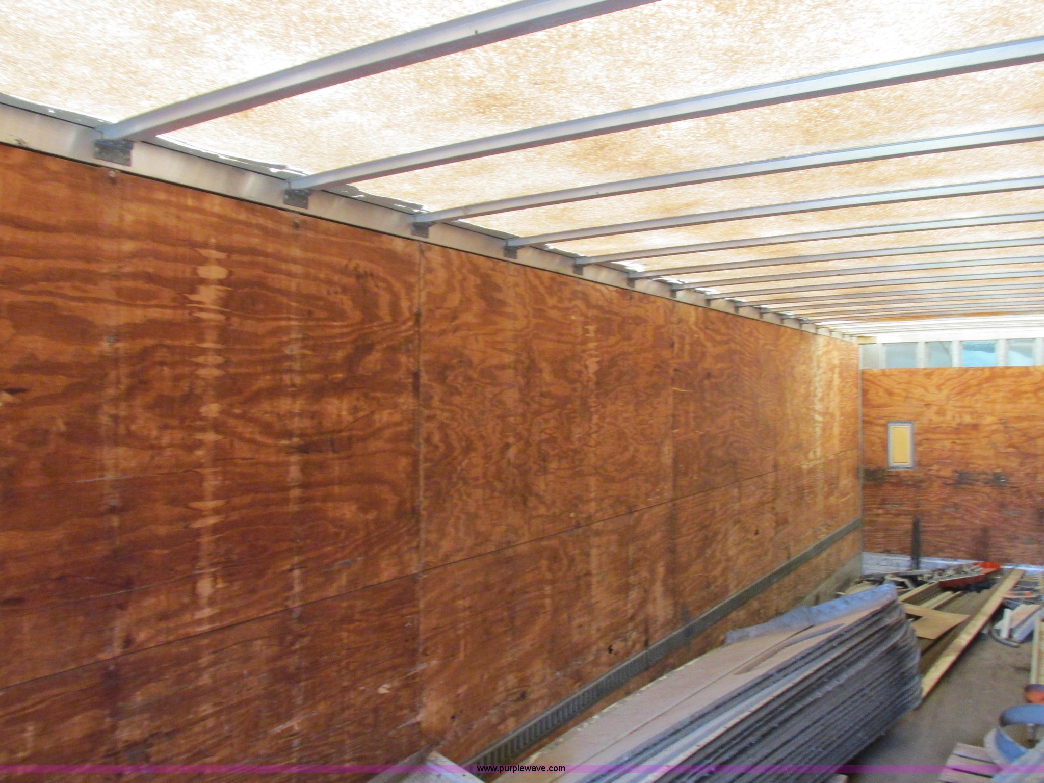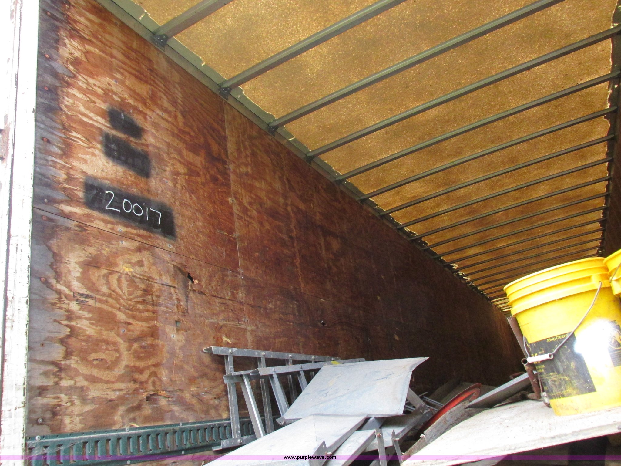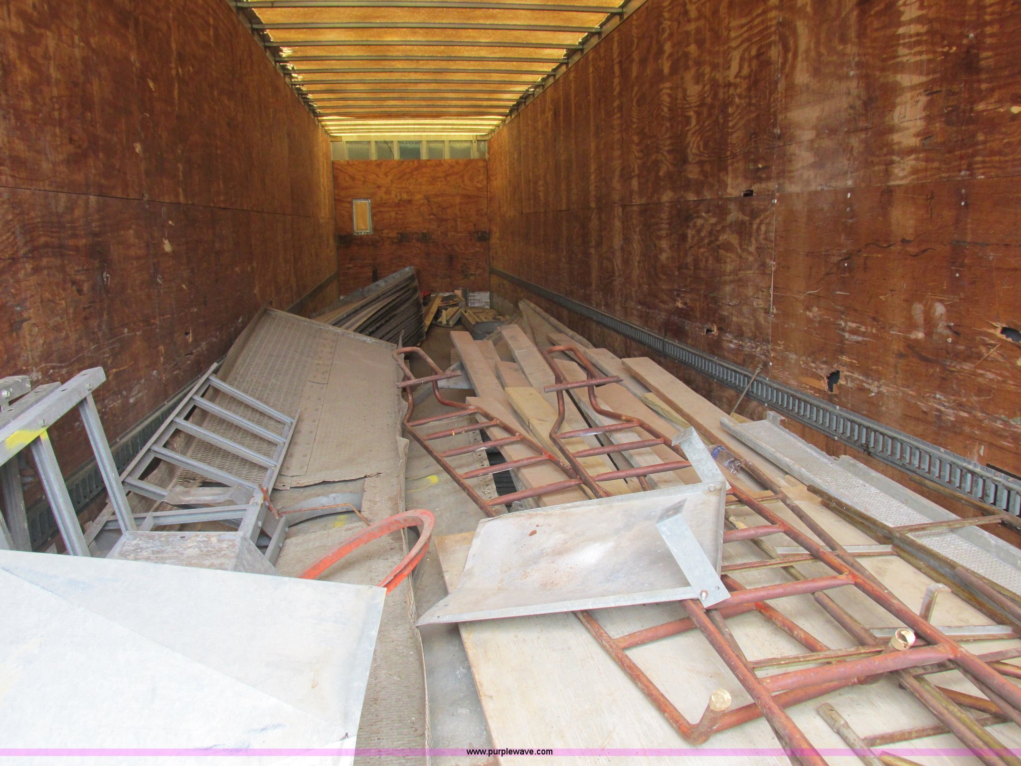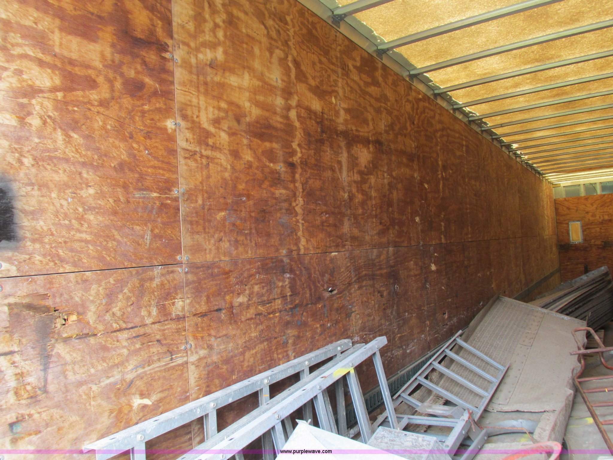 Purple Wave is selling a used Dry Van Trailer in Missouri. This item is a 1996 Stoughton dry van trailer with the following: Model AVW4857SCAR, 48'L x 102"W, Wood deck, Swing-out rear doors, Lift gate, Unknown operating condition, Assorted grain bin parts and accessories, Dual leg landing gear, Air suspension, Air brakes, Tandem axle, 295/75R22.5 tires, GVWR 70,000 lbs