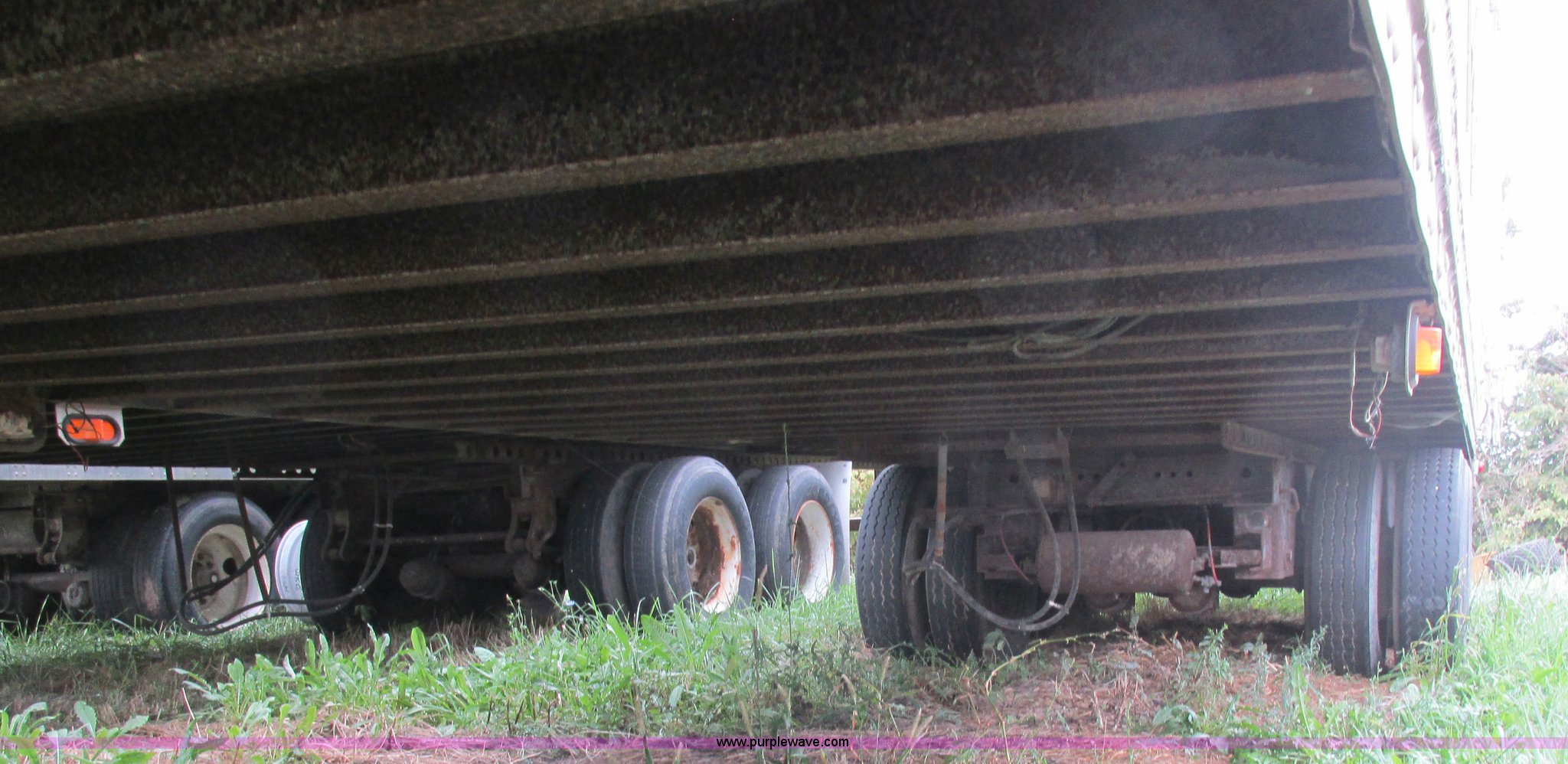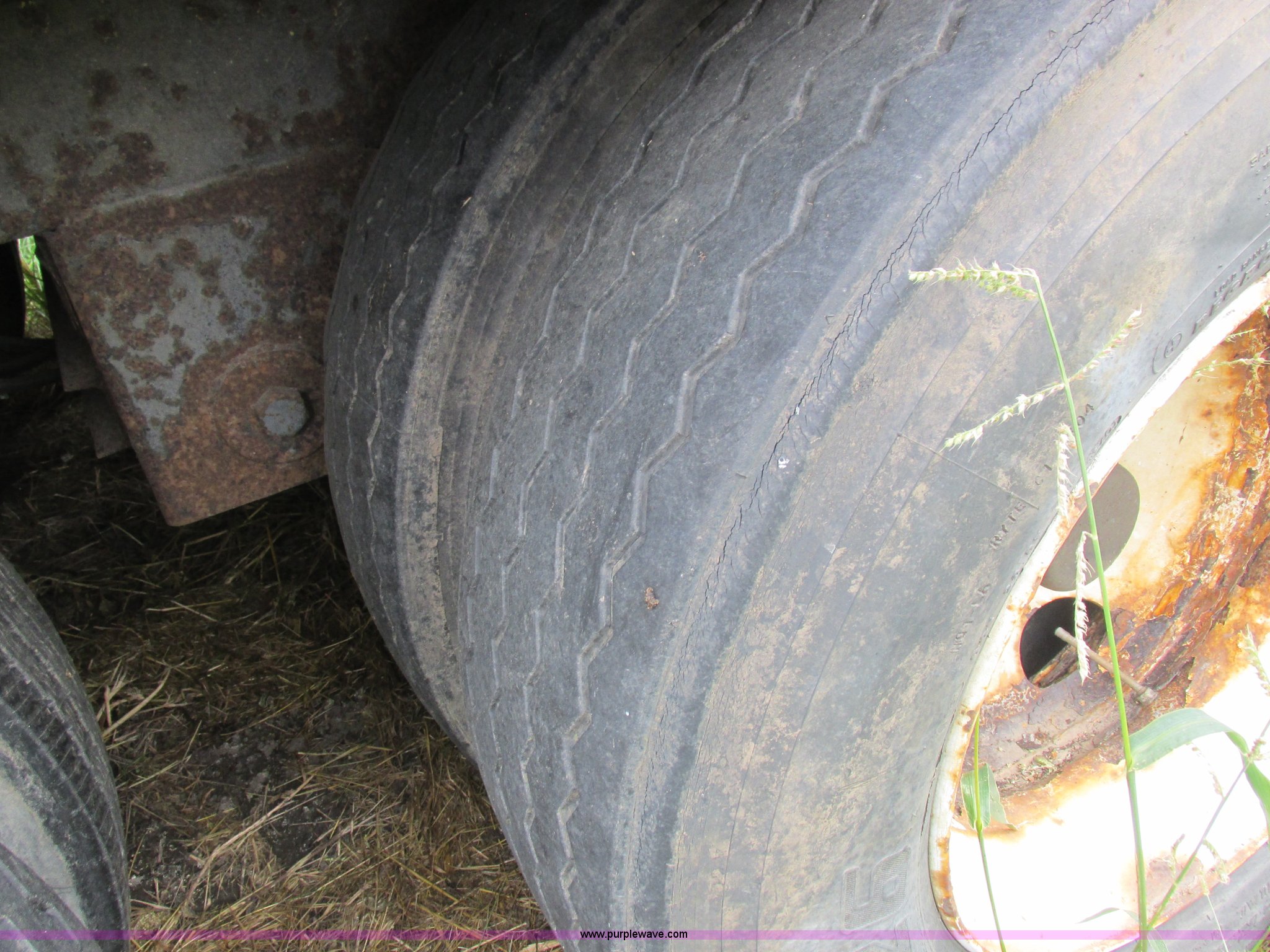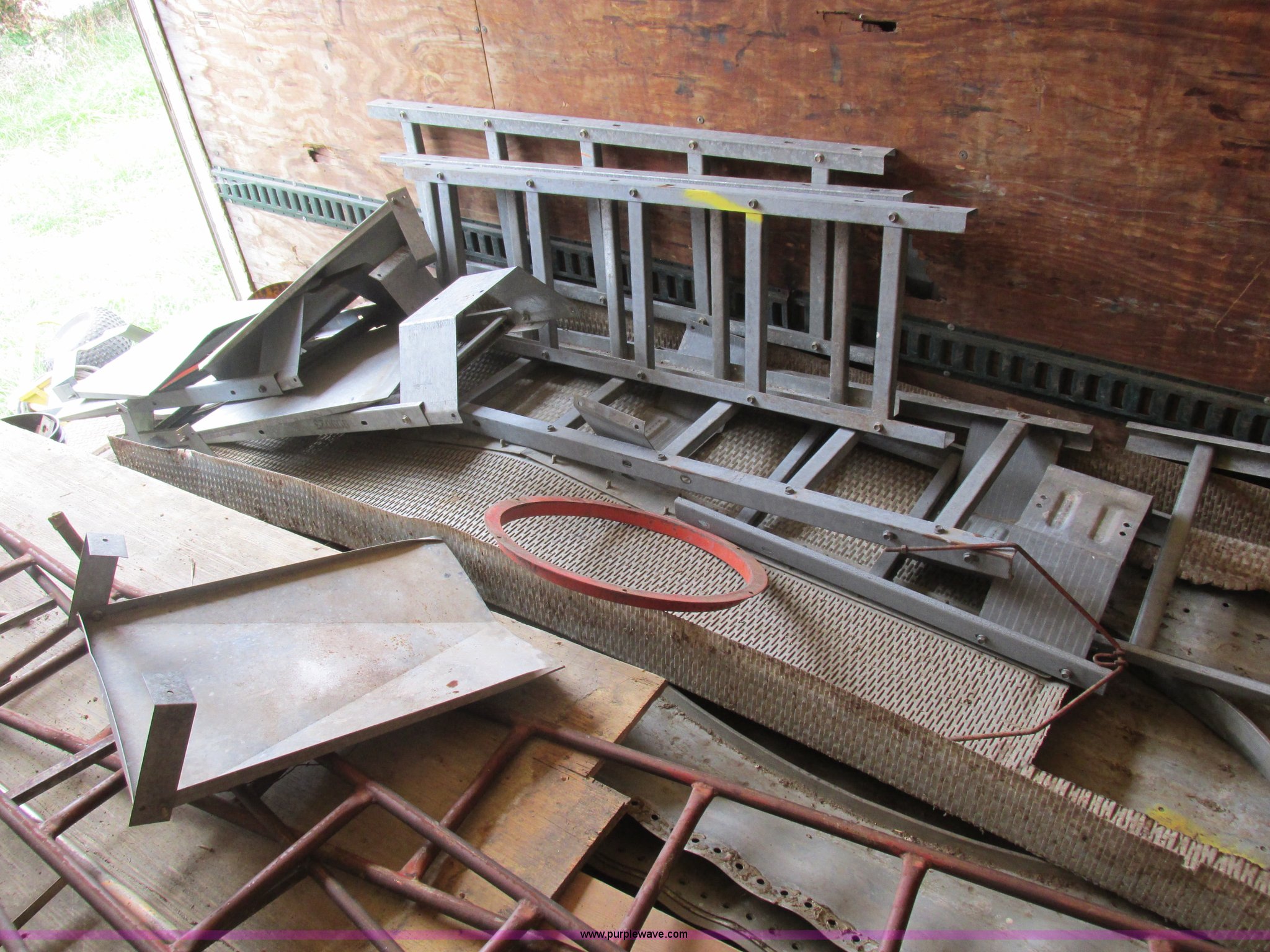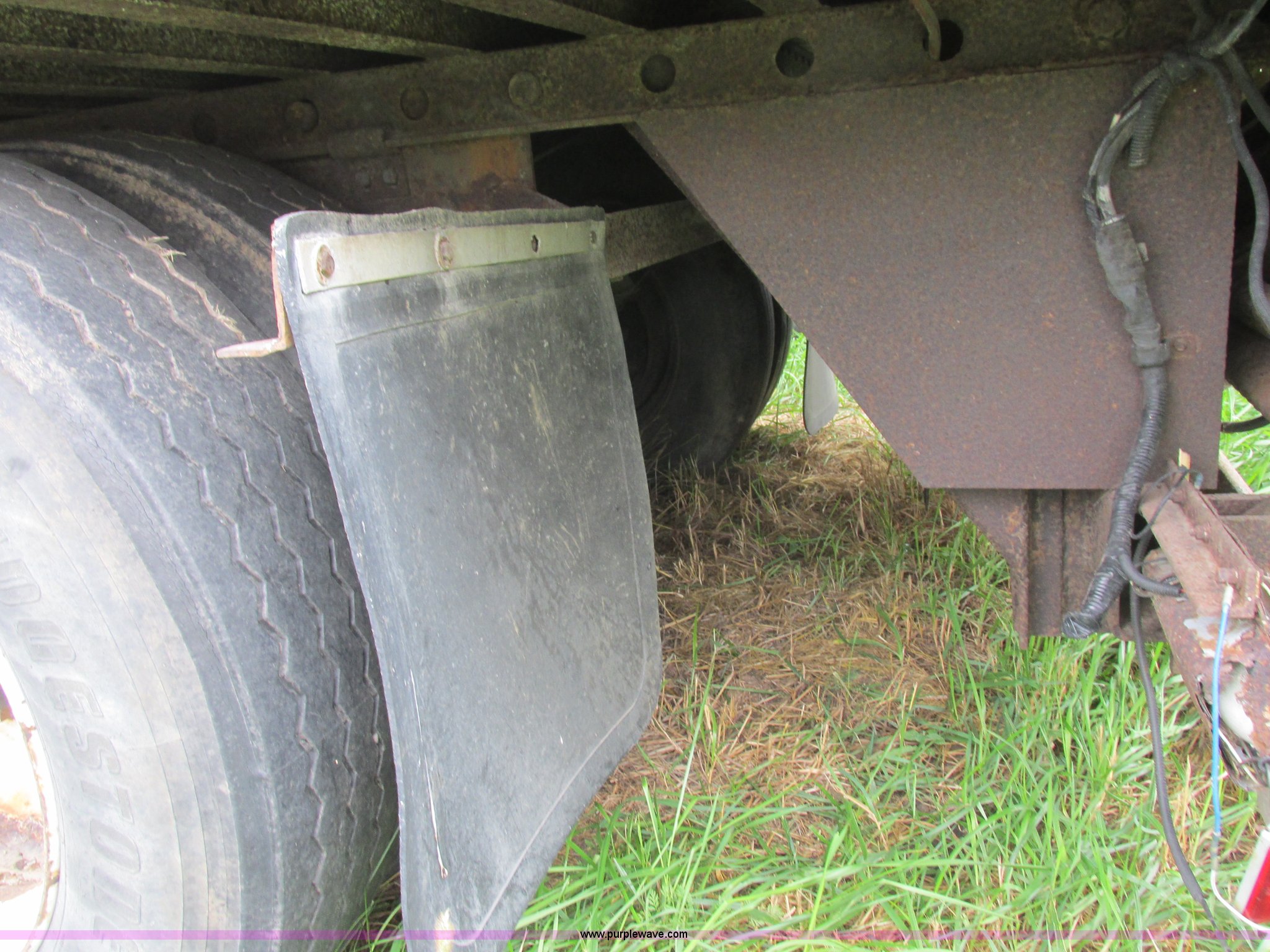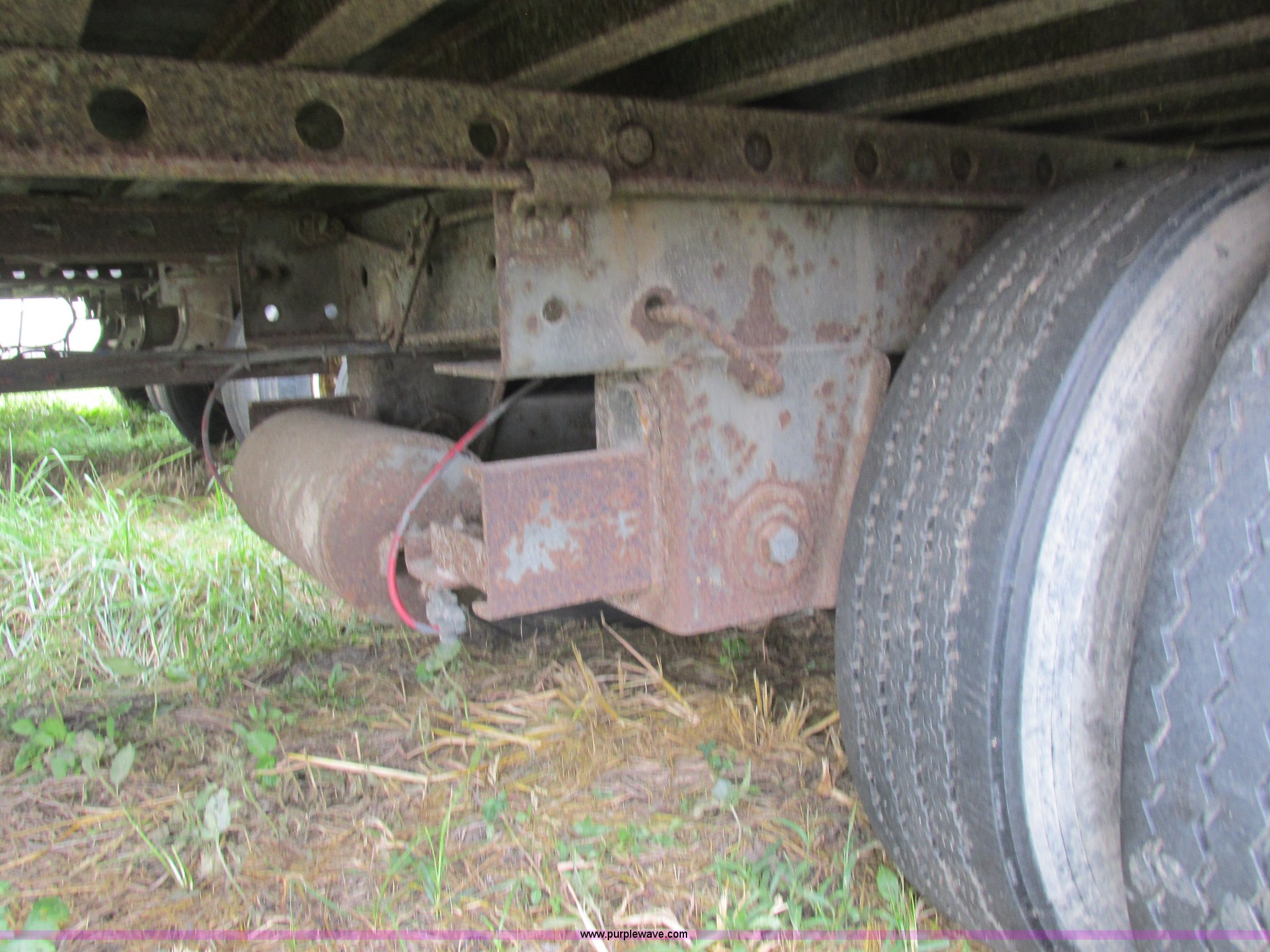 Purple Wave is selling a used Dry Van Trailer in Missouri. This item is a 1996 Stoughton dry van trailer with the following: Model AVW4857SCAR, 48'L x 102"W, Wood deck, Swing-out rear doors, Lift gate, Unknown operating condition, Assorted grain bin parts and accessories, Dual leg landing gear, Air suspension, Air brakes, Tandem axle, 295/75R22.5 tires, GVWR 70,000 lbs