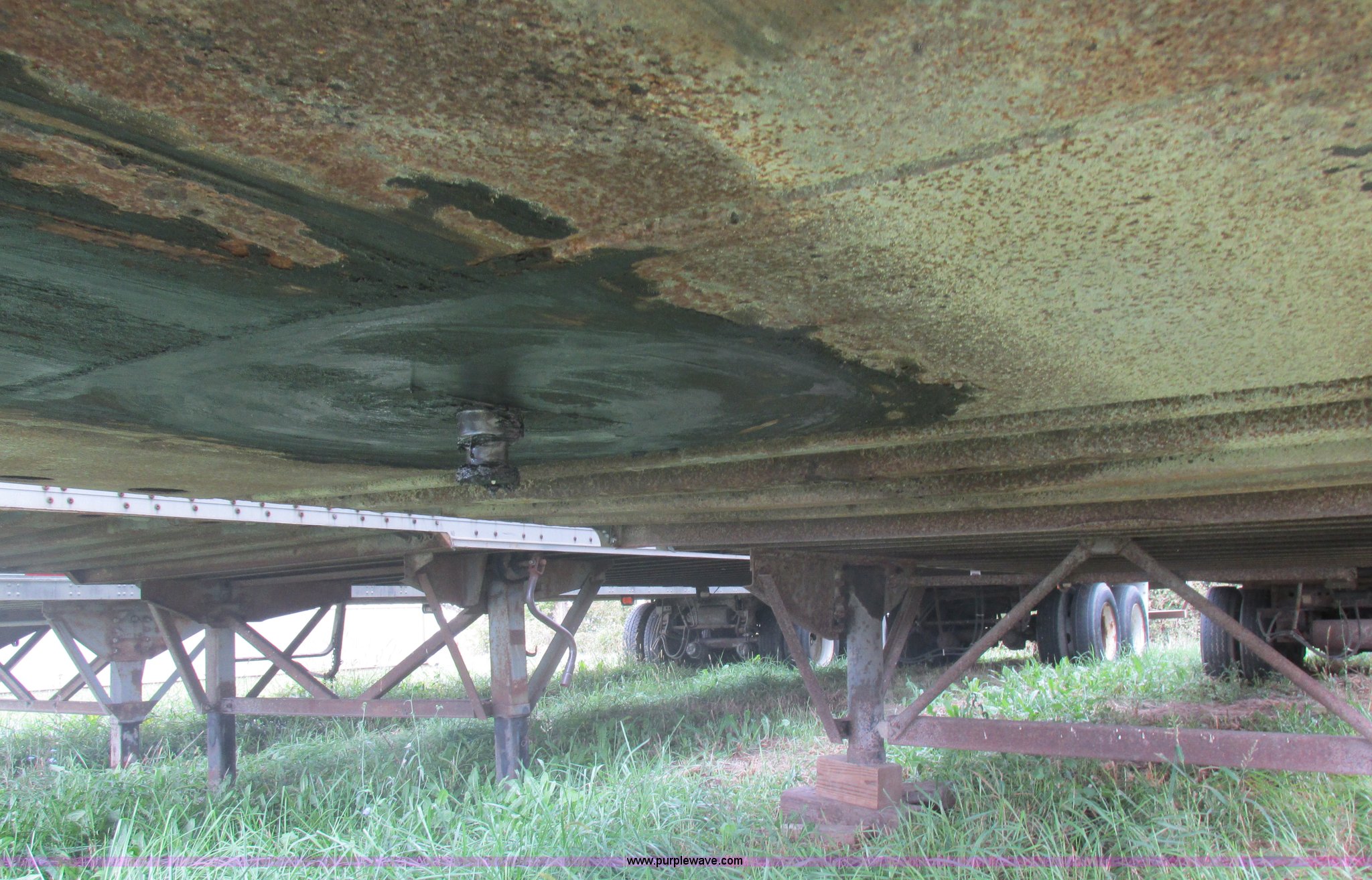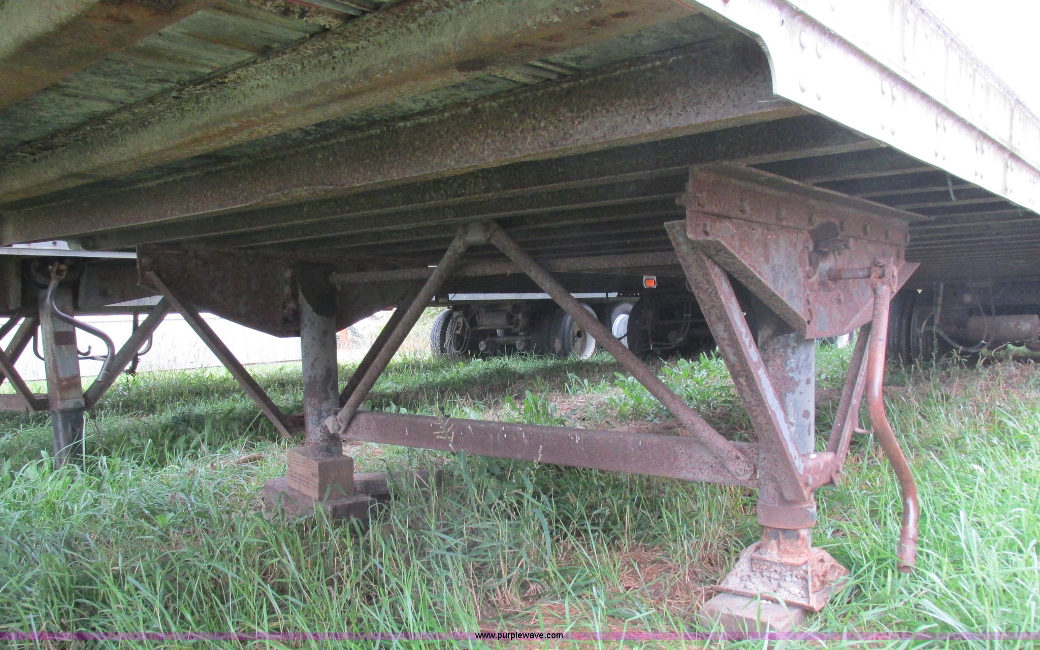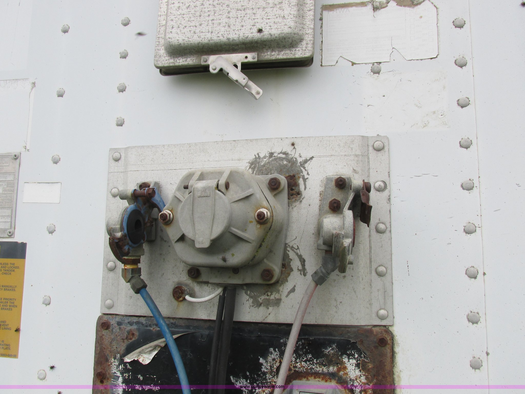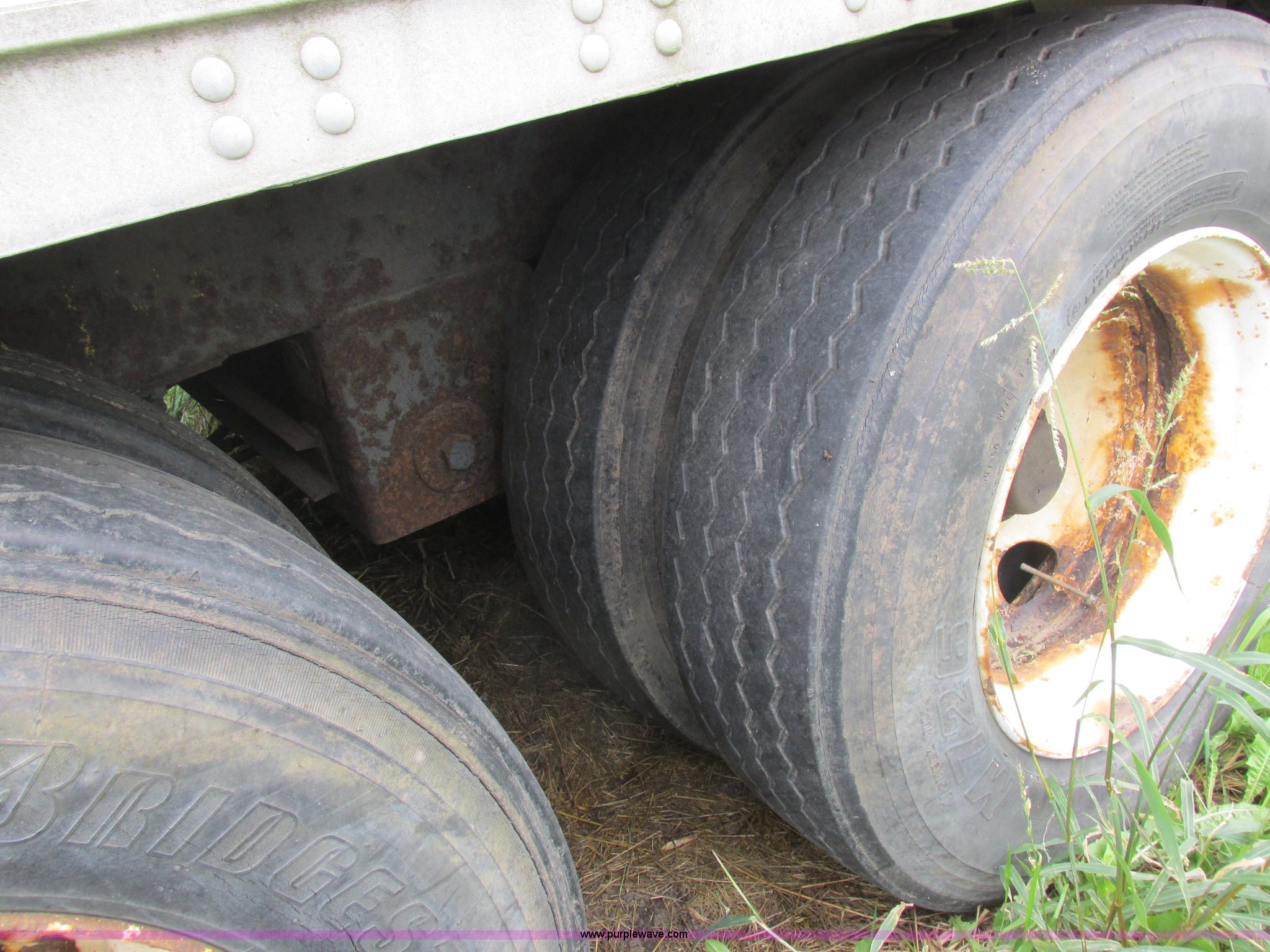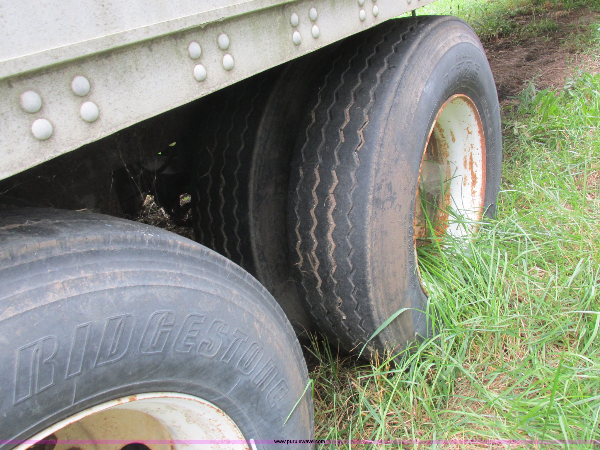Purple Wave is selling a used Dry Van Trailer in Missouri. This item is a 1996 Stoughton dry van trailer with the following: Model AVW4857SCAR, 48'L x 102"W, Wood deck, Swing-out rear doors, Lift gate, Unknown operating condition, Assorted grain bin parts and accessories, Dual leg landing gear, Air suspension, Air brakes, Tandem axle, 295/75R22.5 tires, GVWR 70,000 lbs