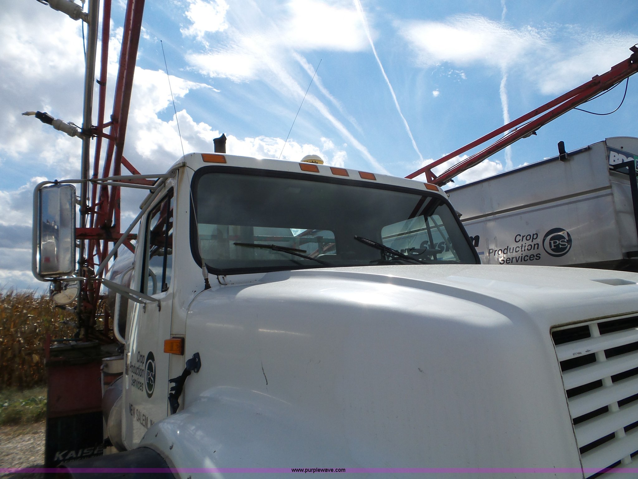 Purple Wave is selling a used Applicator Truck in Indiana. This item is a 1991 International 4900 self-propelled sprayer with the following: 36,966 miles on odometer, 4,707 hours on meter, International DT466 7.6L L6 turbo diesel engine, Eaton Fuller five speed manual transmission, Two speed rear end, Heat, AM/FM, Air suspension seat, Terra-Tronics II GPS monitor, PTO, 1,600 gallon stainless steel solution tank, 50'W boom, Three boom sections, Hydraulic boom fold, 30" nozzle spacing, Single nozzle bodies, Fence row nozzles, Spring suspension, Air brakes, 176" wheelbase, 15-22.5 front tires, 18-22.5 rear tires, Unit# 44899