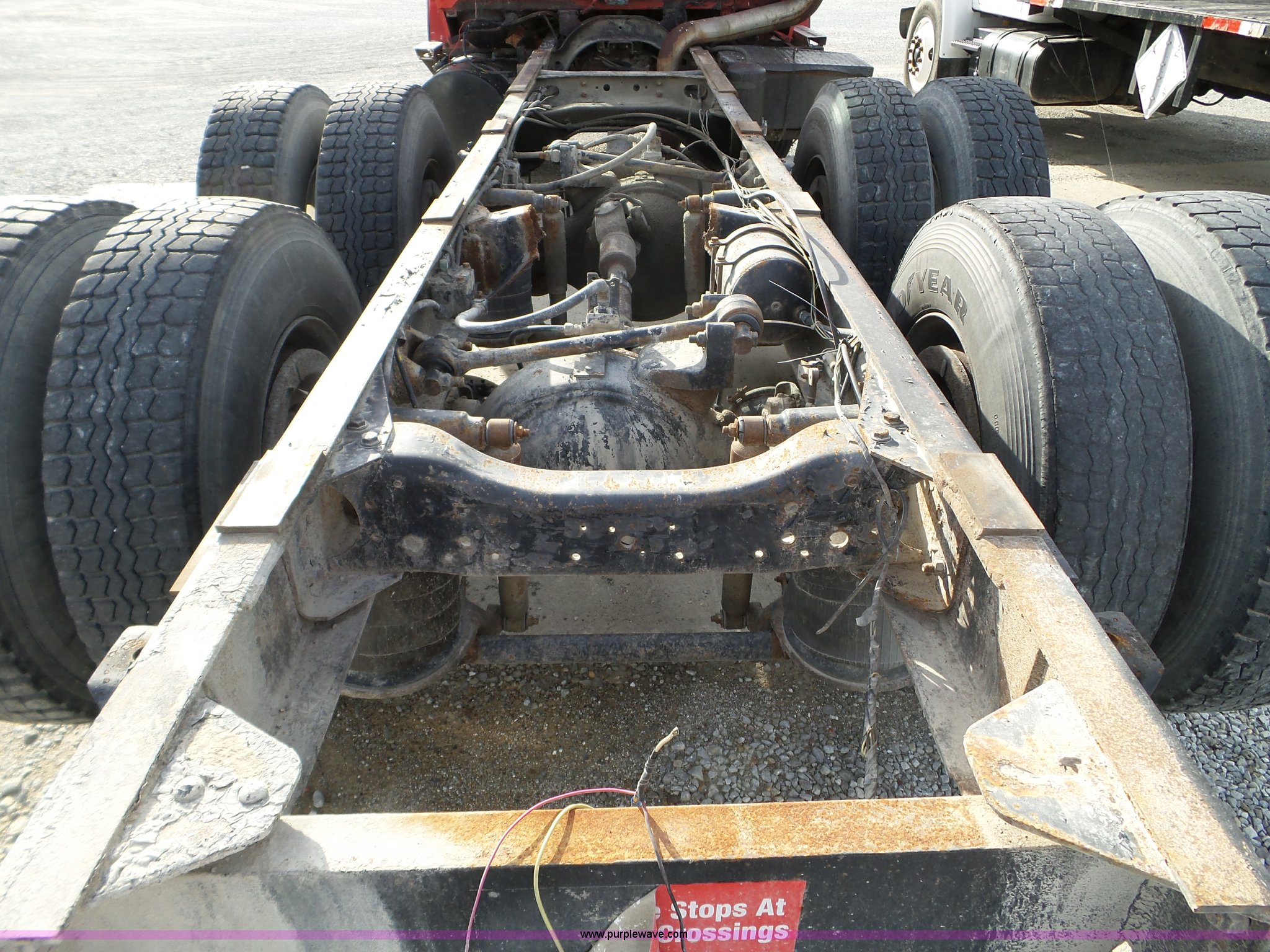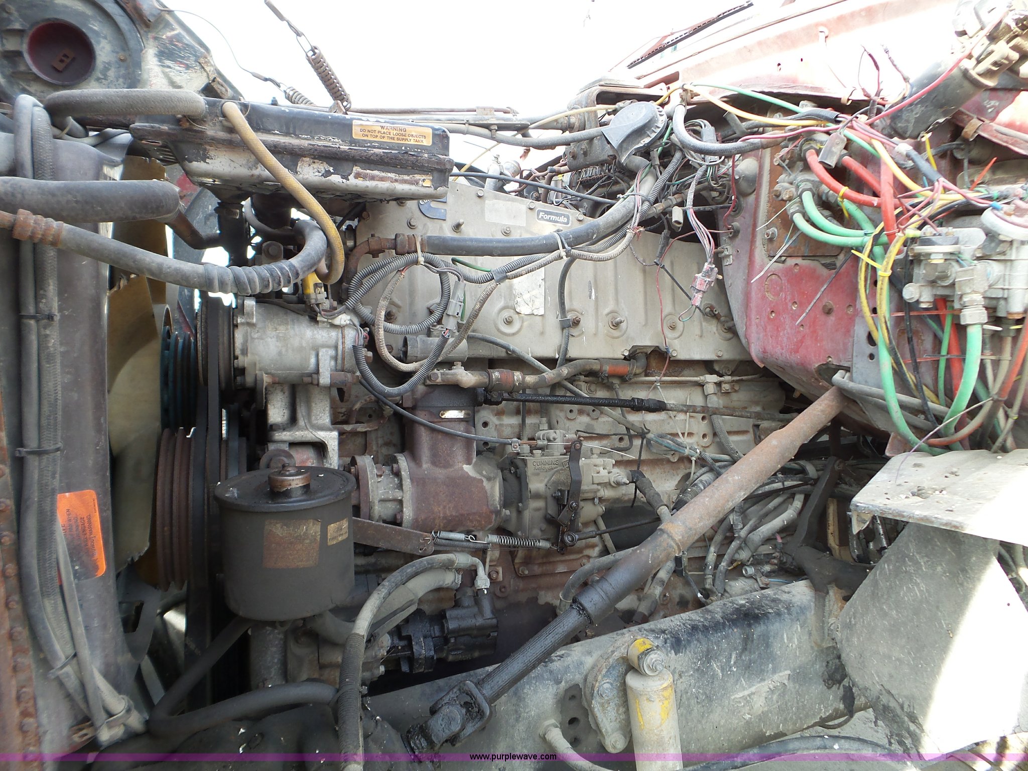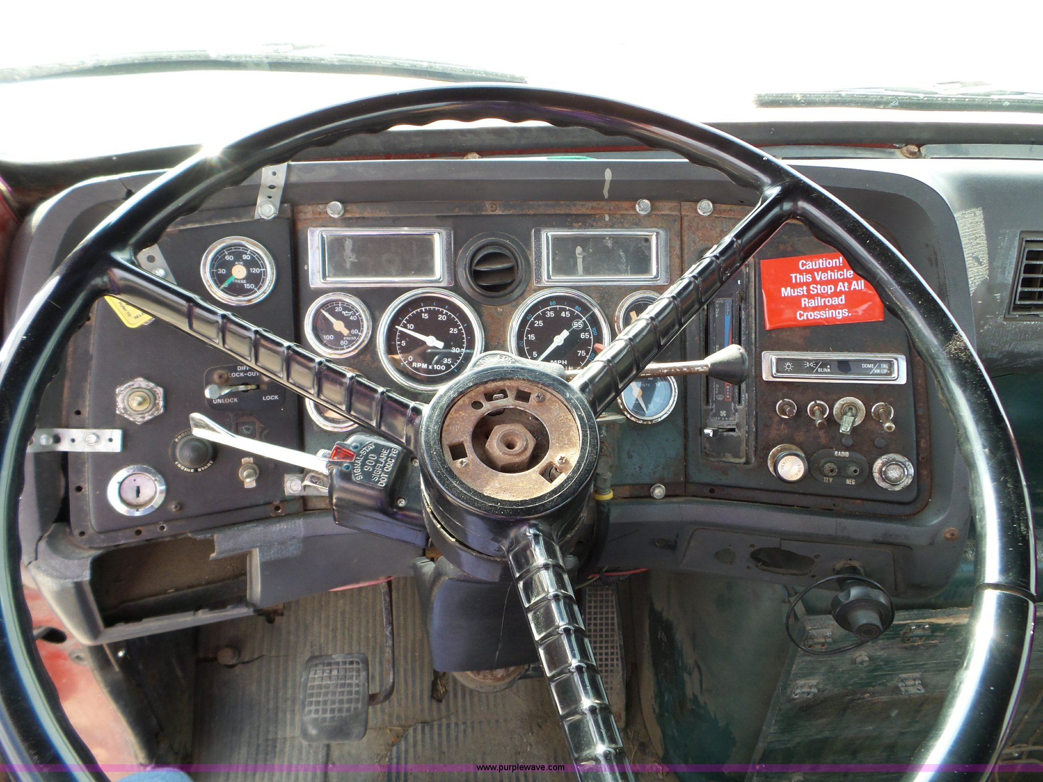 Purple Wave is selling a used Truck Chassis in Indiana. This item is a 1990 Ford F9000 truck cab and chassis with the following: 597,027 miles on odometer, Cummins N14 14.0L L6 diesel engine, 12 speed manual transmission, Tandem axle, AC and heat, Heated mirrors, Air suspension seat, Front tow hooks, Single rear exhaust stack, Air suspension, Air brakes, 155" wheelbase, 11R22.5 tires, GVWR 52,000 lbs, Slow oil leak