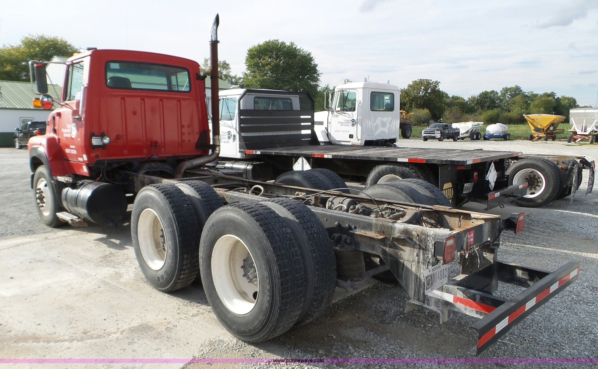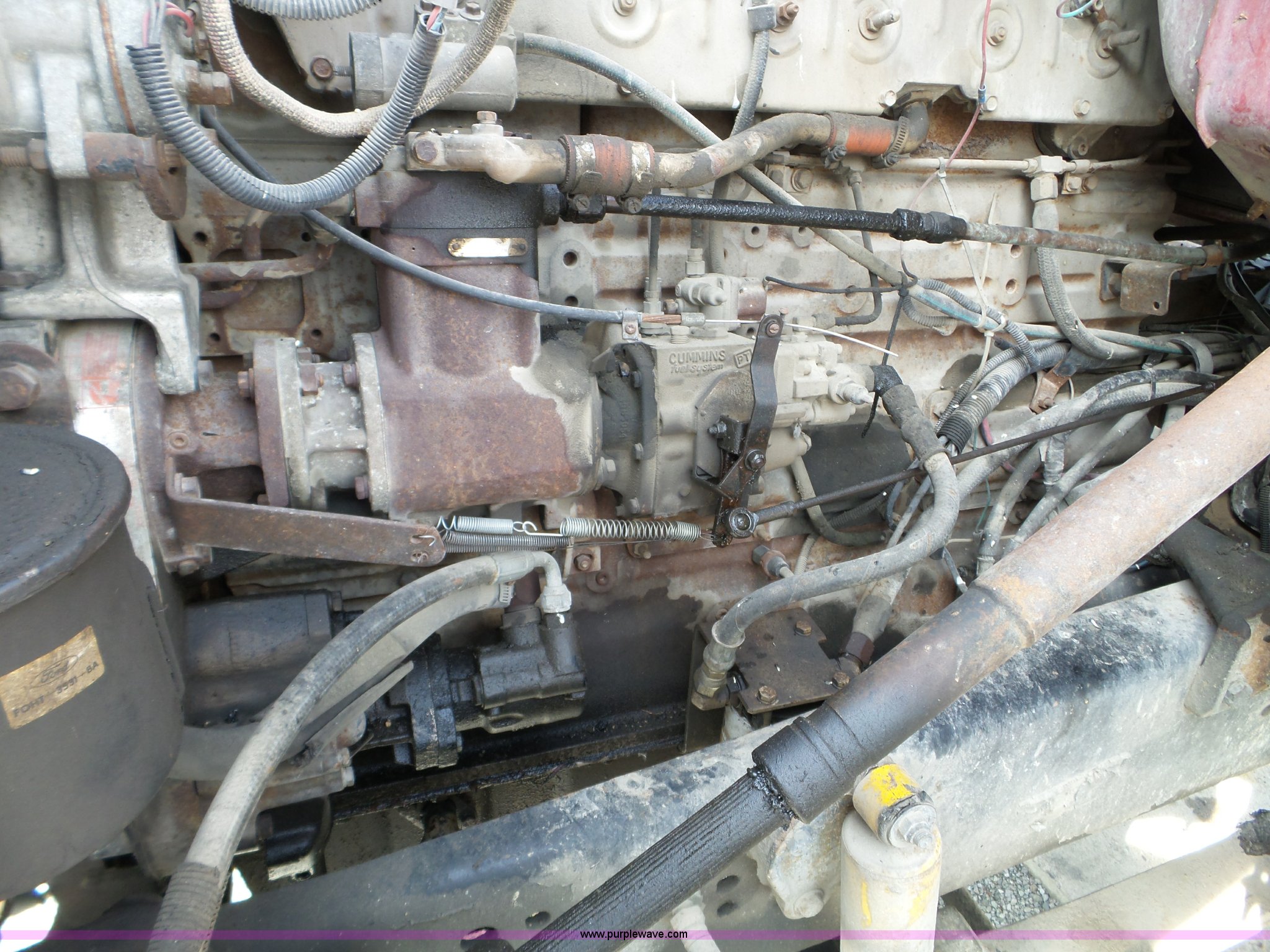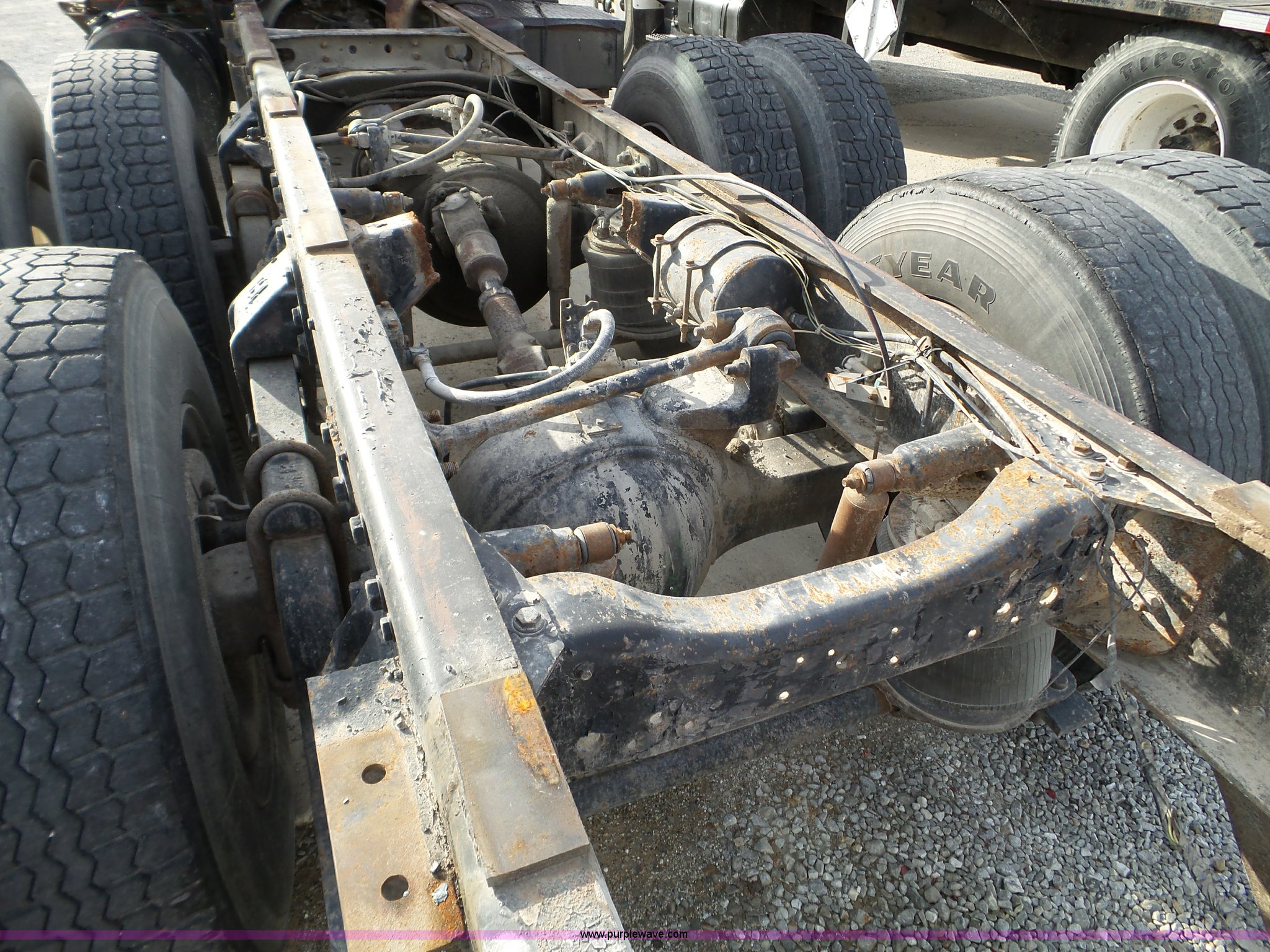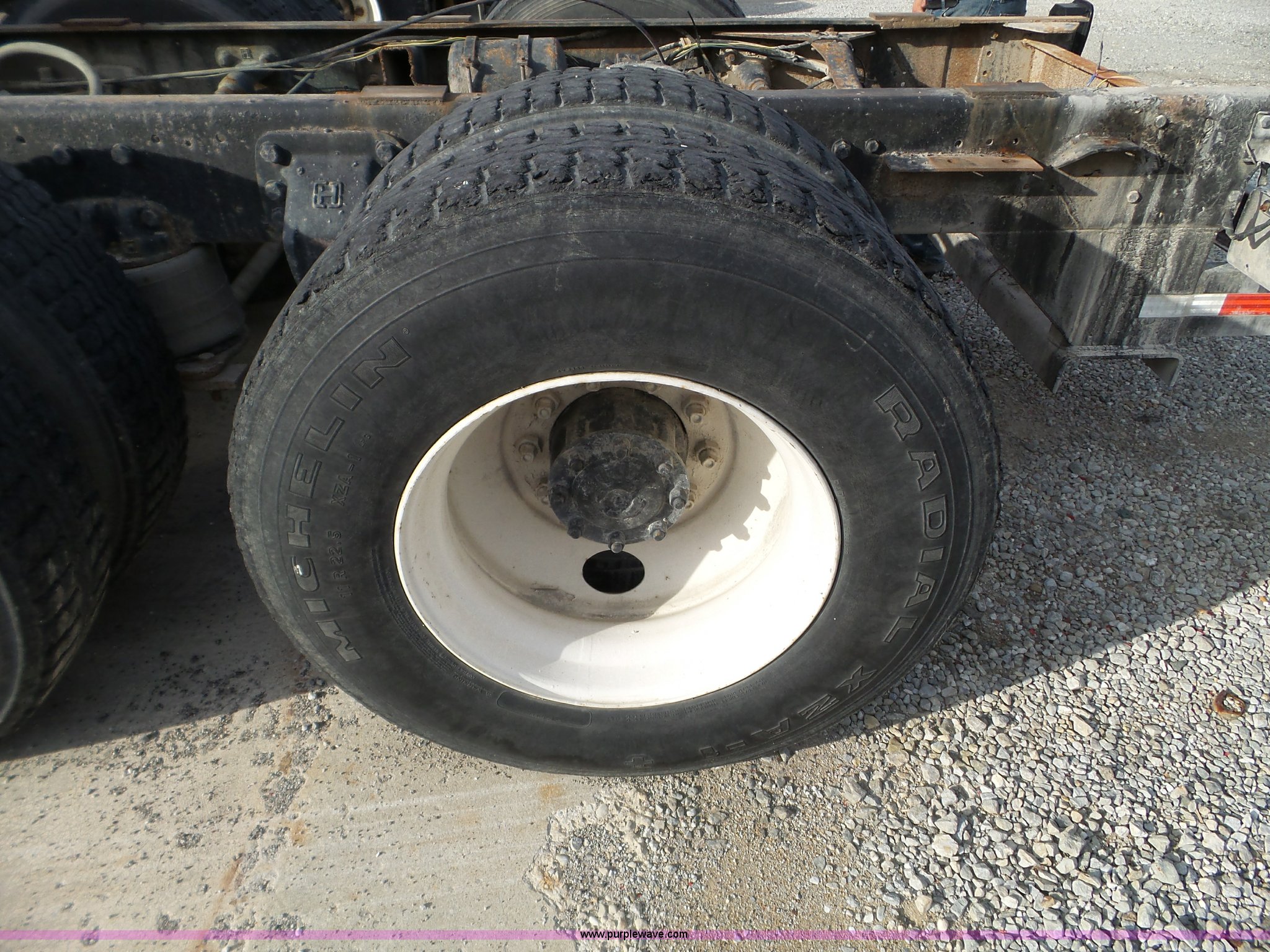 Purple Wave is selling a used Truck Chassis in Indiana. This item is a 1990 Ford F9000 truck cab and chassis with the following: 597,027 miles on odometer, Cummins N14 14.0L L6 diesel engine, 12 speed manual transmission, Tandem axle, AC and heat, Heated mirrors, Air suspension seat, Front tow hooks, Single rear exhaust stack, Air suspension, Air brakes, 155" wheelbase, 11R22.5 tires, GVWR 52,000 lbs, Slow oil leak