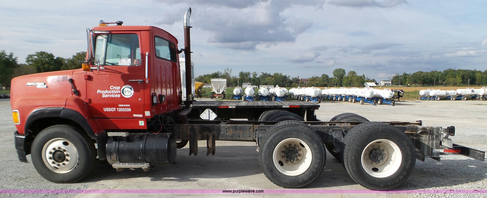 1990 Ford F9000 truck cab and chassis. 597,027 miles on odometer, Cummins N14 14.0L L6 diesel engine, 12 speed manual transmission, Tandem axle, AC and heat, Heated mirrors, Air suspension seat, Front tow hooks, Single rear exhaust stack, Air suspension, Air brakes, 155" wheelbase, 11R22.5 tires, GVWR 52,000 lbs, Slow oil leak. Title distribution may be delayed up to 30 days from verification of funds. 1FDYY95W2LVA32433. Crop Production Services. 2232 W State Rd 44. Rushville, IN 46173