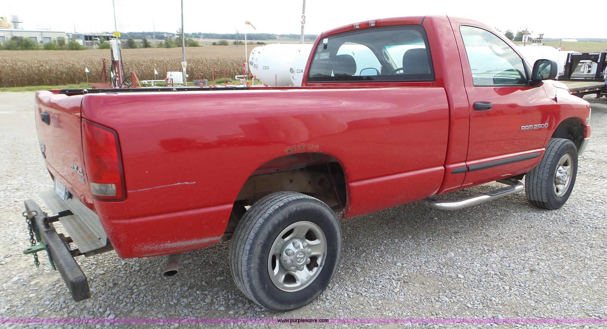 Purple Wave is selling a used 3/4 or 1 Ton Pickup or Van in Indiana. This item is a 2004 Dodge Ram 2500 pickup truck with the following: 215,966 miles on odometer, 5.7L V8 OHV 16V gas engine, Automatic transmission, AC and heat, Tilt, Cruise, AM/FM/CD, Power windows, locks, and mirrors, Cloth interior, Running boards, Front tow hooks, Long bed, Trailer wiring, 265/70R17 tires, Interior/exterior cosmetic damage, Check engine light on, Unit# 10791