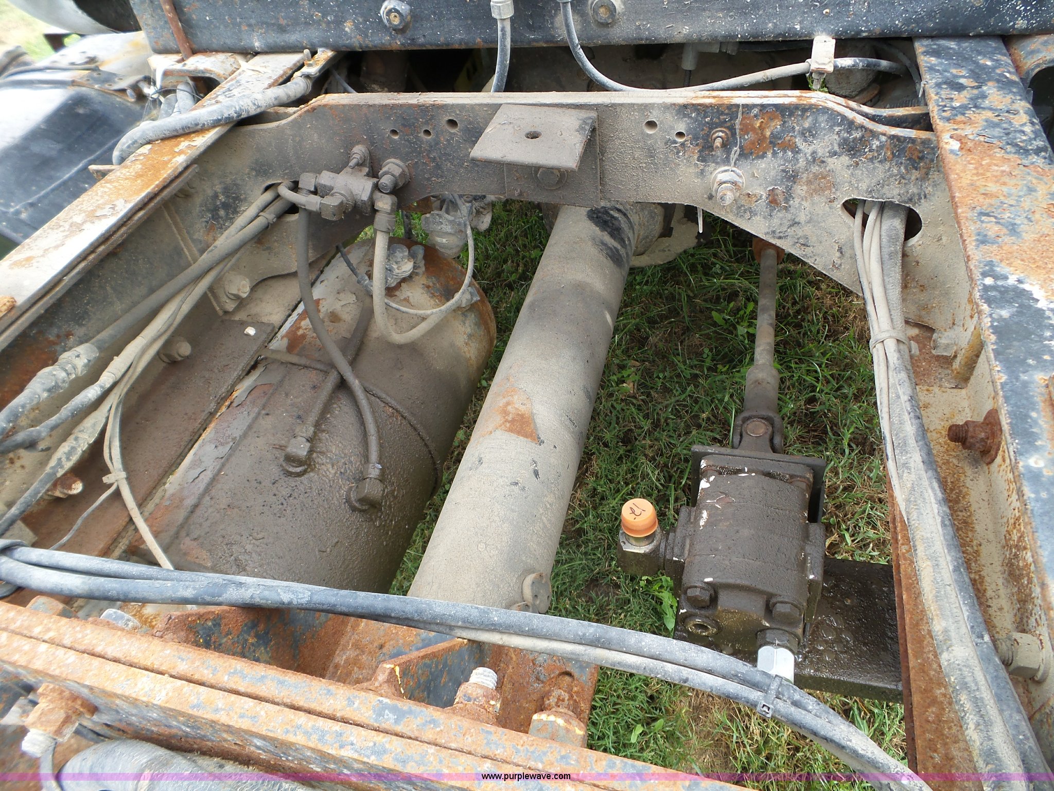 Purple Wave is selling a used Truck Chassis in Indiana. This item is a 1982 Mack R686ST truck cab and chassis with the following: 557,189 miles on odometer, Mack E6 11.0L six cylinder turbo diesel engine, Six speed manual transmission, Tandem axle, Full differential lock, Heat, AM/FM/cassette, Air suspension seat, Block heater, PTO, Exterior visor, Front tow hooks, Single exhaust stack, Dual fuel tanks, Spring over walking beam suspension, Air brakes, Engine brake, Double frame, 200" wheelbase, 11R22.5 tires, Unit# 45446