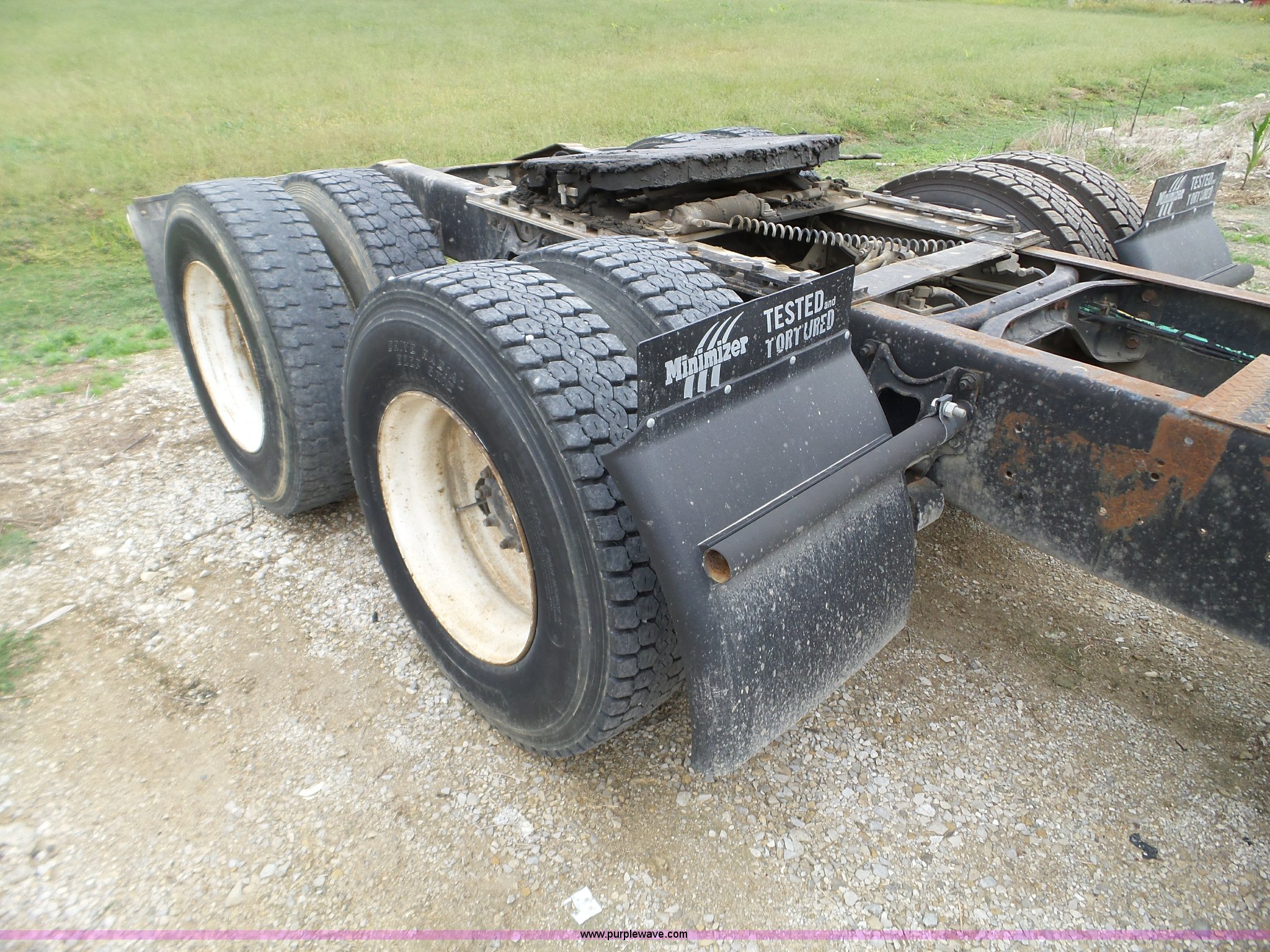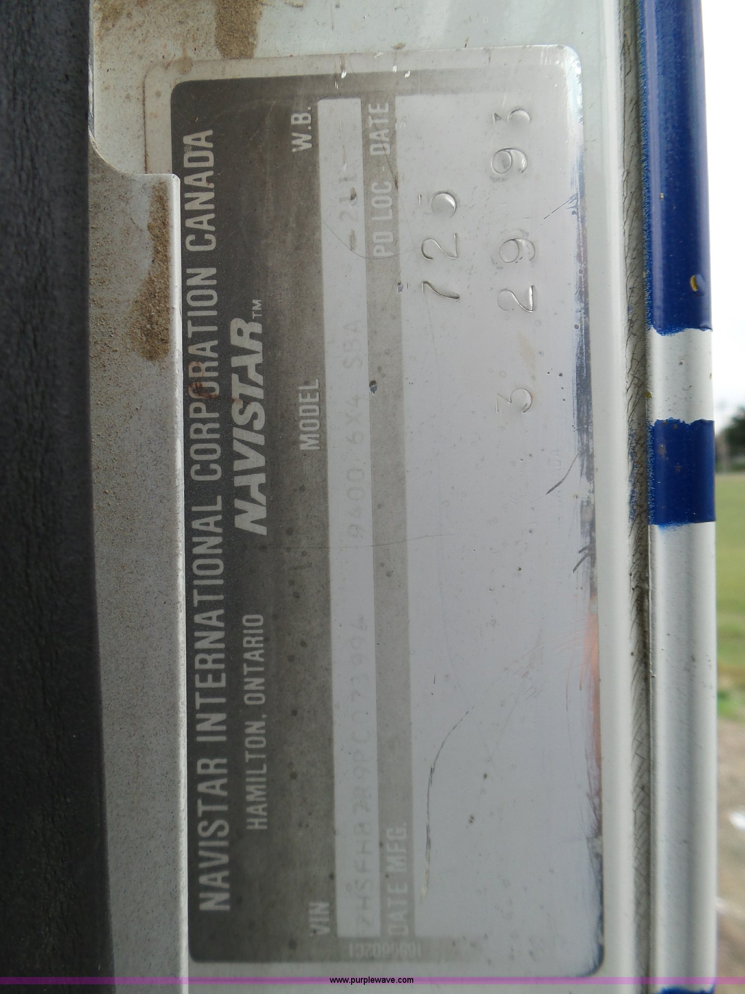 Purple Wave is selling a used Truck Tractor in Kentucky. This item is a 1993 International 9400 semi truck with the following: 969,672 miles on odometer, Cummins N14 14.0L L6 turbo diesel engine, Eaton Fuller nine speed manual transmission, Tandem axle, Full differential lock, AC, AM/FM/cassette, Heated mirrors, Air suspension seat, Ether start, PTO, Dump valves, Exterior visor, Single rear exhaust stack, Steel air operated sliding fifth wheel plate, Dual fuel tanks, Quarter fenders, Mud flaps, Air suspension, Air brakes, 211" wheelbase, 11R22.5 tires, GVWR 52,000 lbs, FAWR 12,000 lbs, IAWR 20,000 lbs, RAWR 20,000 lbs, Unit# 21919