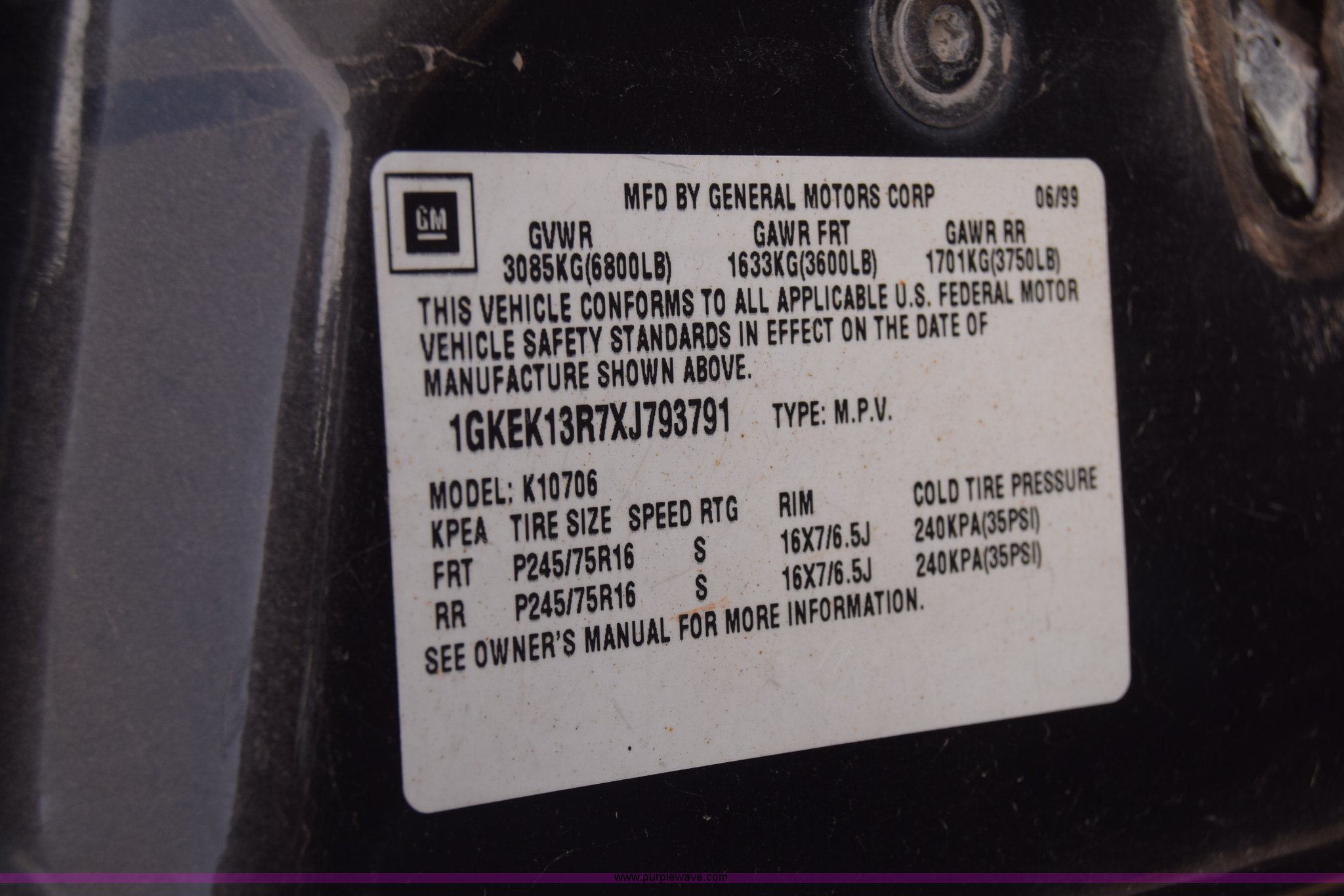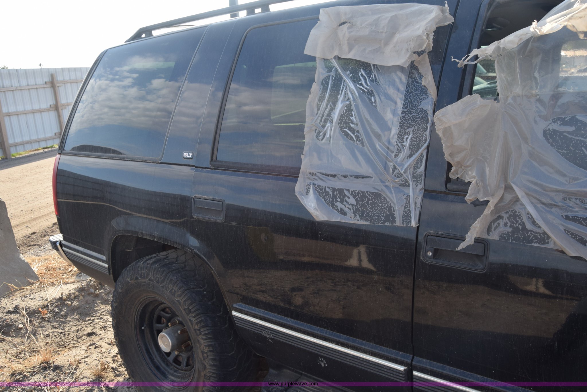 Purple Wave is selling a used Passenger Vehicle in Kansas. This item is a 1999 GMC Yukon SLE SUV with the following: 321,415 miles on odometer, 5.7L V8 OHV 16V gas engine, Automatic transmission, Four wheel drive, AC and heat, Tilt, Cruise, AM/FM/CD, Power windows, locks, and mirrors, Leather interior, Running boards, Front tow hooks, 305/70R16 tires, Interior/exterior cosmetic damage, Dents, Scratches, Paint faded, (2) flat tires, Case# 15C45956