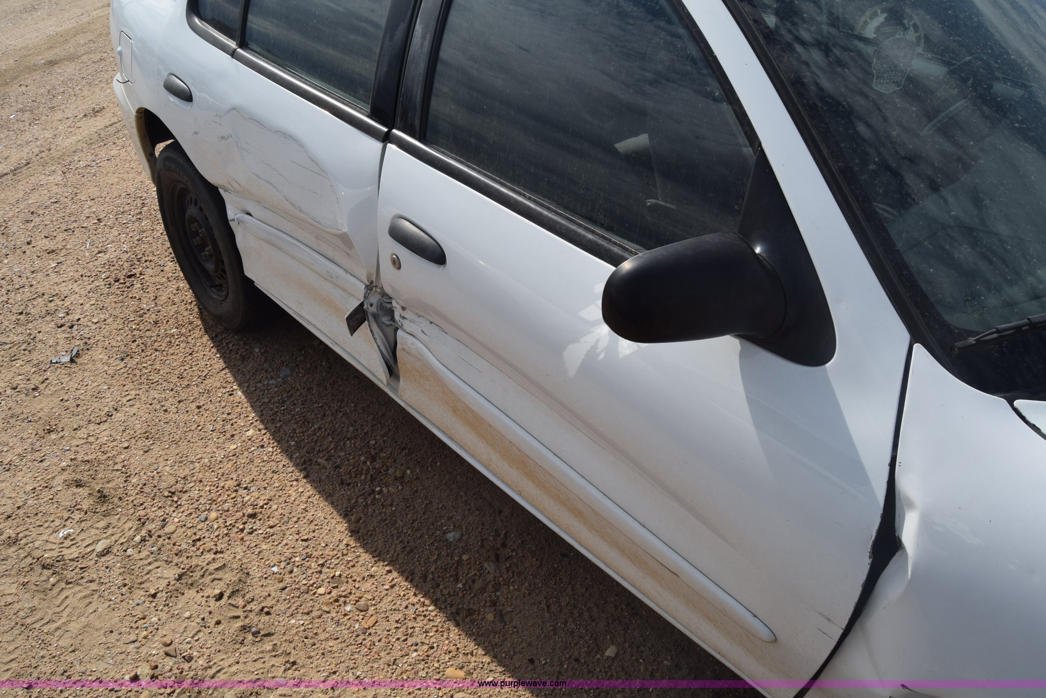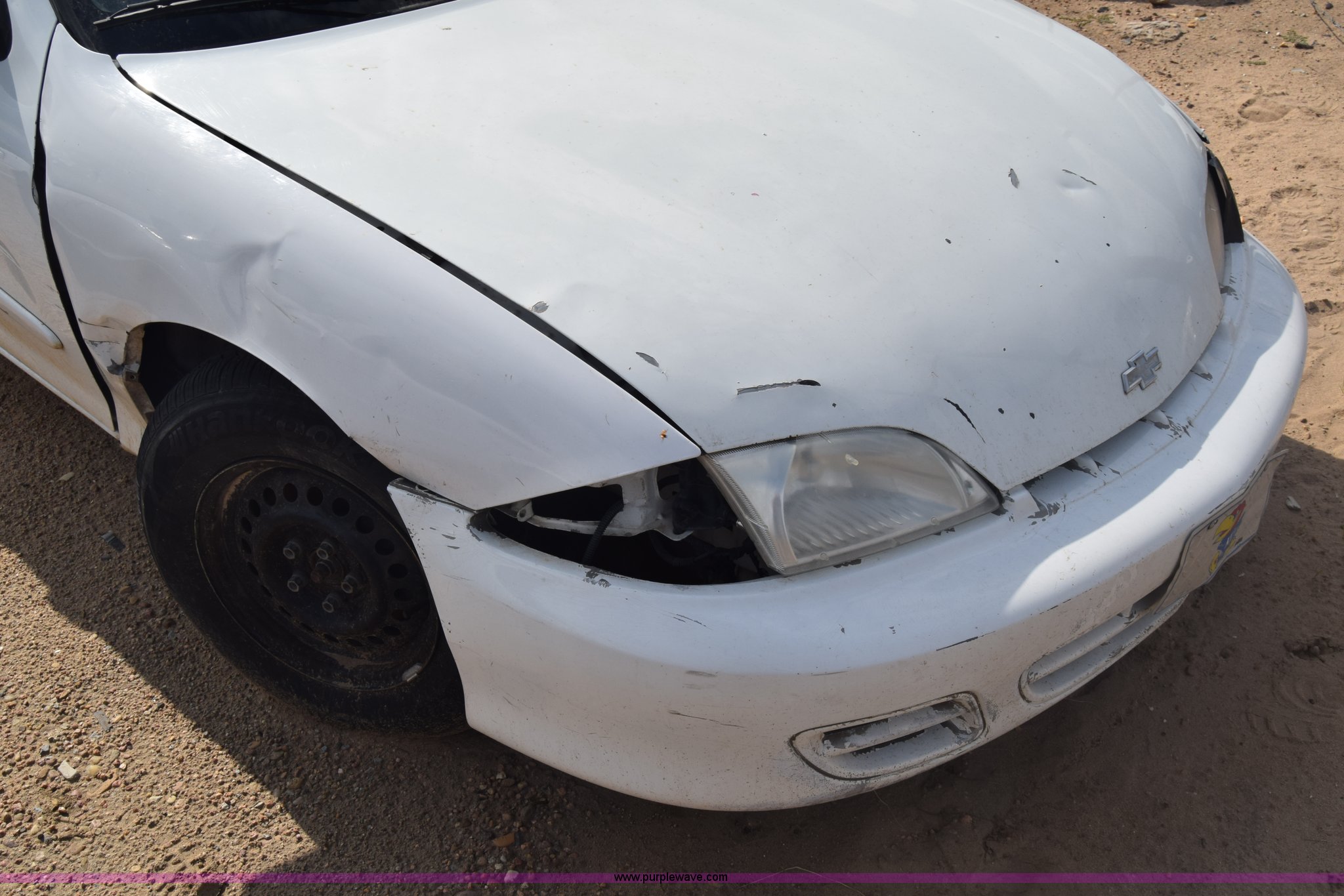 Purple Wave is selling a used Passenger Vehicle in Kansas. This item is a 2002 Chevrolet Cavalier with the following: Unknown miles on odometer, 2.2L L4 OHV 8V gas engine, Automatic transmission, AC and heat, Tilt, Cruise, AM/FM/CD, Manual windows and locks, Cloth interior, 205/70R14 tires, Interior/exterior cosmetic damage, Dents, Scratches, One tire off wheel, Passenger side body damage, Headlight damaged, Paint peeling, Case# 15C044686