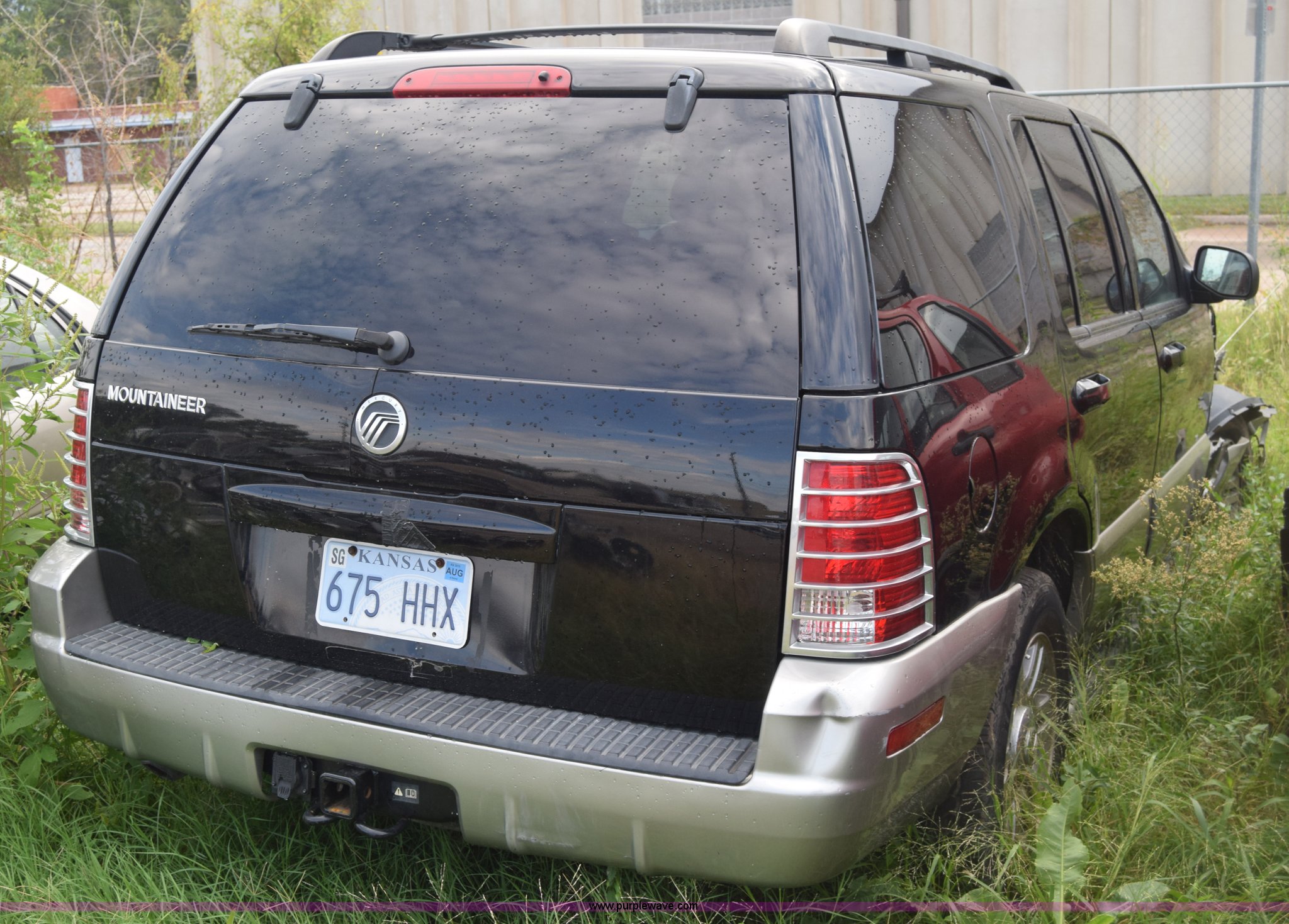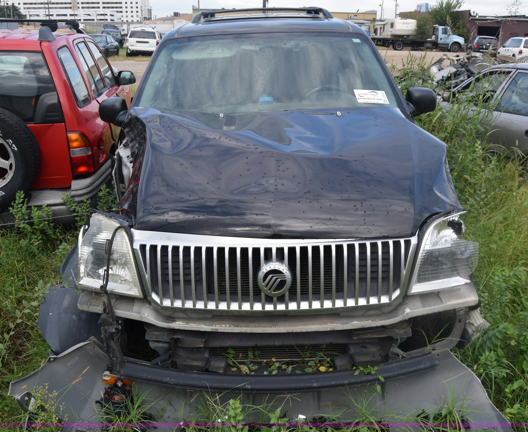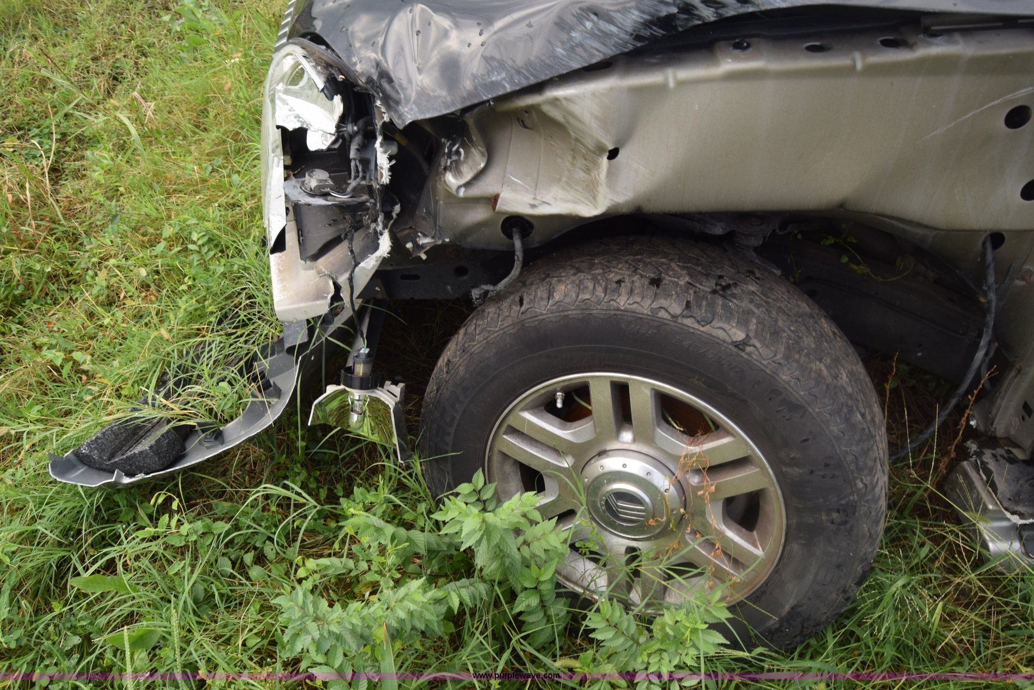 Purple Wave is selling a used Passenger Vehicle in Kansas. This item is a 2003 Mercury Mountaineer SUV with the following: Unknown miles on odometer, manual transmission, AC and heat, Tilt, Cruise, Power windows, locks, mirrors, and seats, Leather interior, Sunroof, 245/65R17 tires, Interior/exterior cosmetic damage, Dents, Paint scratched, Substantial front end damage, Wheels damaged, No radio, Doors locked, Case# 15C47965