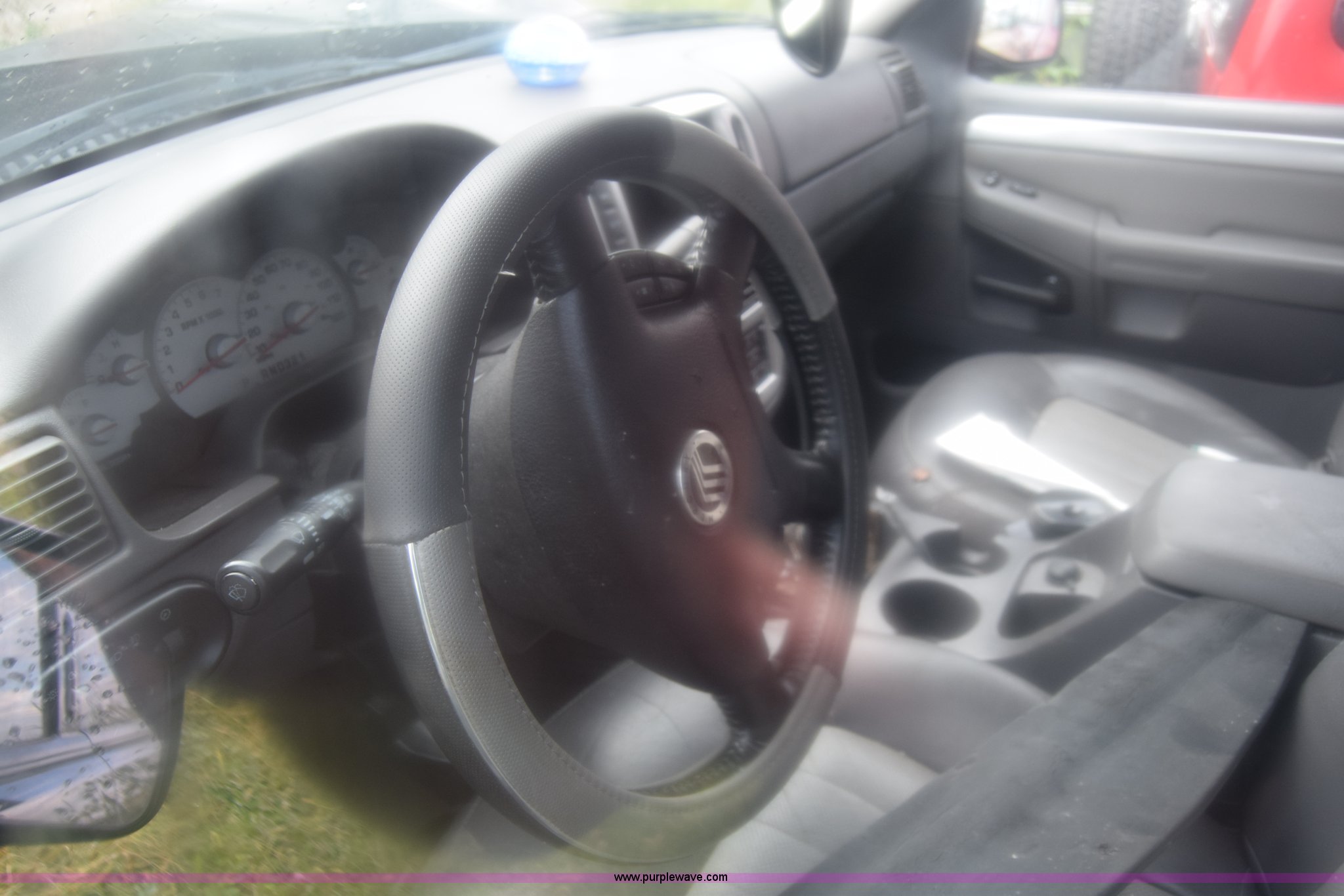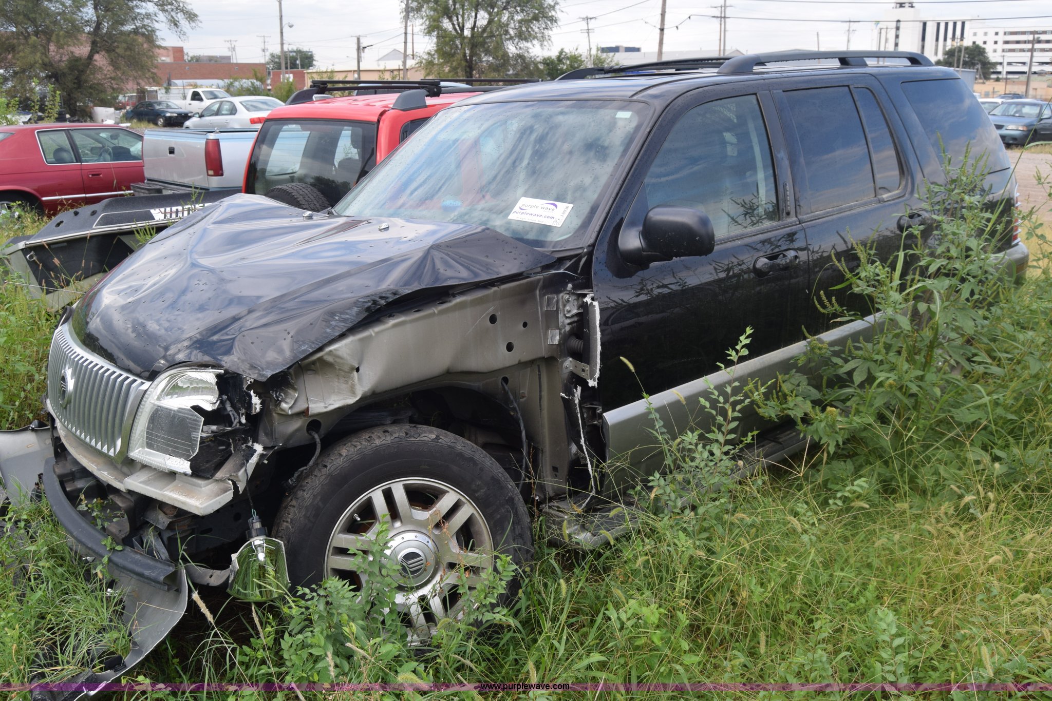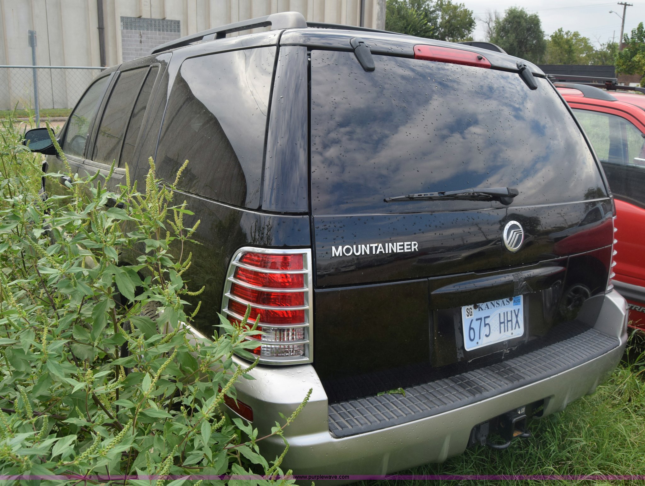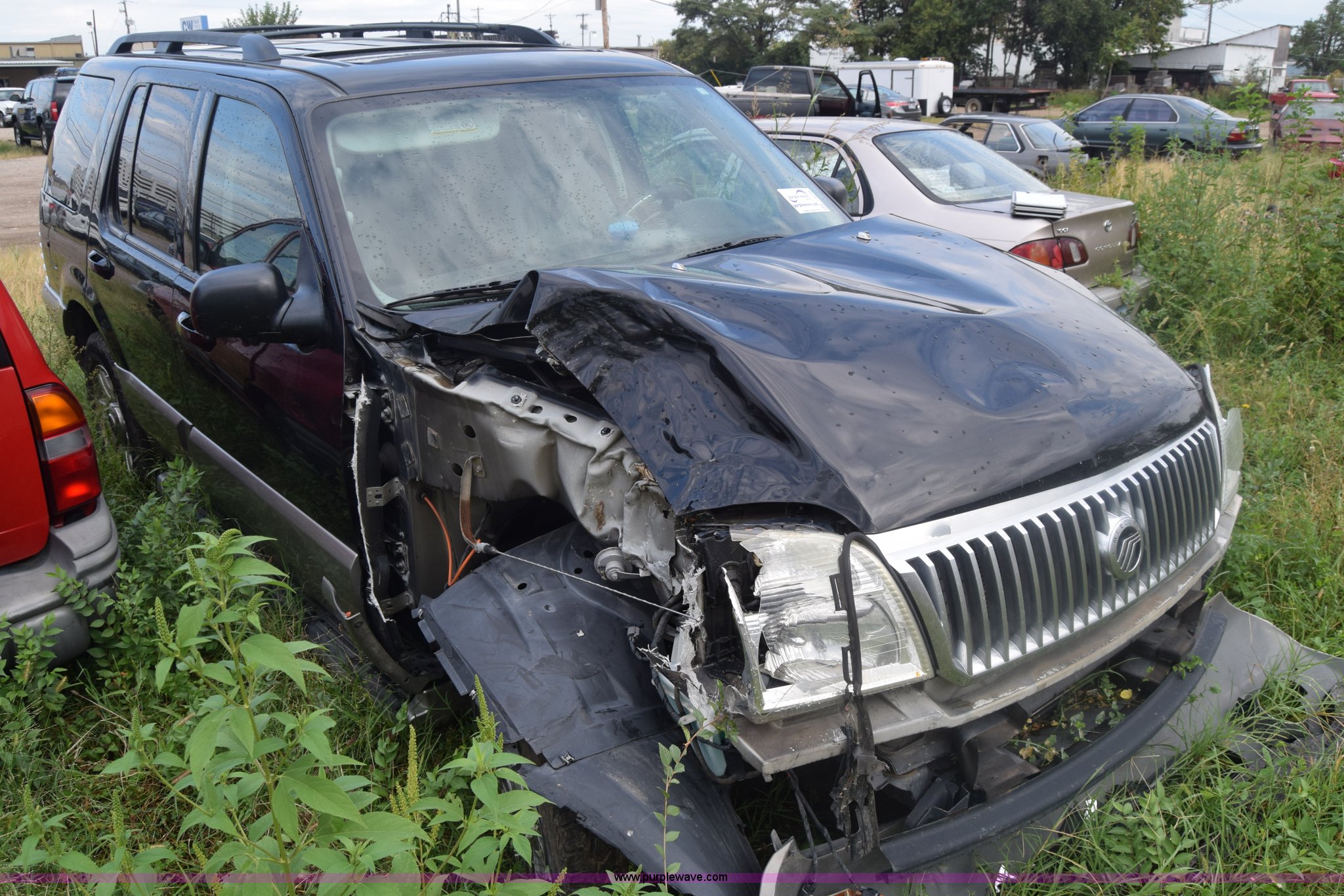 Purple Wave is selling a used Passenger Vehicle in Kansas. This item is a 2003 Mercury Mountaineer SUV with the following: Unknown miles on odometer, manual transmission, AC and heat, Tilt, Cruise, Power windows, locks, mirrors, and seats, Leather interior, Sunroof, 245/65R17 tires, Interior/exterior cosmetic damage, Dents, Paint scratched, Substantial front end damage, Wheels damaged, No radio, Doors locked, Case# 15C47965