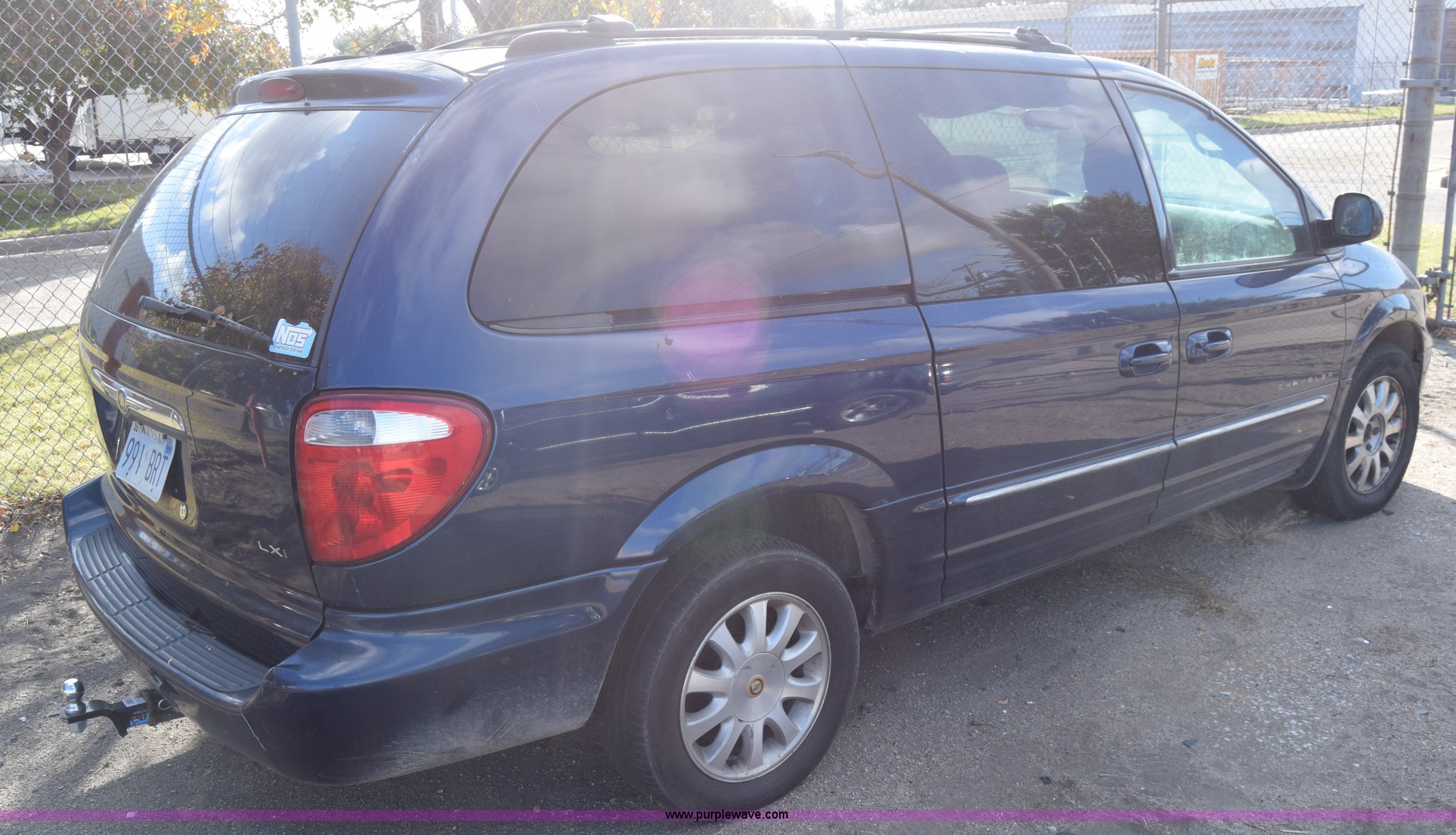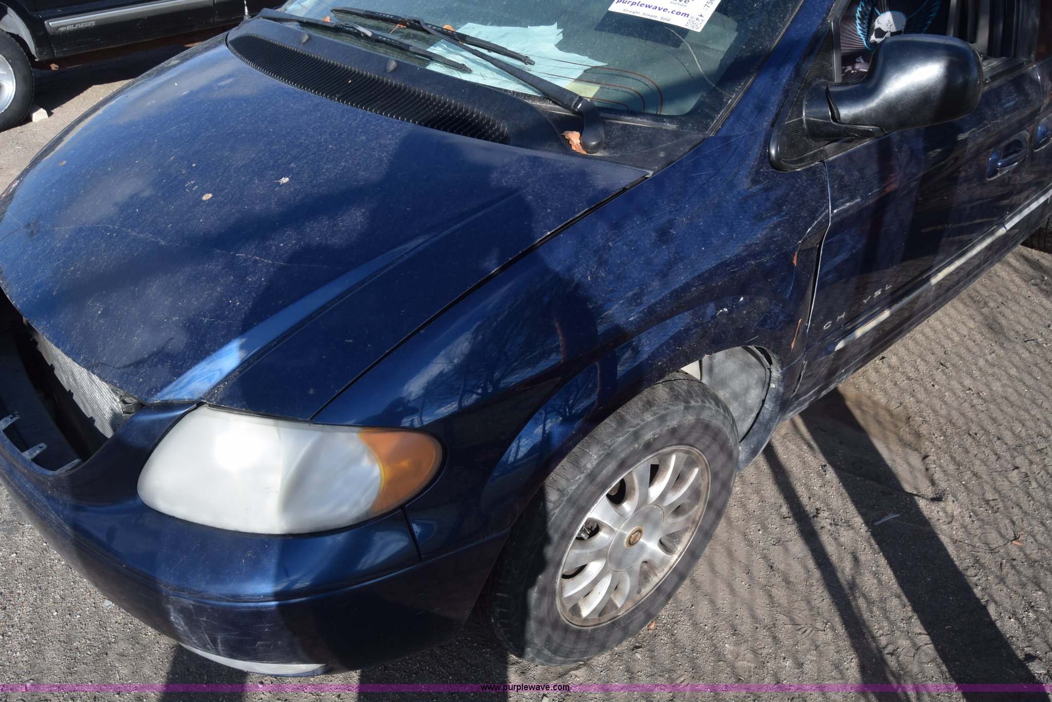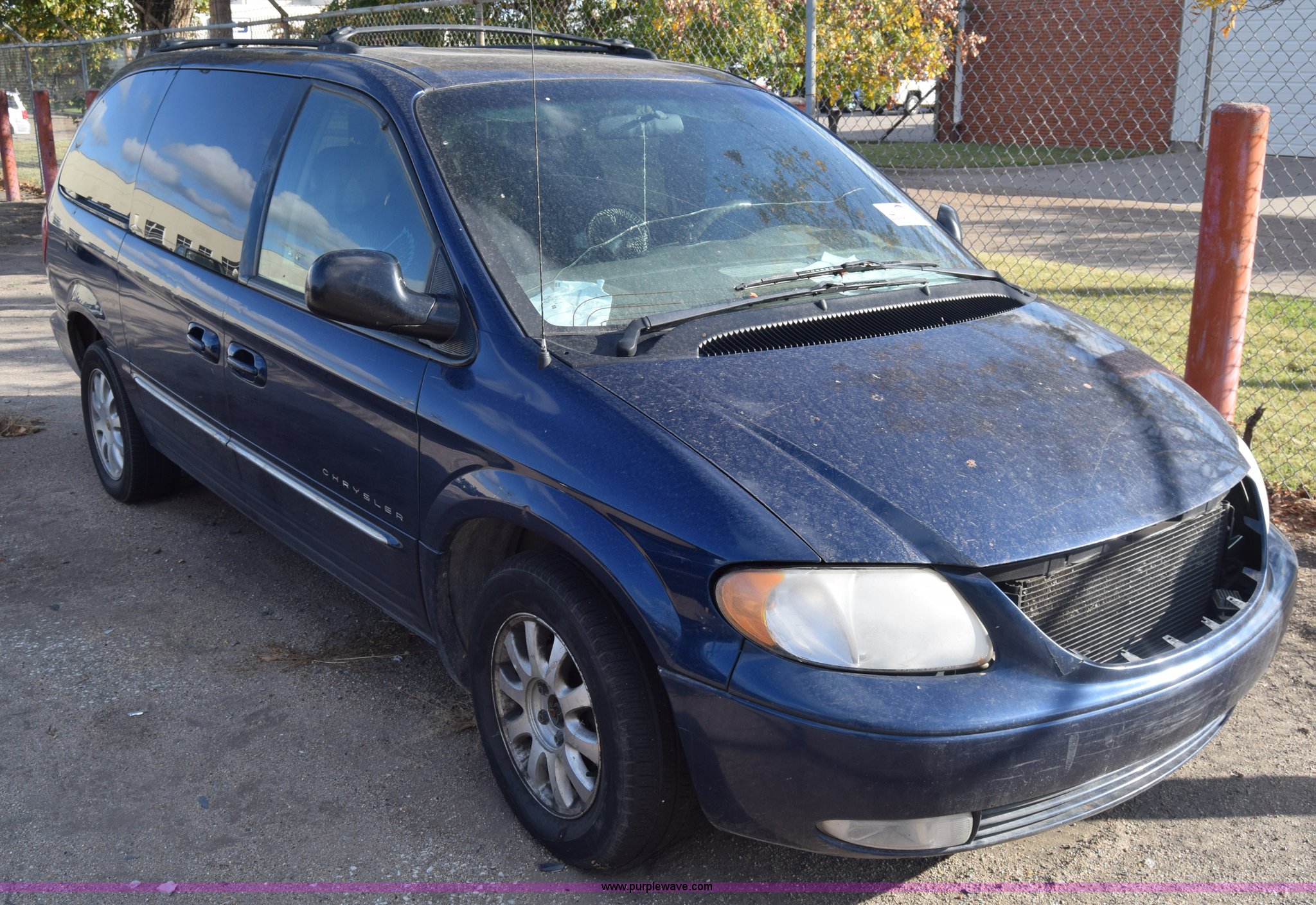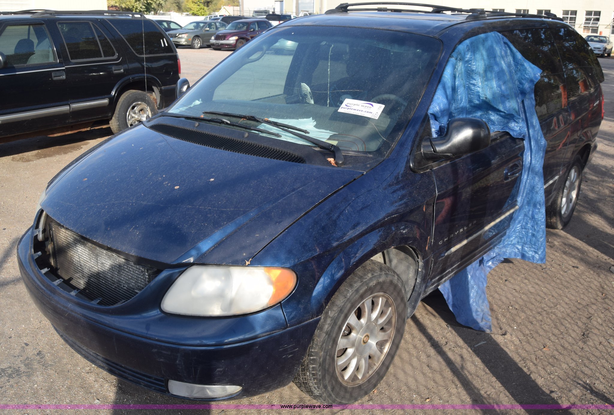 Purple Wave is selling a used Passenger Vehicle in Kansas. This item is a 2001 Chrysler Town & Country with the following: Unknown miles on odometer, 3.8L V6 gas engine, Automatic transmission, AC and heat, Tilt, Cruise, AM/FM/CD, Power windows, locks, mirrors, and seats, Leather interior, Receiver hitch, Interior/exterior cosmetic damage, Windshield cracked, Taillight broken, Case# 15C053903