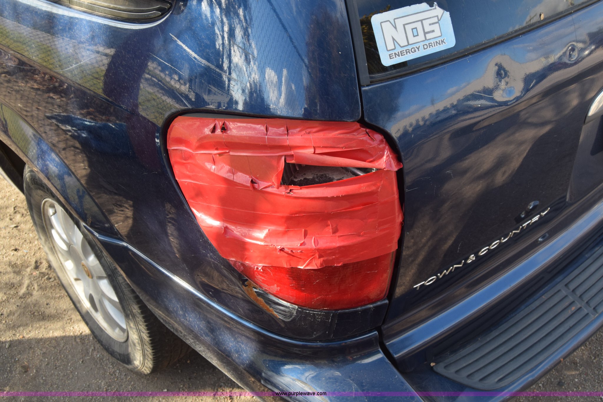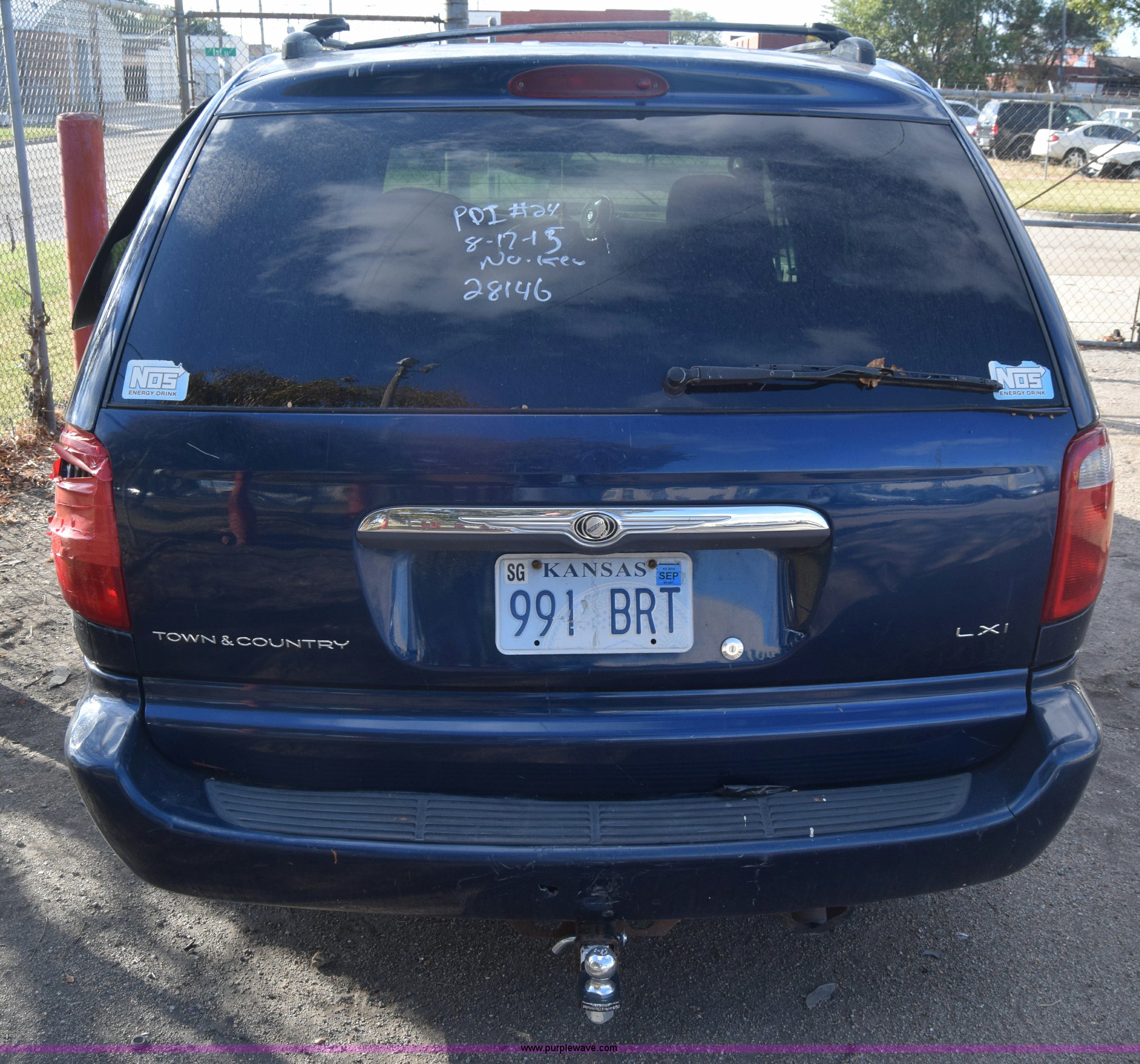 2001 Chrysler Town & Country. Unknown miles on odometer, 3.8L V6 gas engine, Automatic transmission, AC and heat, Tilt, Cruise, AM/FM/CD, Power windows, locks, mirrors, and seats, Leather interior, Receiver hitch, Interior/exterior cosmetic damage, Windshield cracked, Taillight broken, Case# 15C053903. Vehicle is abandoned. Condition and history are unknown. No additional information is available. Vehicle does not have keys unless notated otherwise in the item listing.. View City Of Wichita Terms for title acquisition and item removal requirements.. 2C8GP54L41R345503. Bud Roat Towing. 310 N Handley. Wichita, KS 67203
