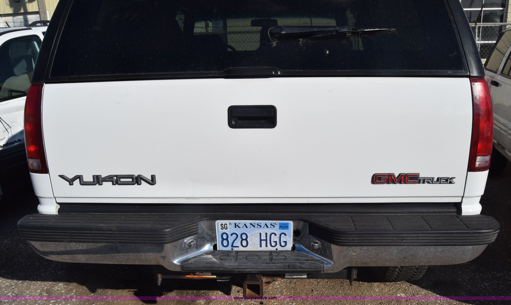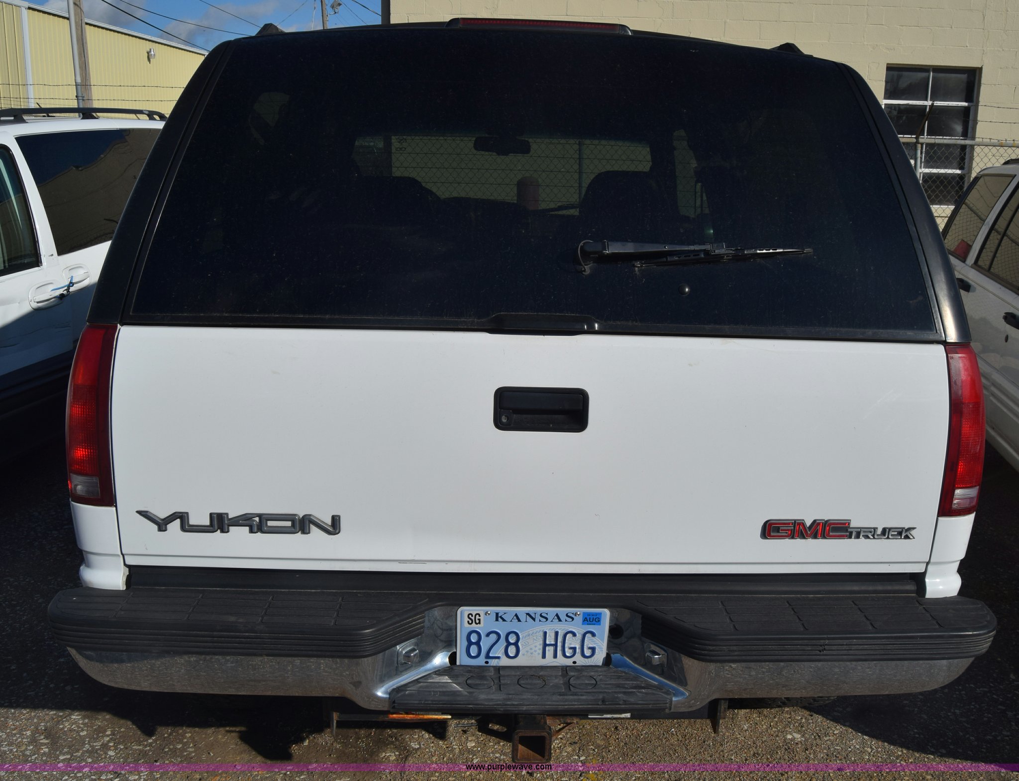 Purple Wave is selling a used Passenger Vehicle in Kansas. This item is a 1995 GMC Yukon SUV with the following: Unknown miles on odometer, 5.7L V8 gas engine, Automatic transmission, AC and heat, Tilt, Cruise, Power windows, locks, and mirrors, Leather interior, Front tow hook, Receiver hitch, 265/65R16 tires, Interior/exterior cosmetic damage, Dents, Scratches, Doors locked, No keys, Case# 15C050554