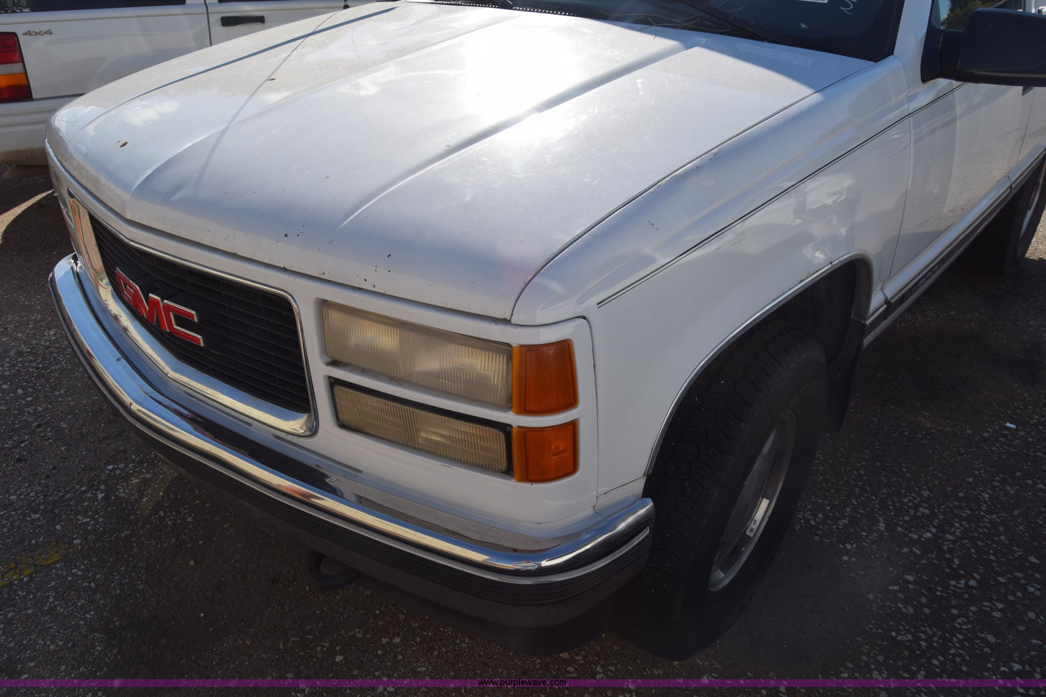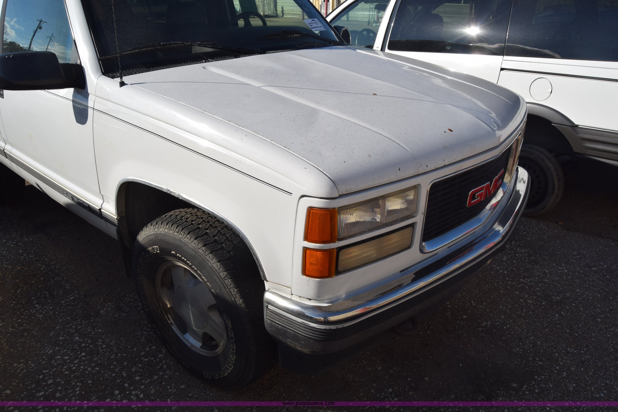 1995 GMC Yukon SUV. Unknown miles on odometer, 5.7L V8 gas engine, Automatic transmission, AC and heat, Tilt, Cruise, Power windows, locks, and mirrors, Leather interior, Front tow hook, Receiver hitch, 265/65R16 tires, Interior/exterior cosmetic damage, Dents, Scratches, Doors locked, No keys, Case# 15C050554. Vehicle is abandoned. Condition and history are unknown. No additional information is available. Vehicle does not have keys unless notated otherwise in the item listing.. View City Of Wichita Terms for title acquisition and item removal requirements.. 3GKEK18K7SG501997. Bud Roat Towing. 310 N Handley. Wichita, KS 67203