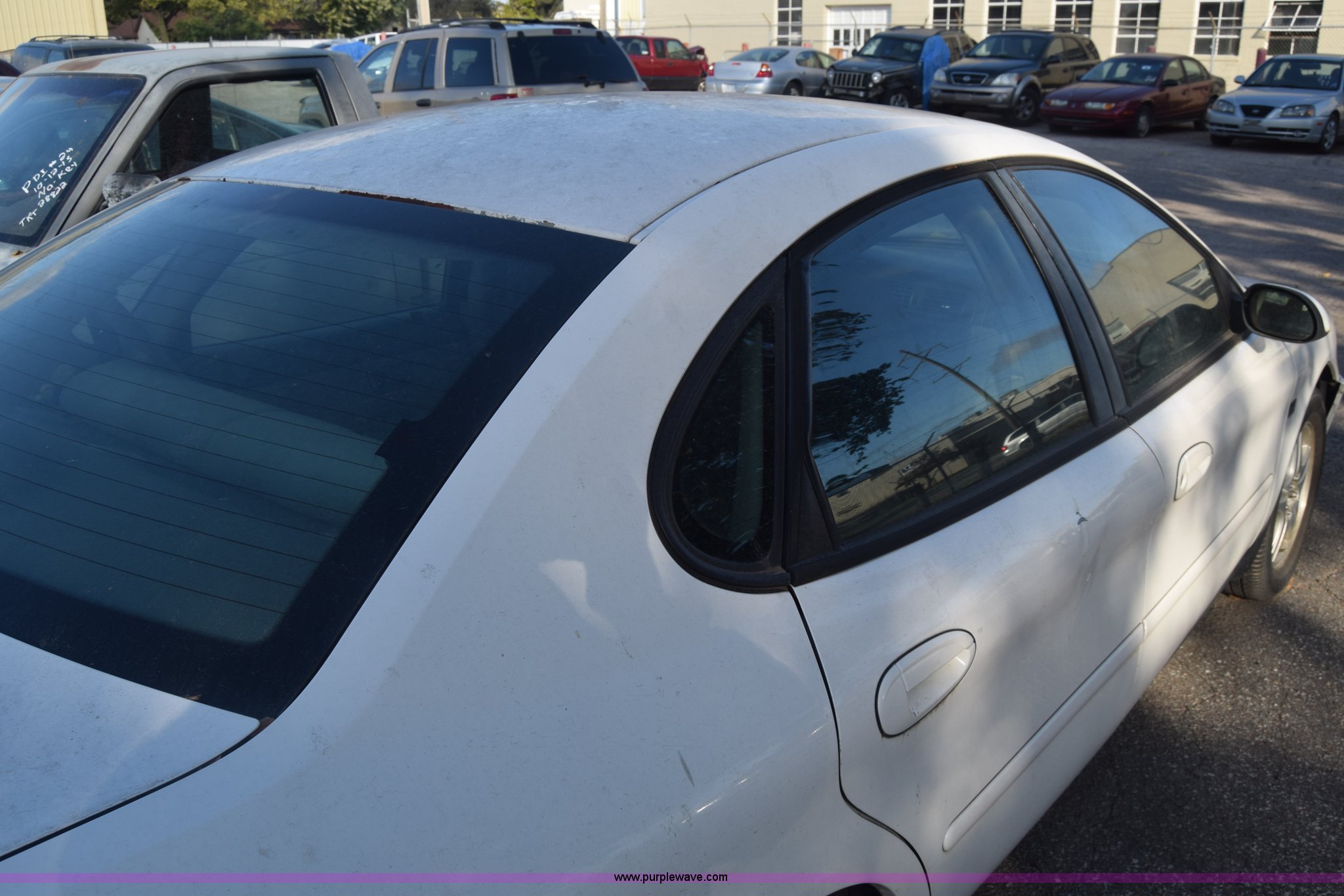 Purple Wave is selling a used Passenger Vehicle in Kansas. This item is a 2000 Ford Taurus with the following: Unknown miles on odometer, 3.0L V6 gas engine, Automatic transmission, AC and heat, Tilt, Cruise, AM/FM/CD, Power windows, locks, and mirrors, Cloth interior, 215/60R16 tires, Interior/exterior cosmetic damage, Dents, Scratches, Doors locked, No keys, Paint peeling, Case# 15C052982