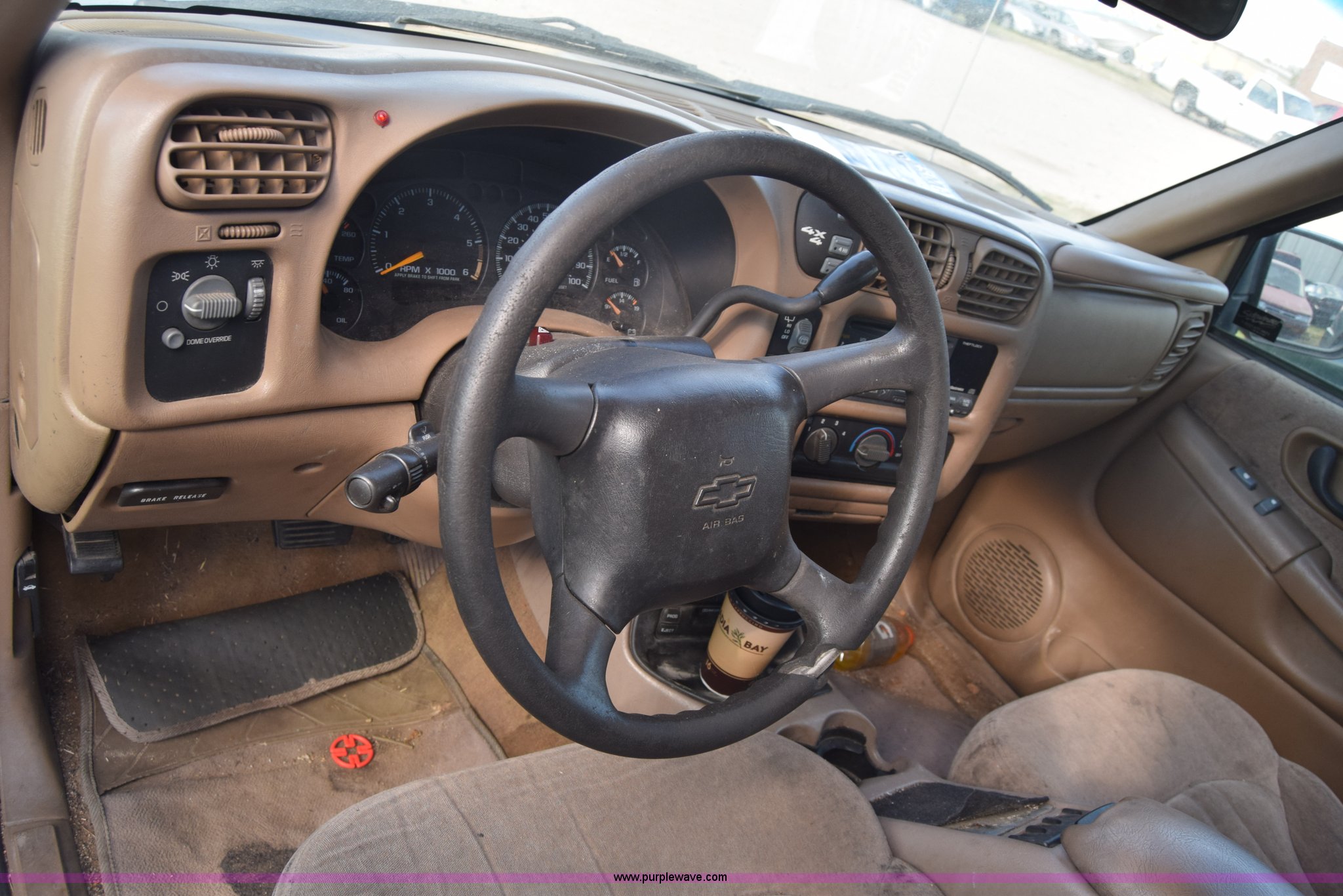 2000 Chevrolet Blazer SUV. Unknown miles on odometer, 4.3L V6 gas engine, Automatic transmission, AC and heat, Tilt, Cruise, AM/FM/CD, Power windows and mirrors, Cloth interior, Receiver hitch, 235/75R15 tires, Interior/exterior cosmetic damage, Dents, Scratches, Case# 15C50920. Vehicle is abandoned. Condition and history are unknown. No additional information is available. Vehicle does not have keys unless notated otherwise in the item listing.. View City Of Wichita Terms for title acquisition and item removal requirements.. 1GNDT13W4Y2100852. Interstate Wrecker Service. 1028 North Mosley. Wichita, KS 67214