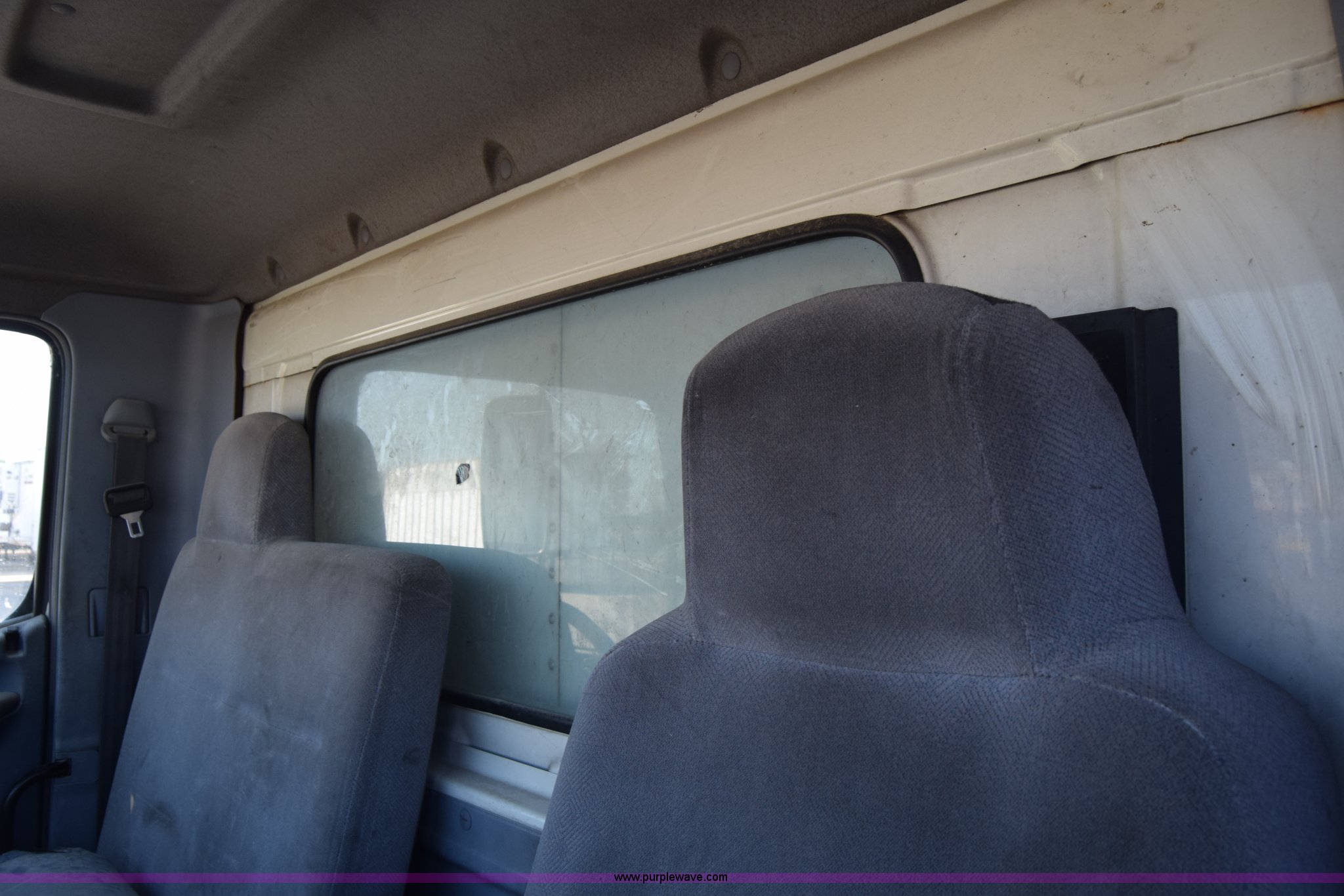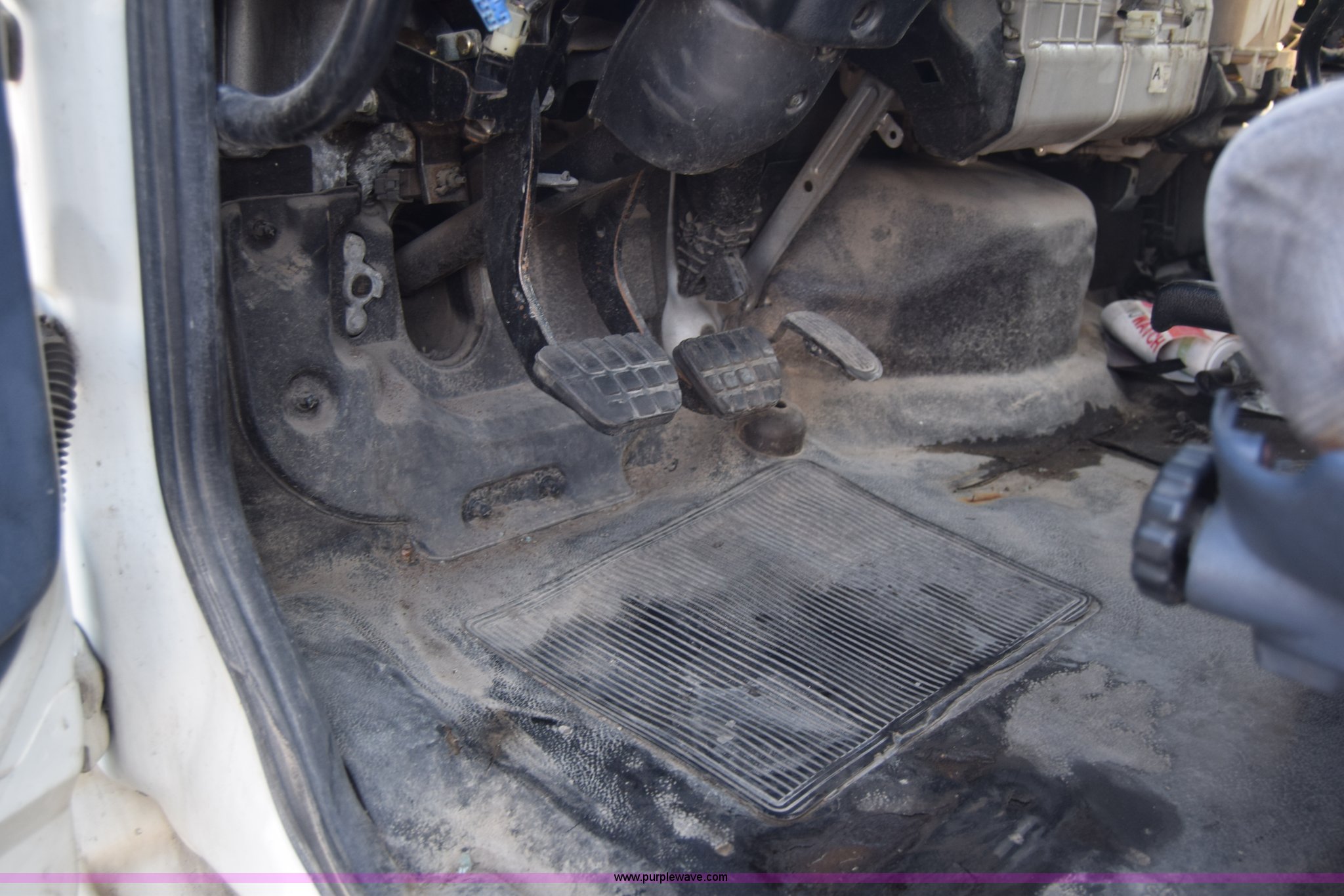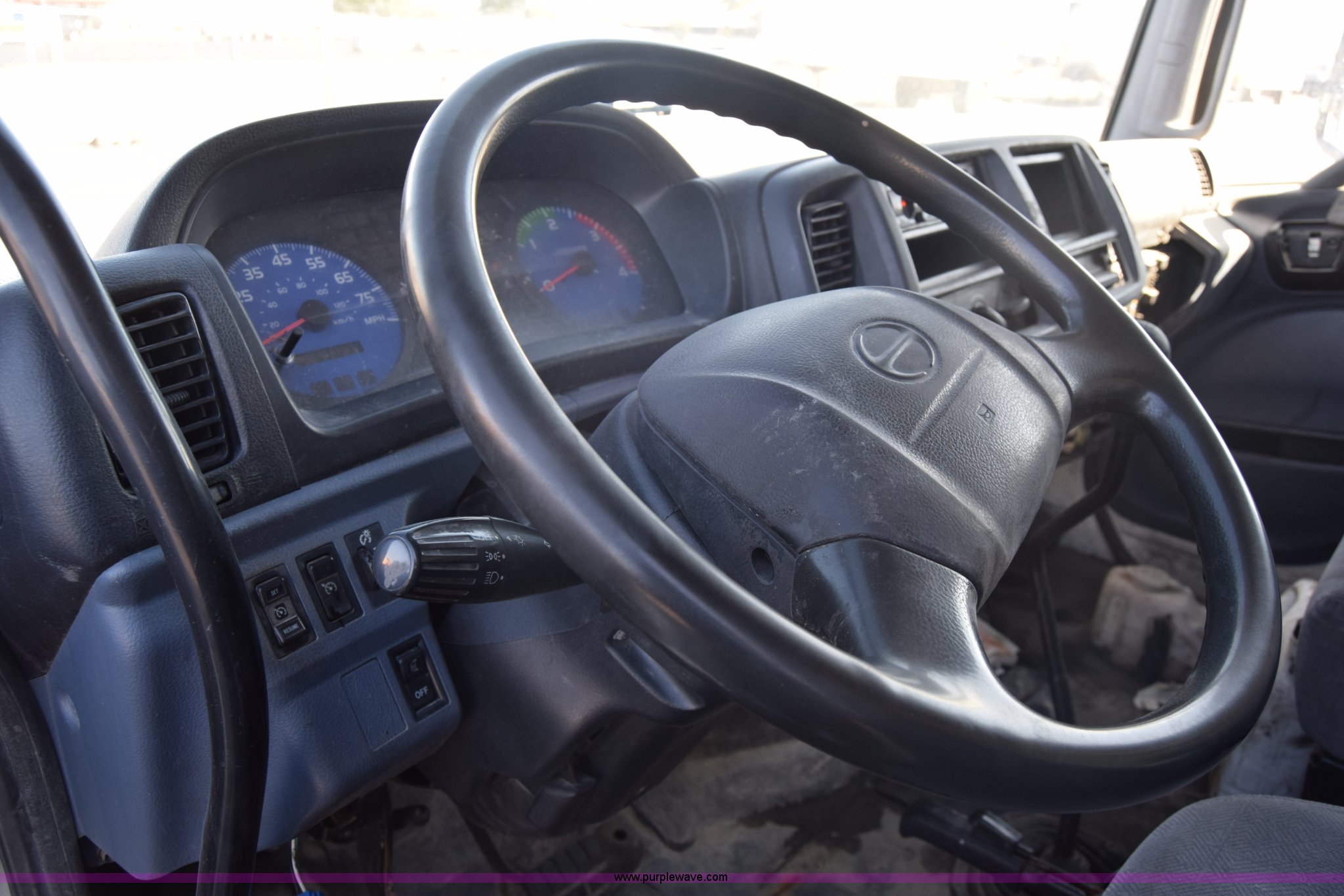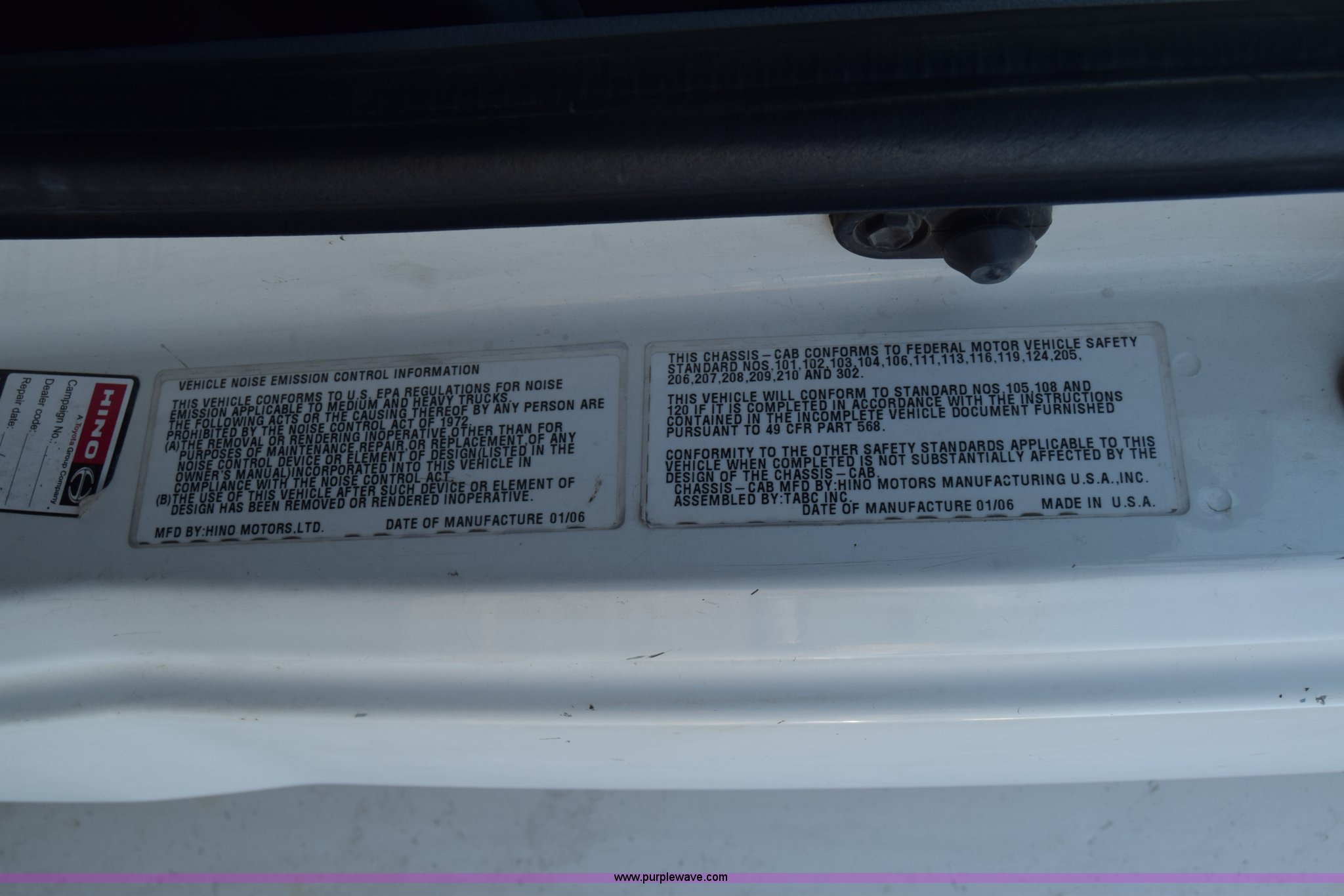 Purple Wave is selling a used Box Truck in Kansas. This item is a 2006 Hino 268 box truck with the following: 517,277 miles on odometer, Hino J08E 7.6L L6 diesel engine, Six speed manual transmission, Single axle, AC and heat, Cruise, AM/FM, Power windows, Suspension seat, Alfred box, 24'L x 102"W, Wood floor, Roll up rear door, Will not roll down all the way, Dock bumper, Sliding ramp, Dual fuel tanks, Spring suspension, Hydraulic brakes, 11R22.5 tires, GVWR 25,950 lbs, Interior/exterior cosmetic damage, Hood damage, Brakes are weak, Driver's side window will not roll up