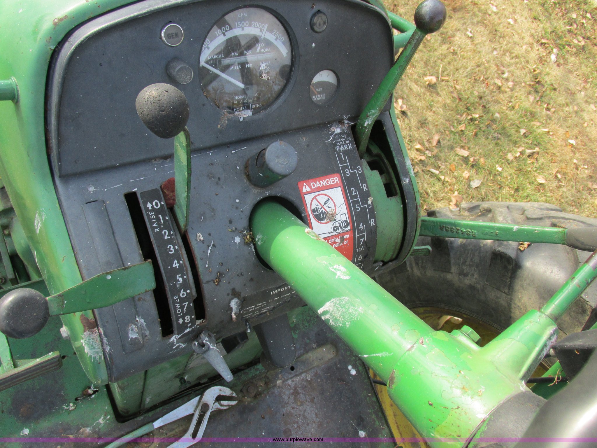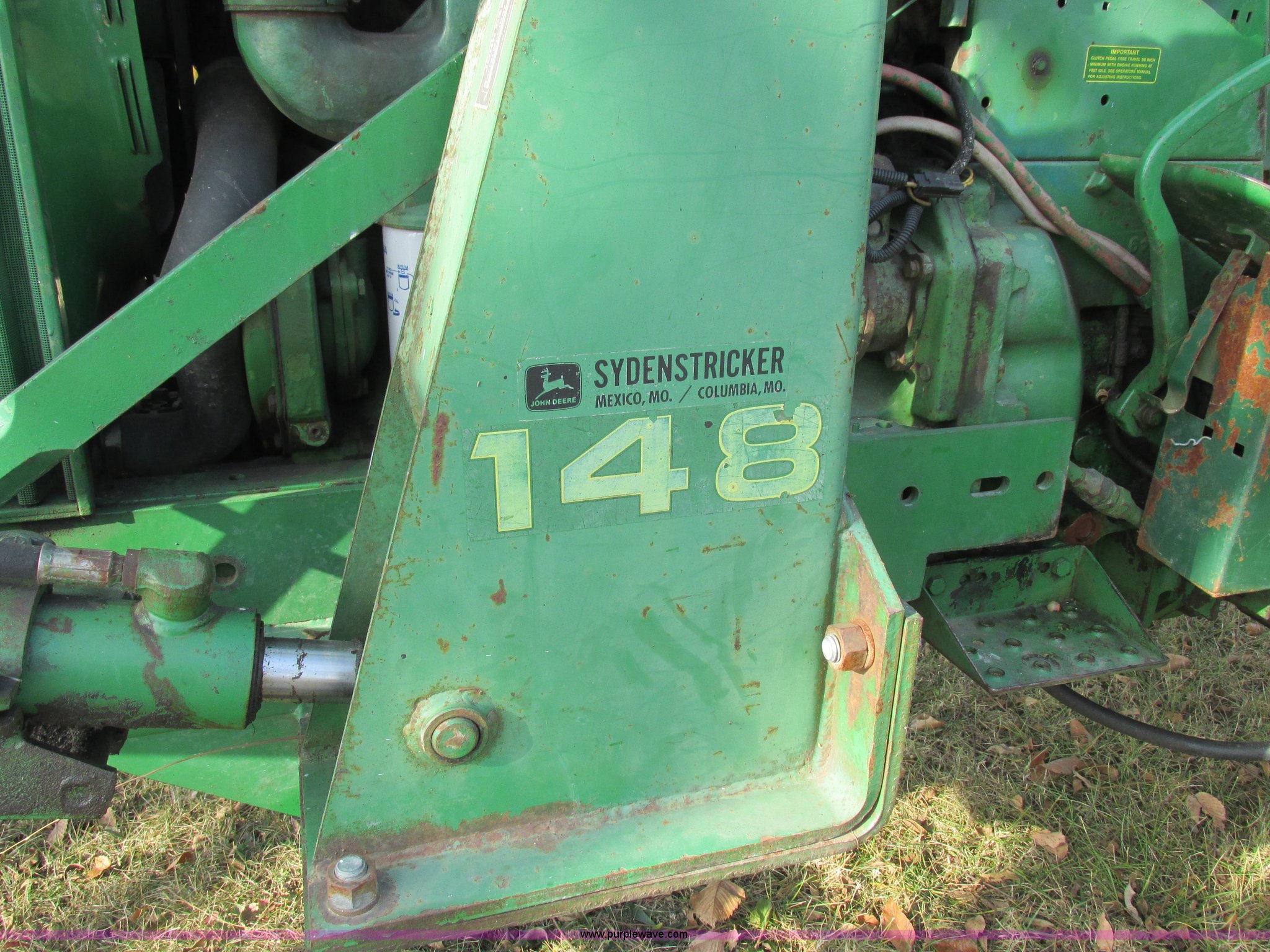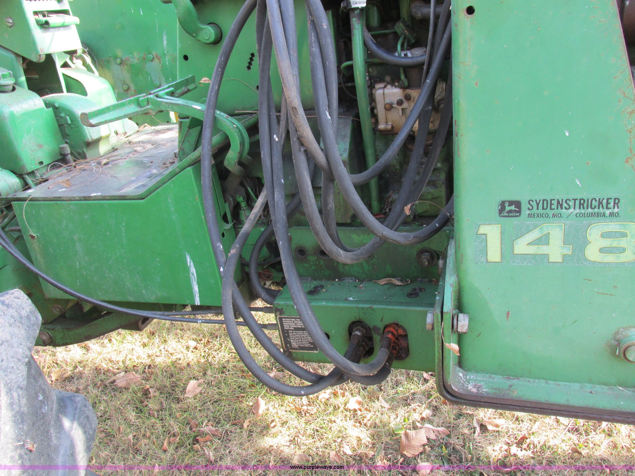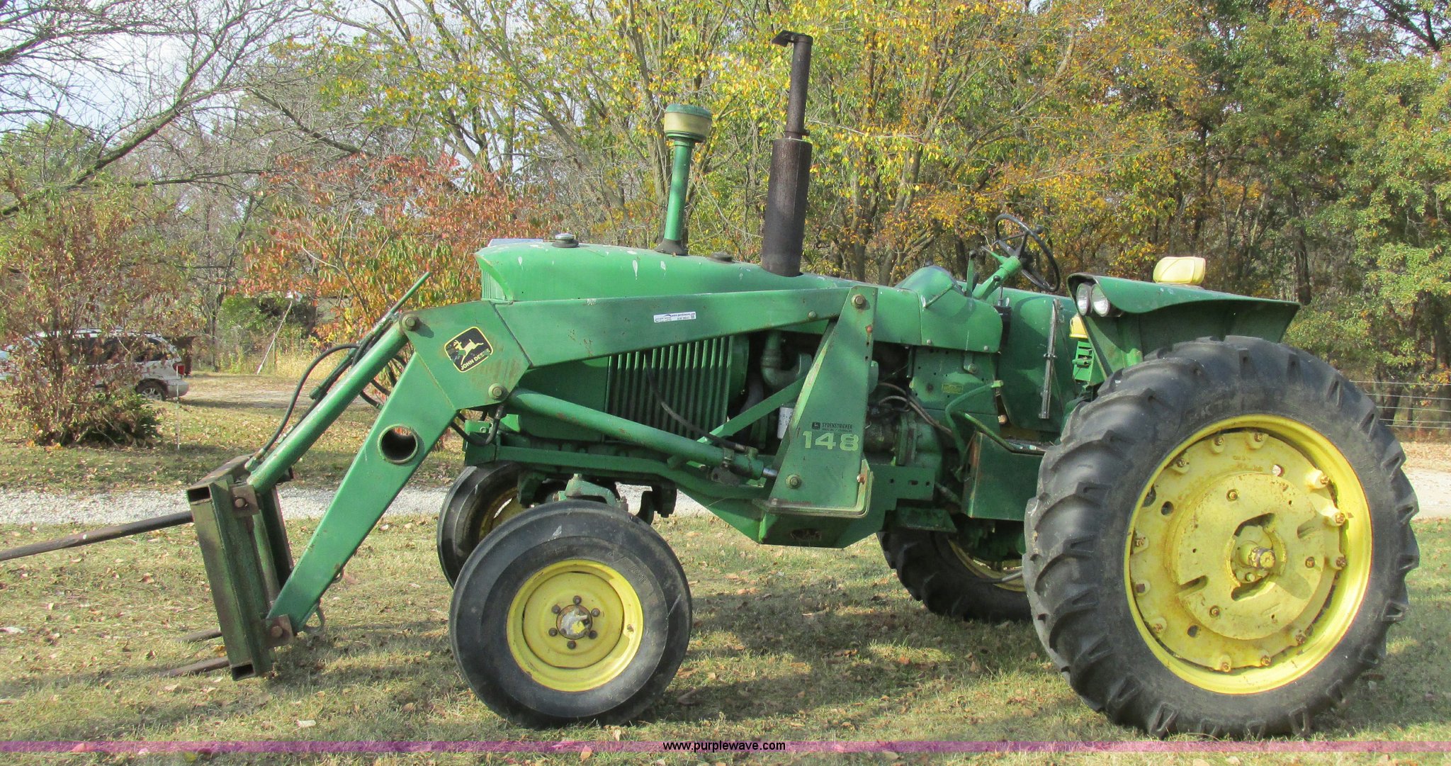 Purple Wave is selling a used Tractor in Missouri. This item is a John Deere 3020 tractor with the following: 2,472 hours on meter, Four cylinder diesel engine, 8F-5R gears, John Deere 148 loader, Bale spear, Joystick controls, Serial T113R/116112R, Three point, 540 PTO, 1000 PTO quick change, Auxiliary hydraulics, (2) wheel weights, 7.50-16 front tires, 15.5-38 rear tires, Serial W00148X050066