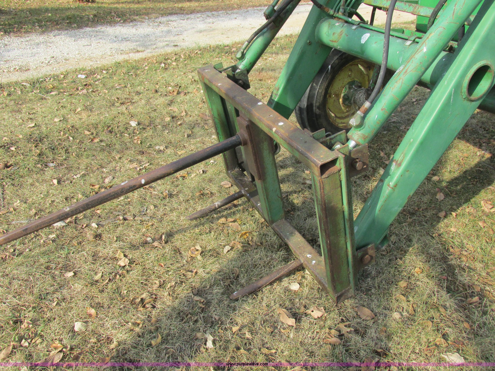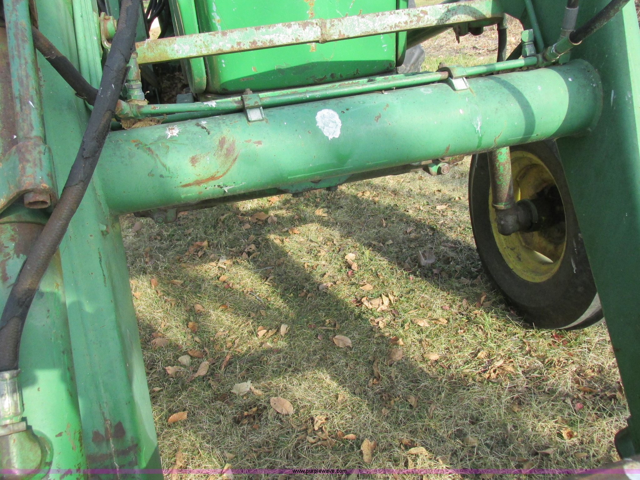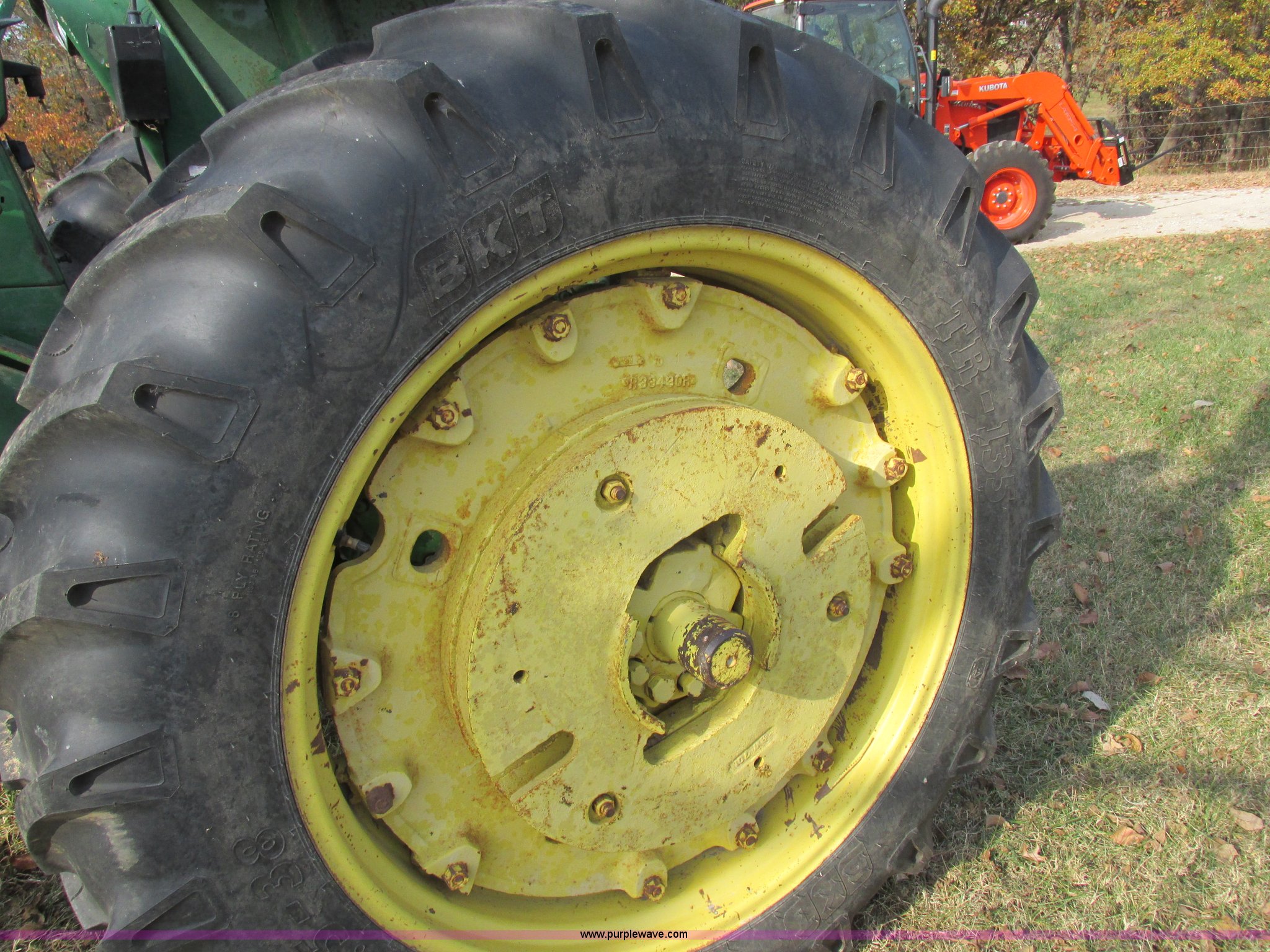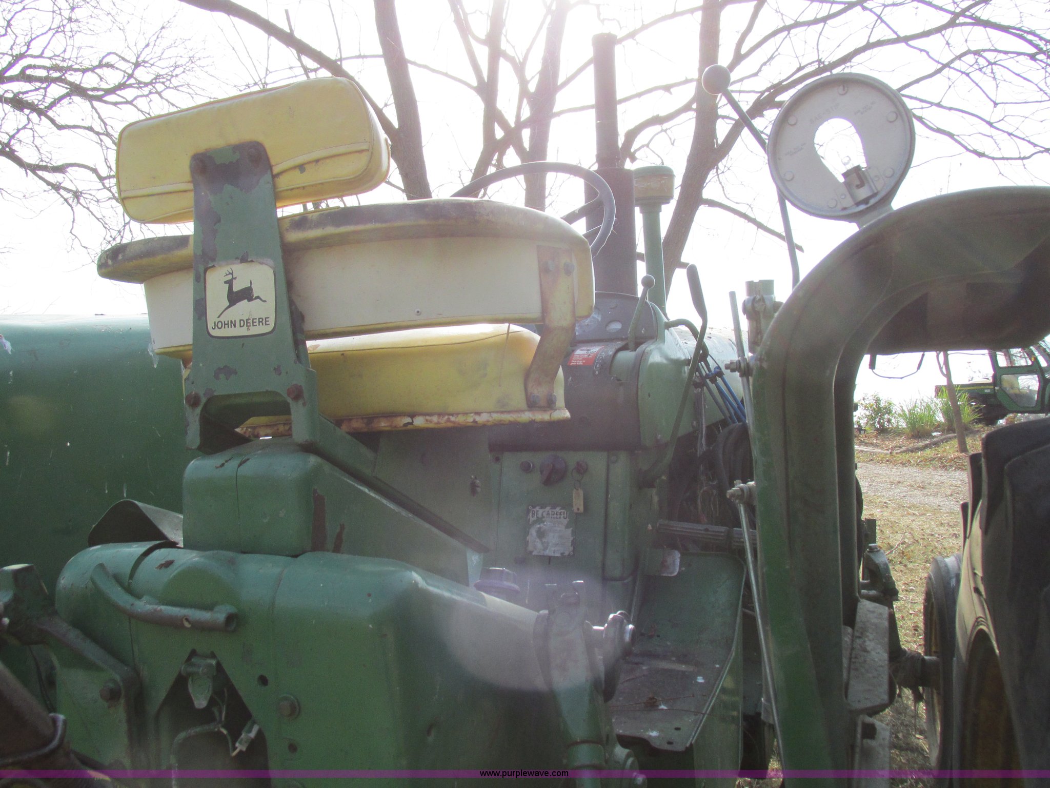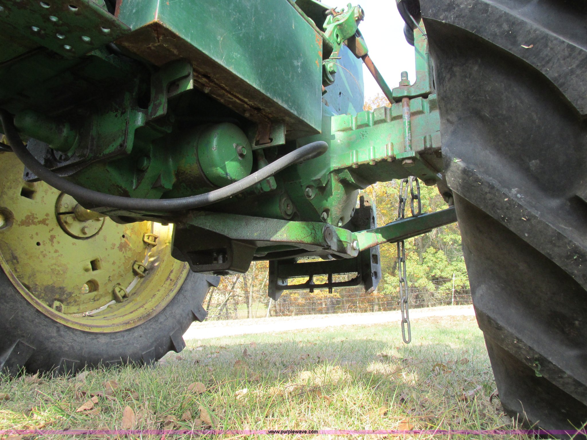 Purple Wave is selling a used Tractor in Missouri. This item is a John Deere 3020 tractor with the following: 2,472 hours on meter, Four cylinder diesel engine, 8F-5R gears, John Deere 148 loader, Bale spear, Joystick controls, Serial T113R/116112R, Three point, 540 PTO, 1000 PTO quick change, Auxiliary hydraulics, (2) wheel weights, 7.50-16 front tires, 15.5-38 rear tires, Serial W00148X050066