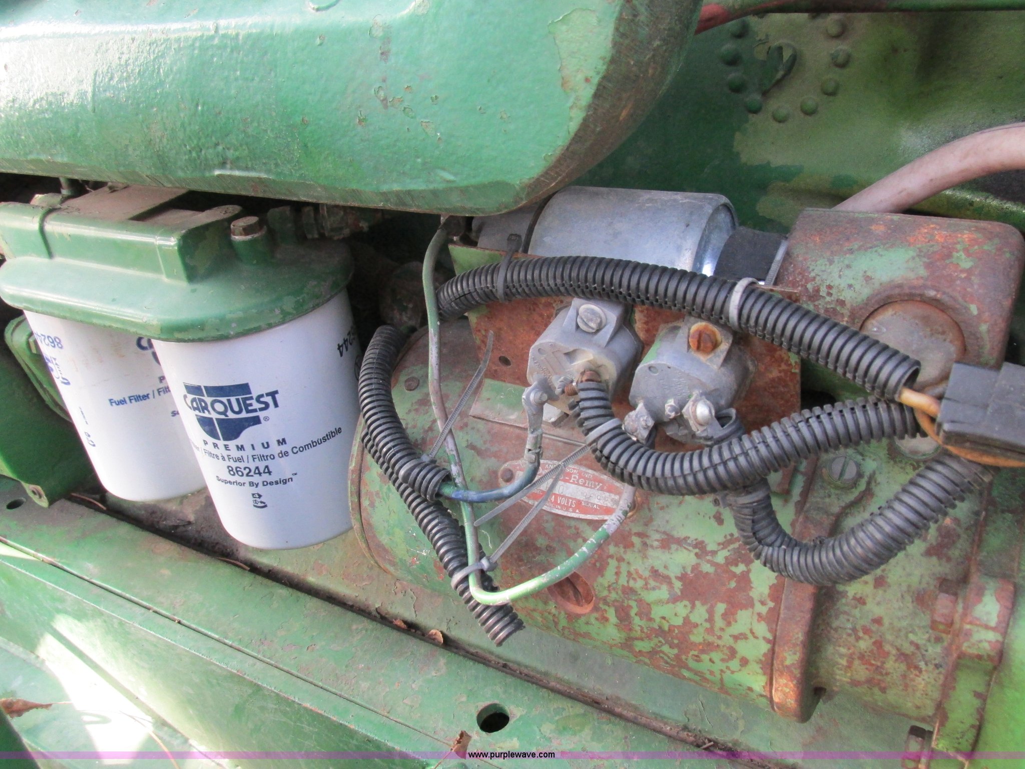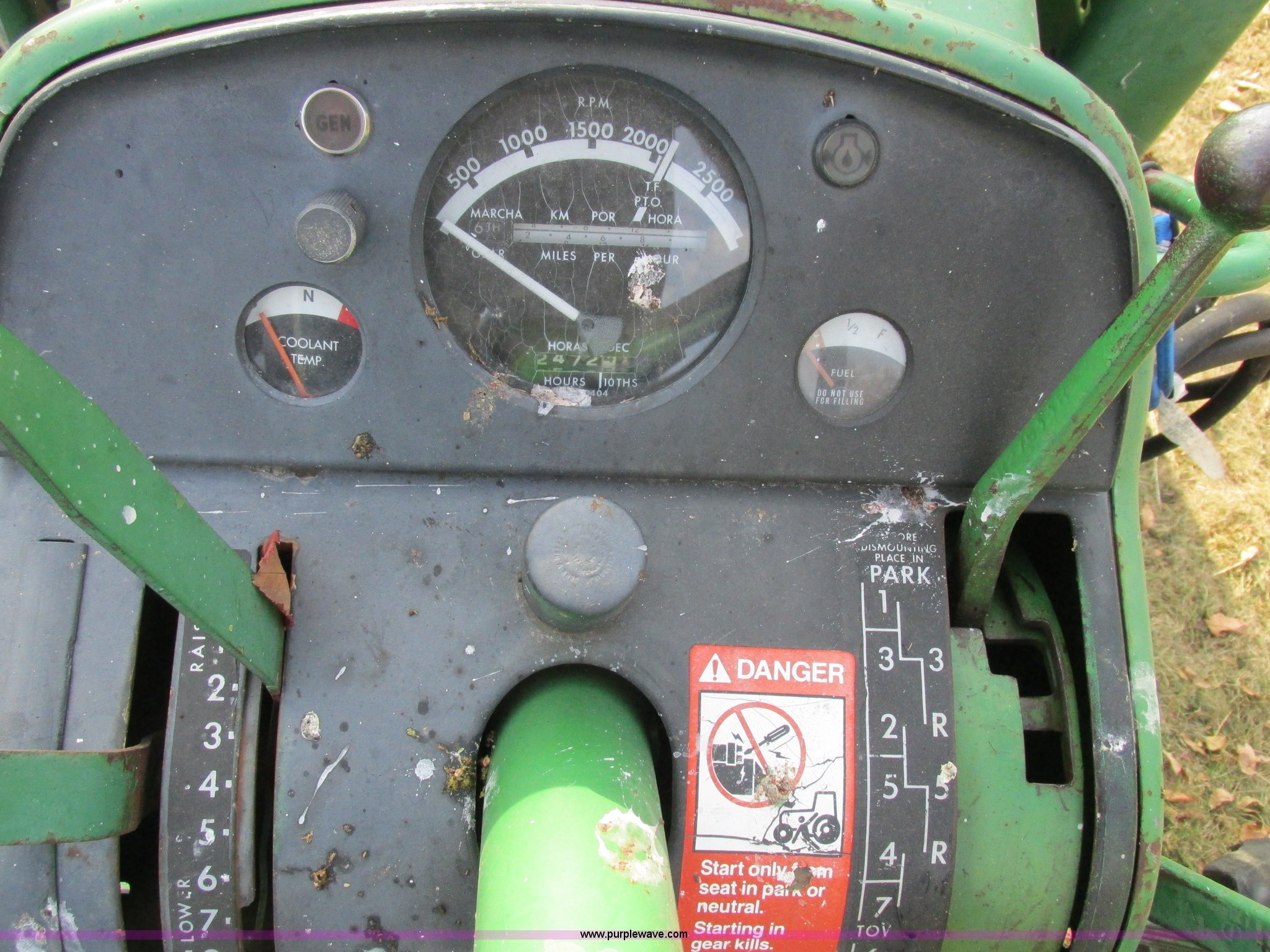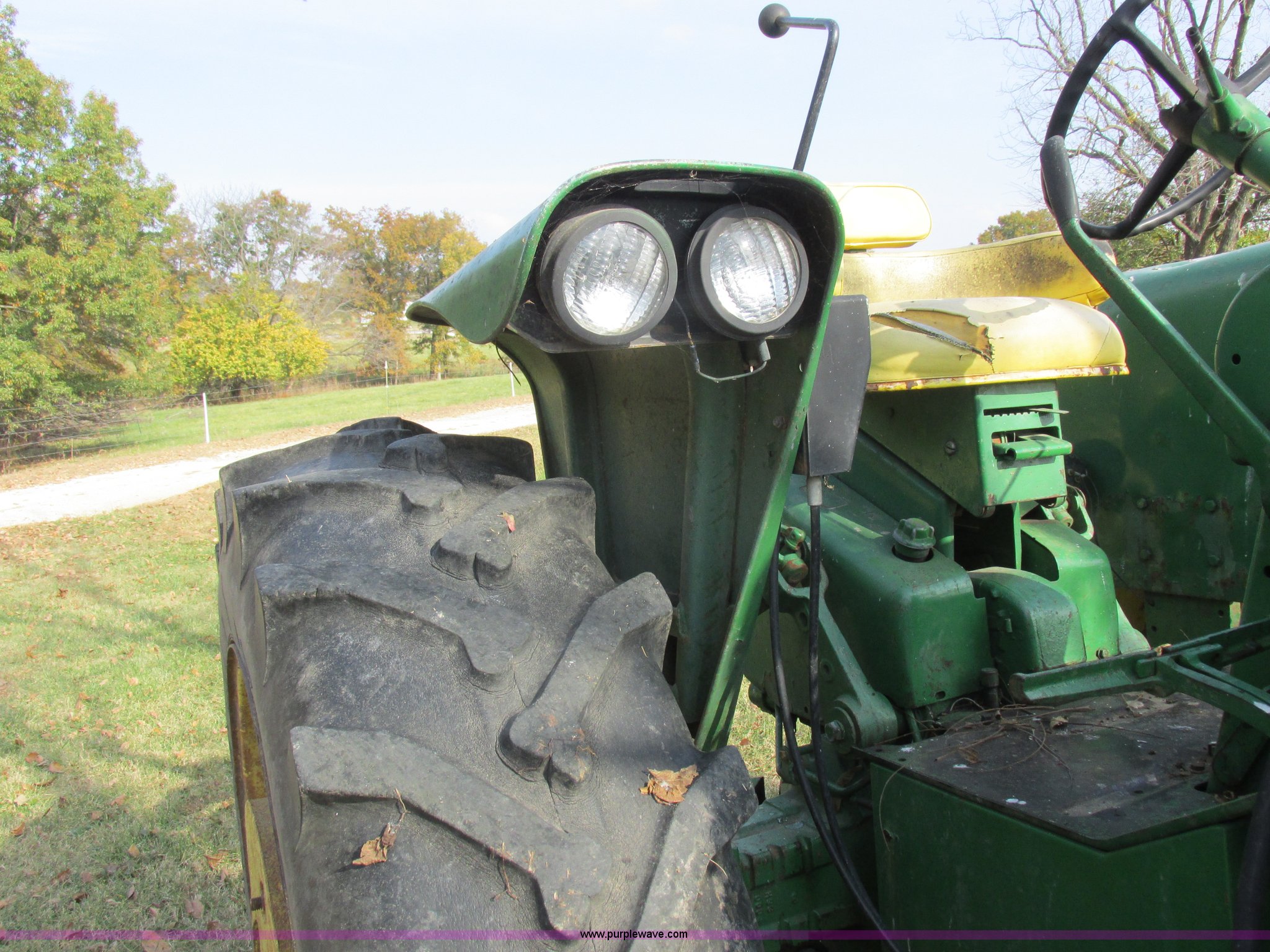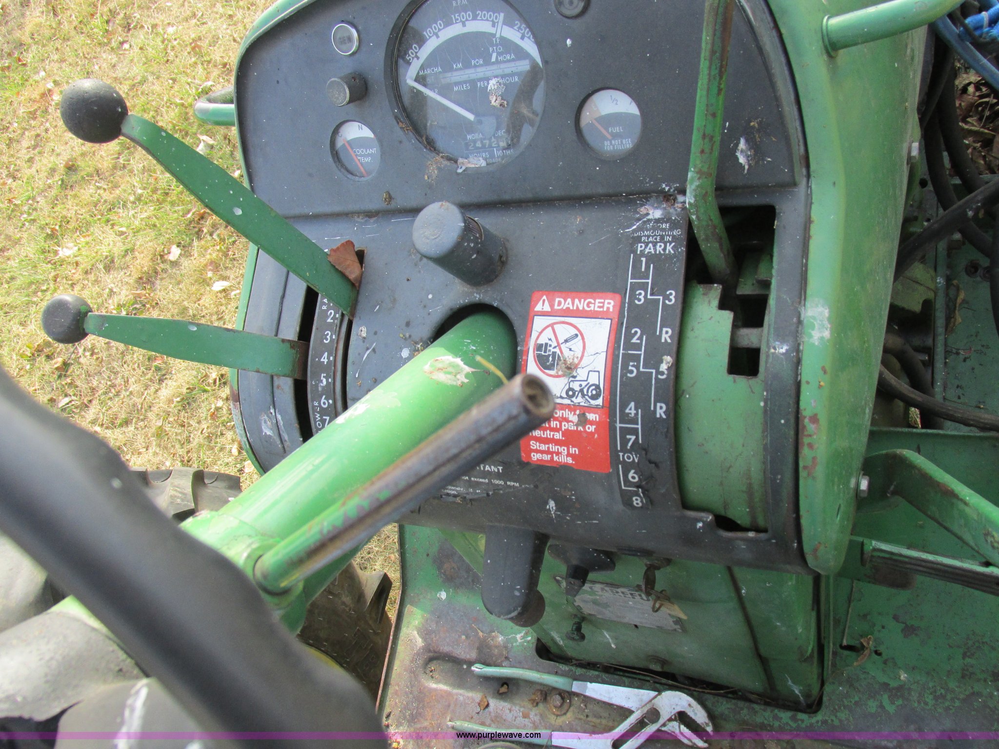 Purple Wave is selling a used Tractor in Missouri. This item is a John Deere 3020 tractor with the following: 2,472 hours on meter, Four cylinder diesel engine, 8F-5R gears, John Deere 148 loader, Bale spear, Joystick controls, Serial T113R/116112R, Three point, 540 PTO, 1000 PTO quick change, Auxiliary hydraulics, (2) wheel weights, 7.50-16 front tires, 15.5-38 rear tires, Serial W00148X050066