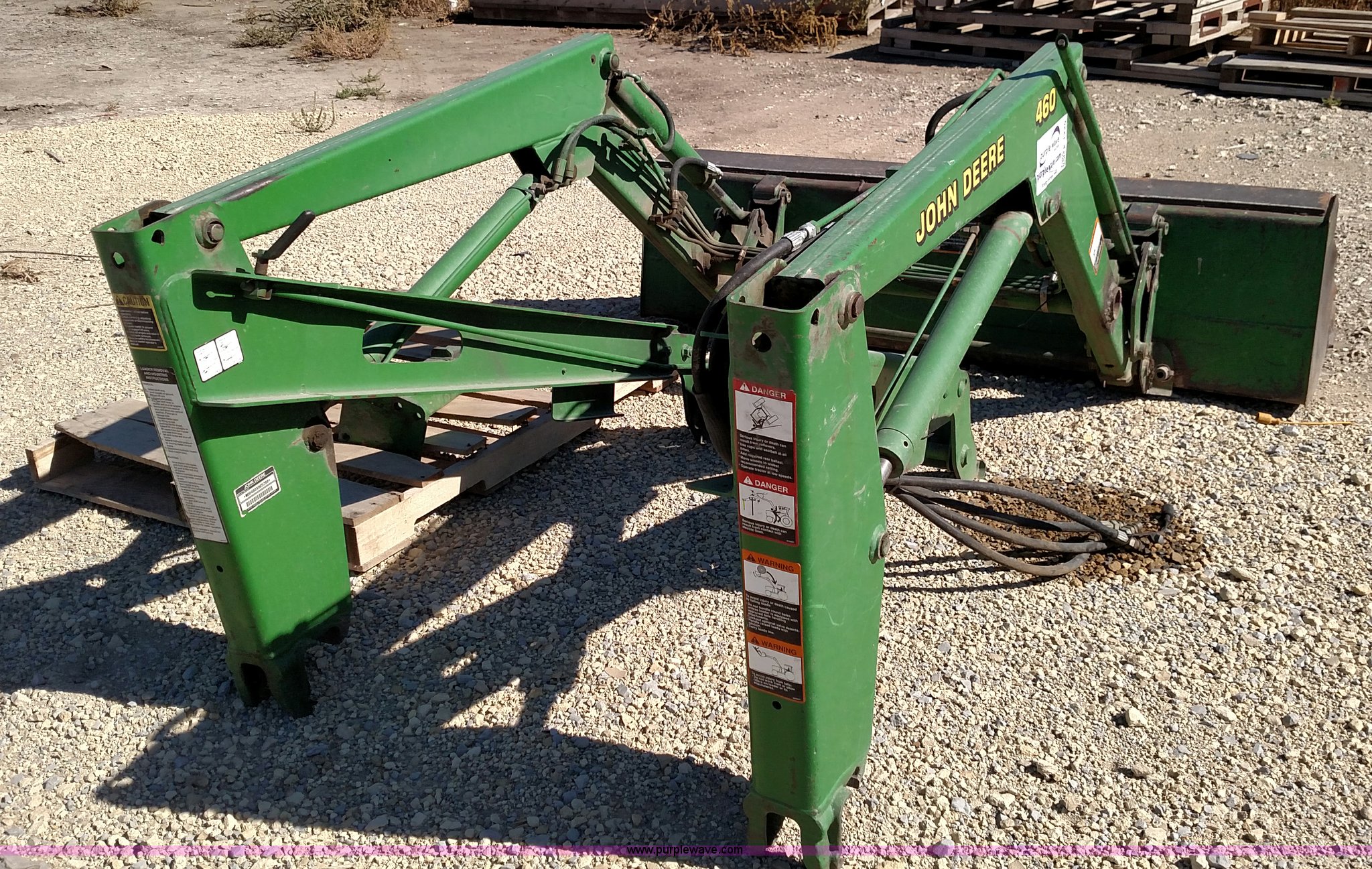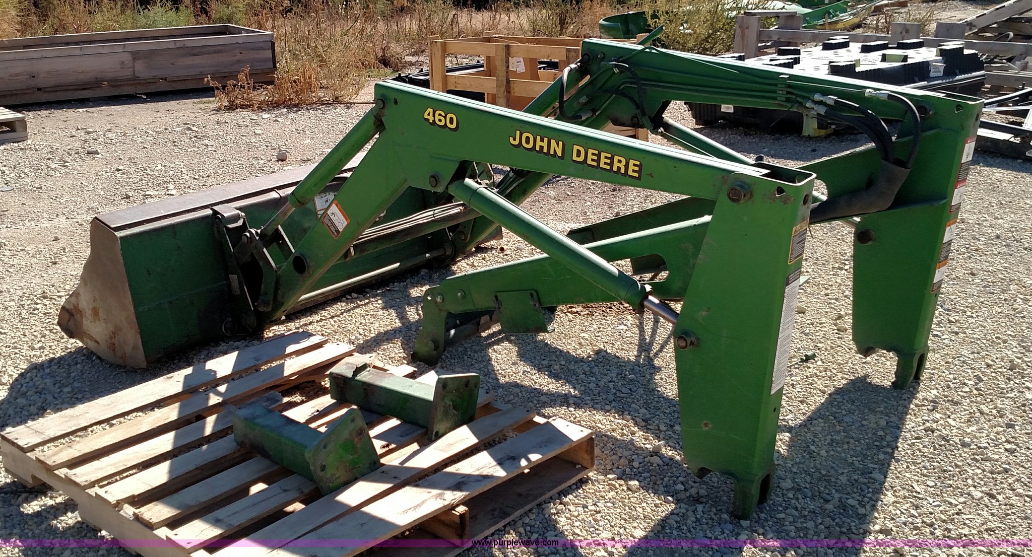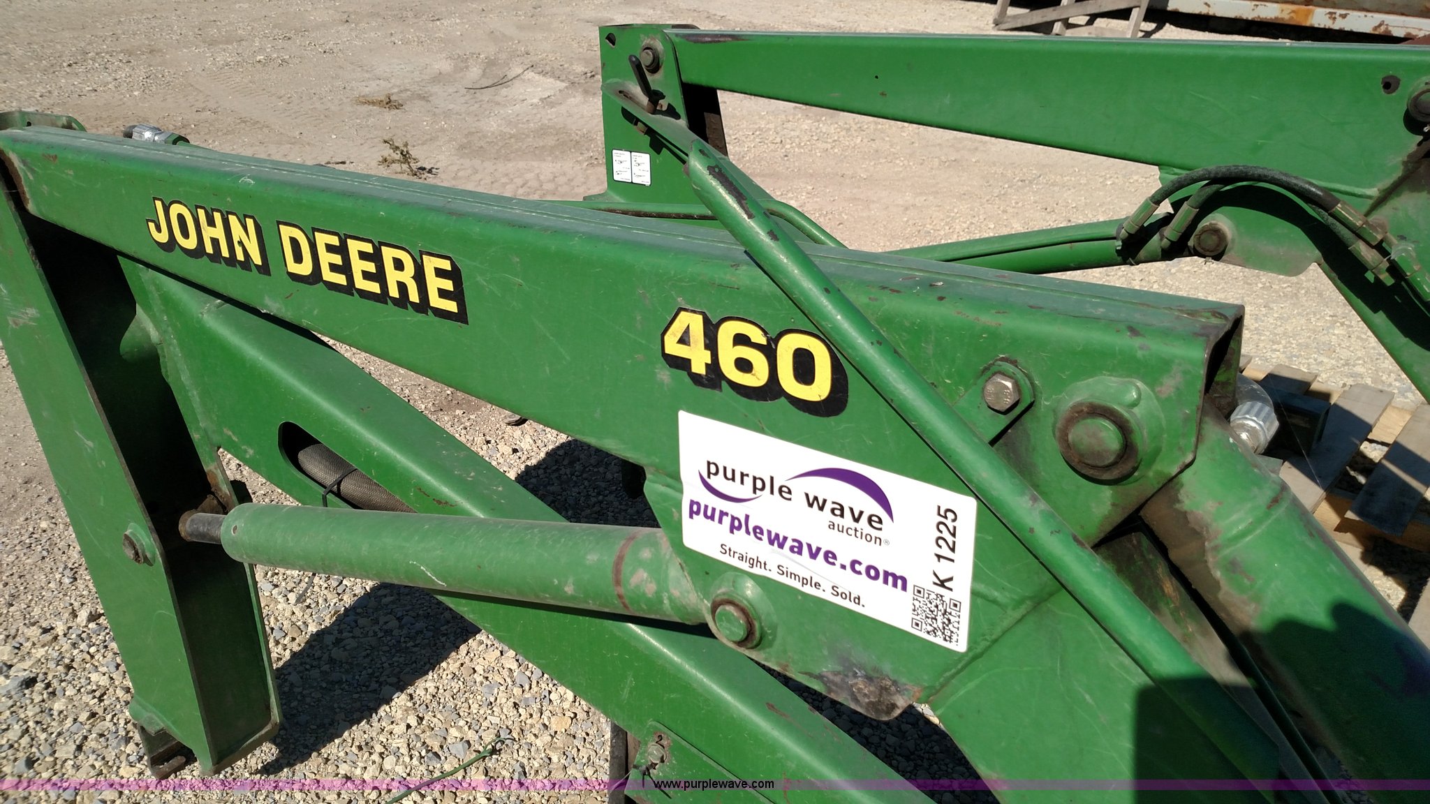 Purple Wave is selling a used Ag Tractor Loader or Attach. in Kansas. This item is a John Deere 460 loader with the following: 72"W bucket, Removed from John Deere 4600 compact utility tractor, Serial W00460X005288