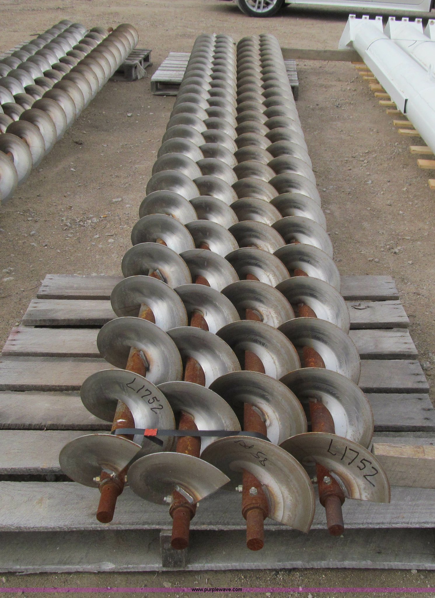 Purple Wave is selling a used Auger or Conveyor in Iowa. This item is a (4) augers with housings with the following: Approx. 19'L x 9.75" I.D. housing, Approx. 20'L x 9" diameter stainless steel auger flighting, Unused