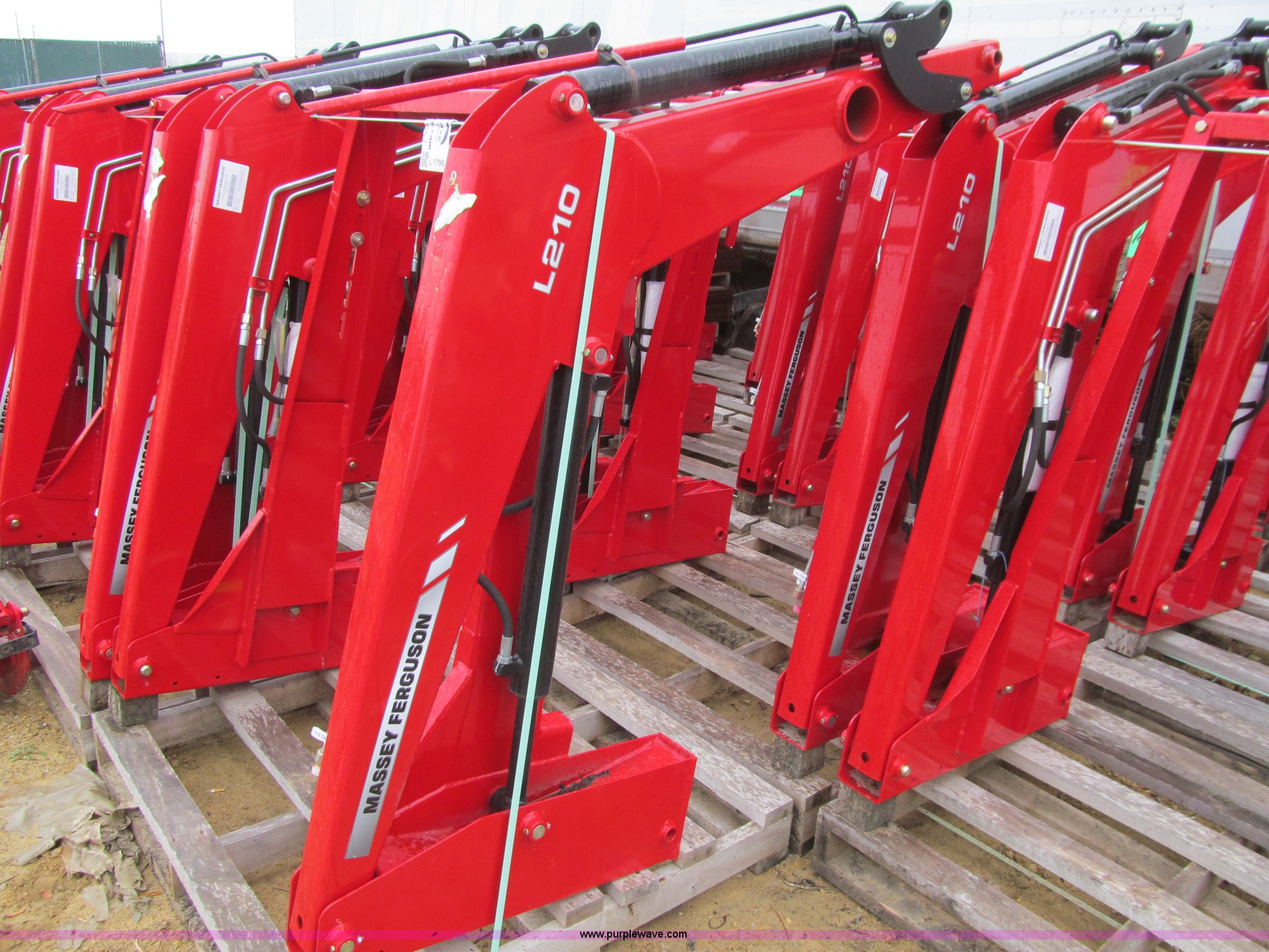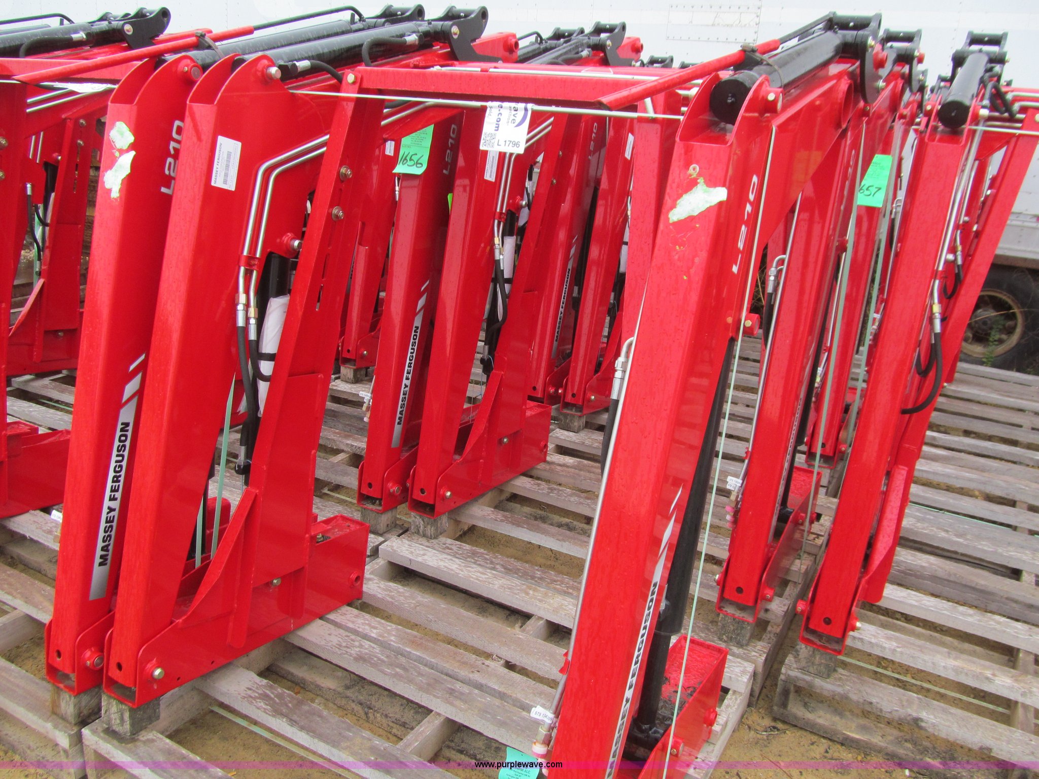 Purple Wave is selling a used Ag Tractor Loader or Attach. in Iowa. This item is a Massey-Ferguson L210 loader with the following: 111" lift height, 2,650 lbs capacity, No bucket included, Unused, Mounting bracket, Part No. 4238225, Part No. 4238029, Serial VZ4238080002
