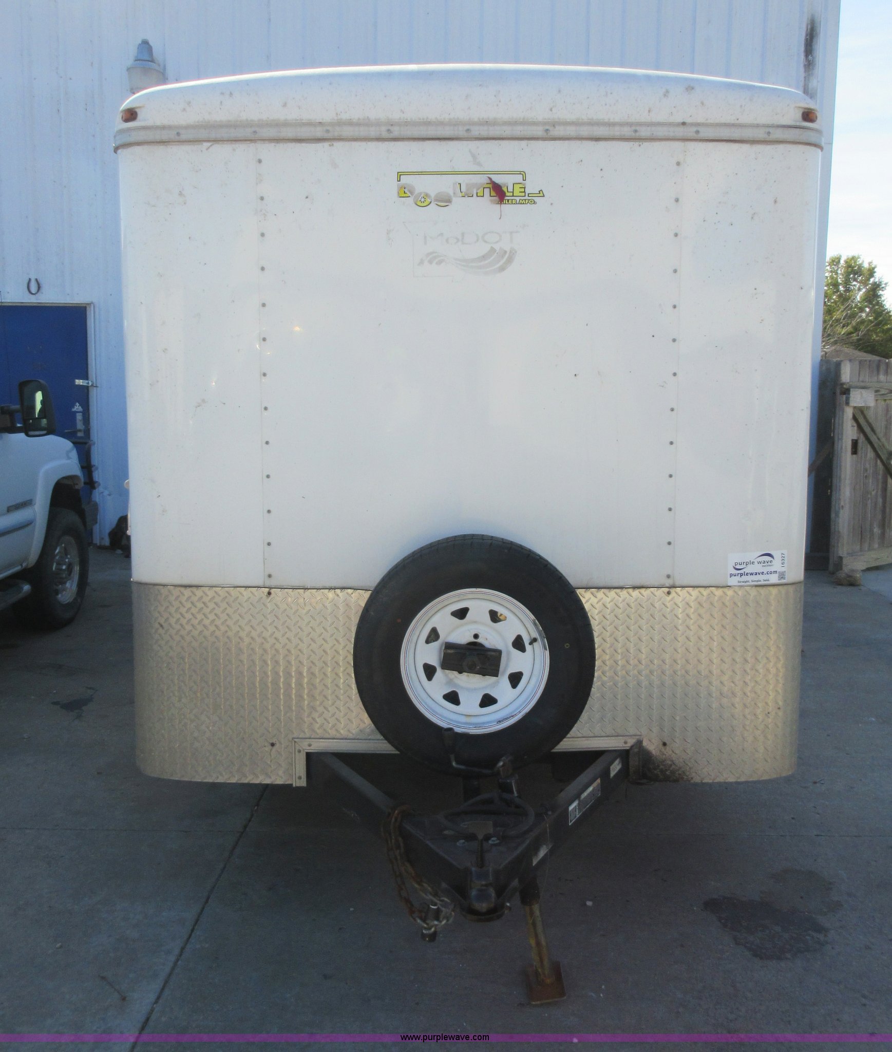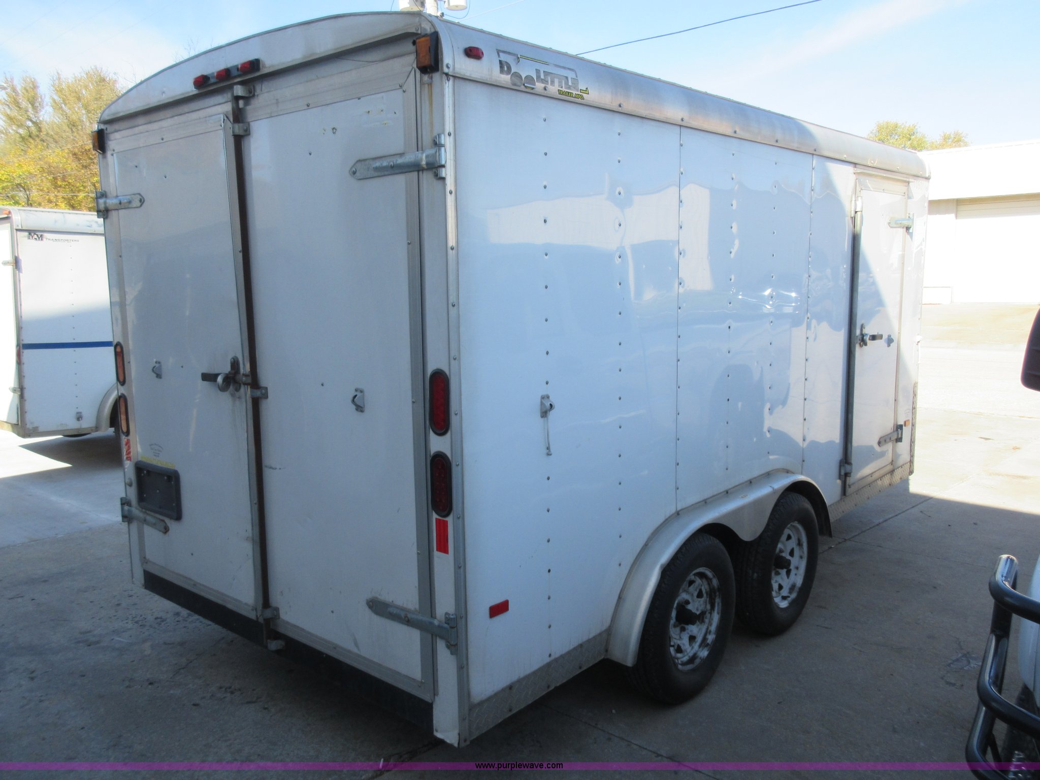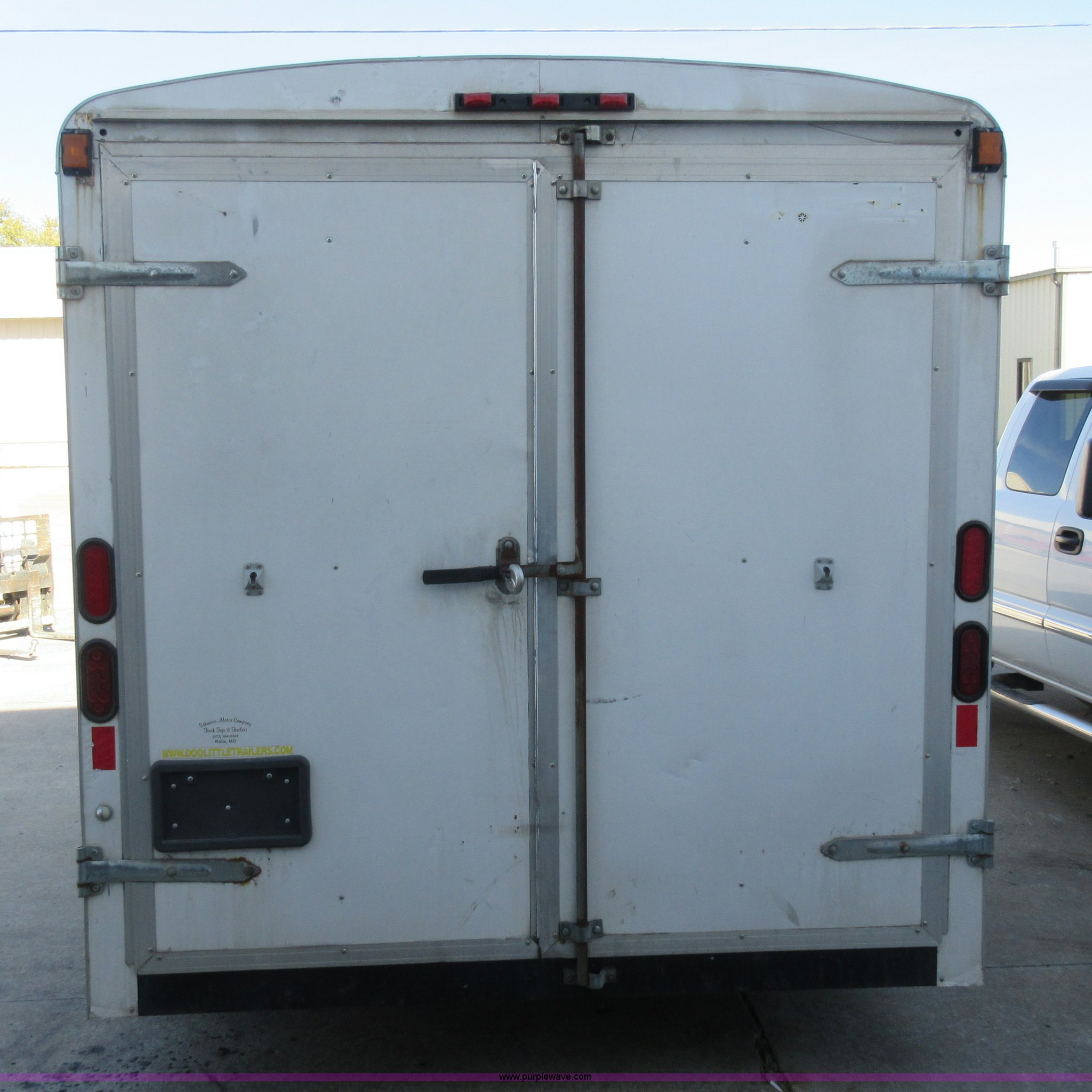 Purple Wave is selling a used Enclosed Cargo Trailer in Missouri. This item is a 2007 Doolittle enclosed cargo trailer with the following: 14.5'L, 74"W x 71"H rear door, Side door, Manual jack, 2 5/16" ball hitch, Electric brakes, 205/75R15 tires, GVWR 7,000 lbs, Interior boxes are not included