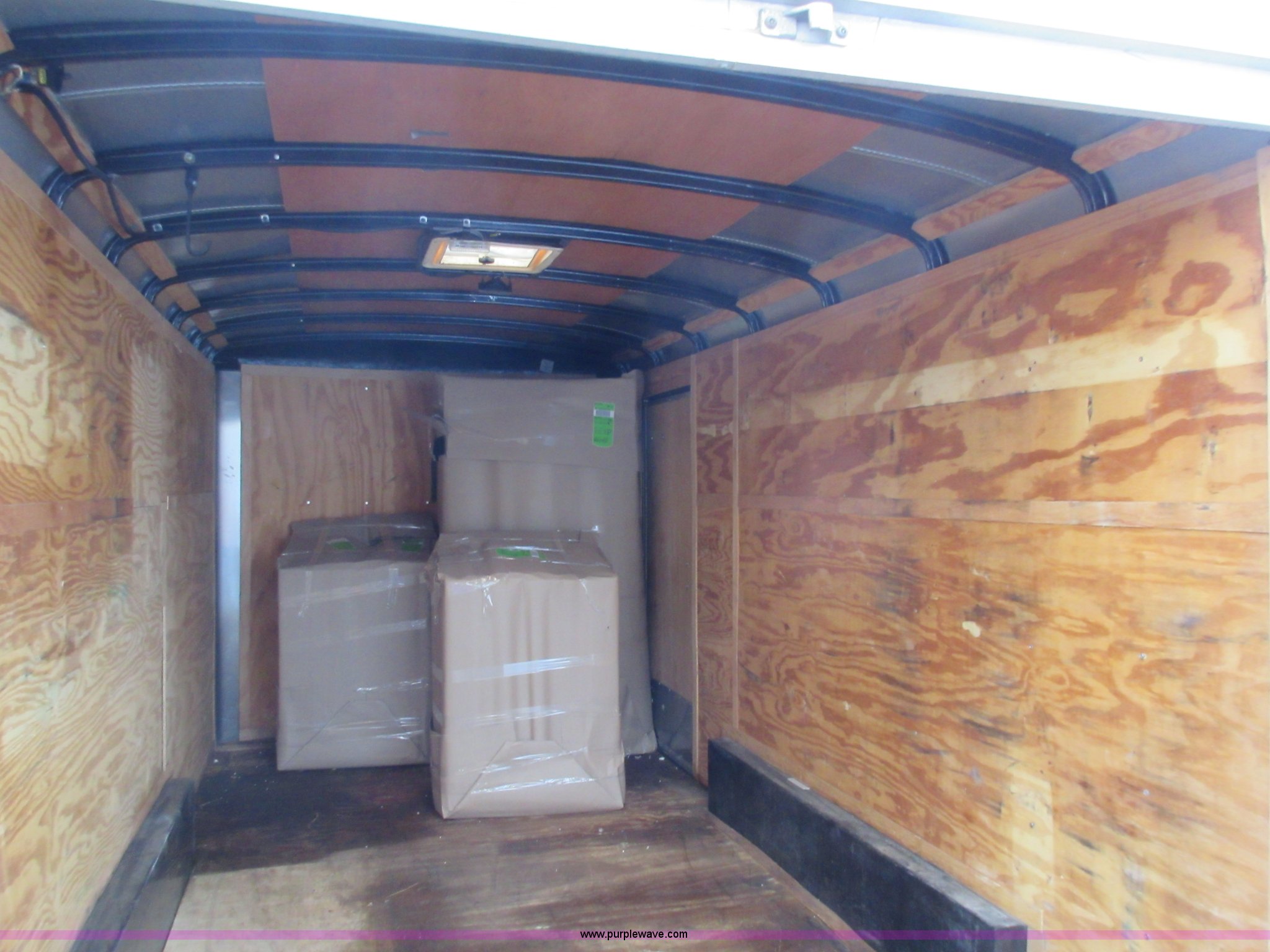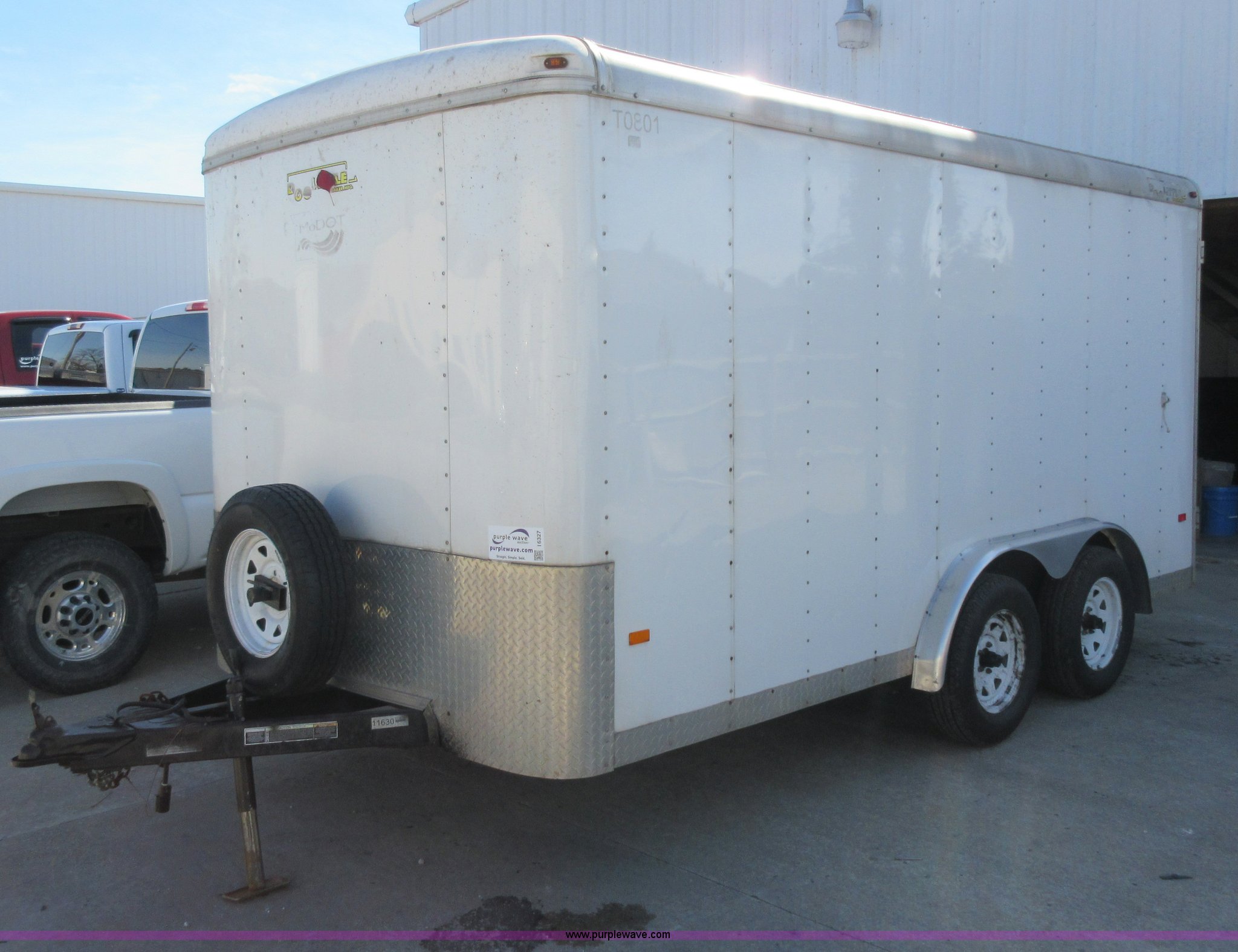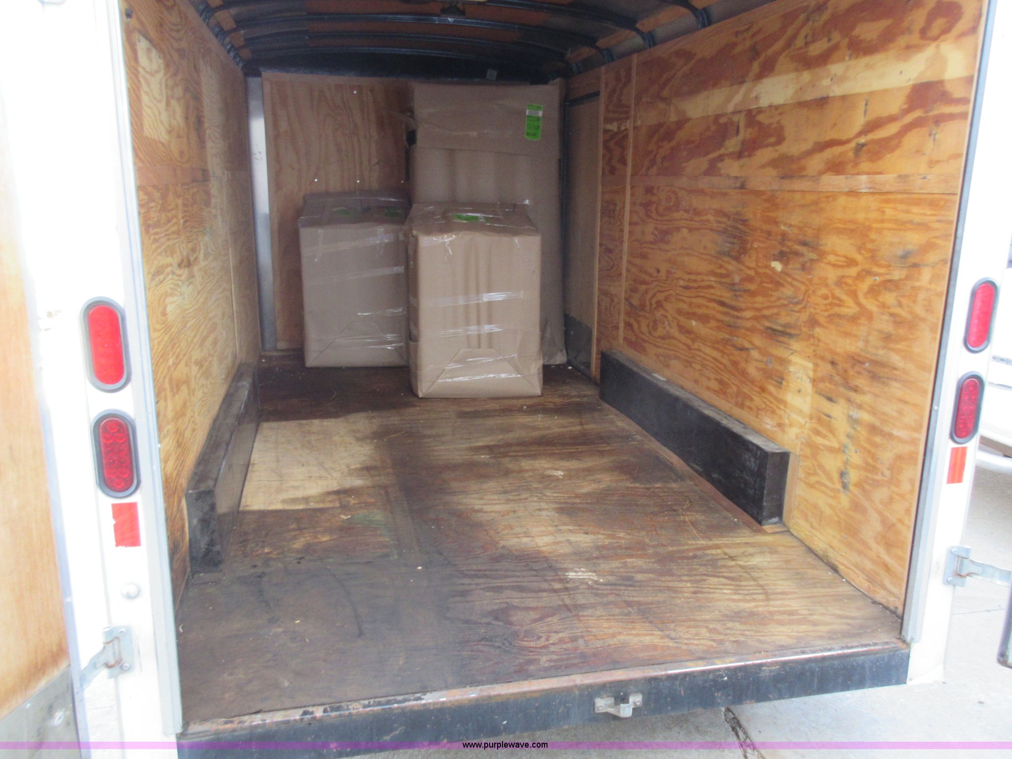 Purple Wave is selling a used Enclosed Cargo Trailer in Missouri. This item is a 2007 Doolittle enclosed cargo trailer with the following: 14.5'L, 74"W x 71"H rear door, Side door, Manual jack, 2 5/16" ball hitch, Electric brakes, 205/75R15 tires, GVWR 7,000 lbs, Interior boxes are not included