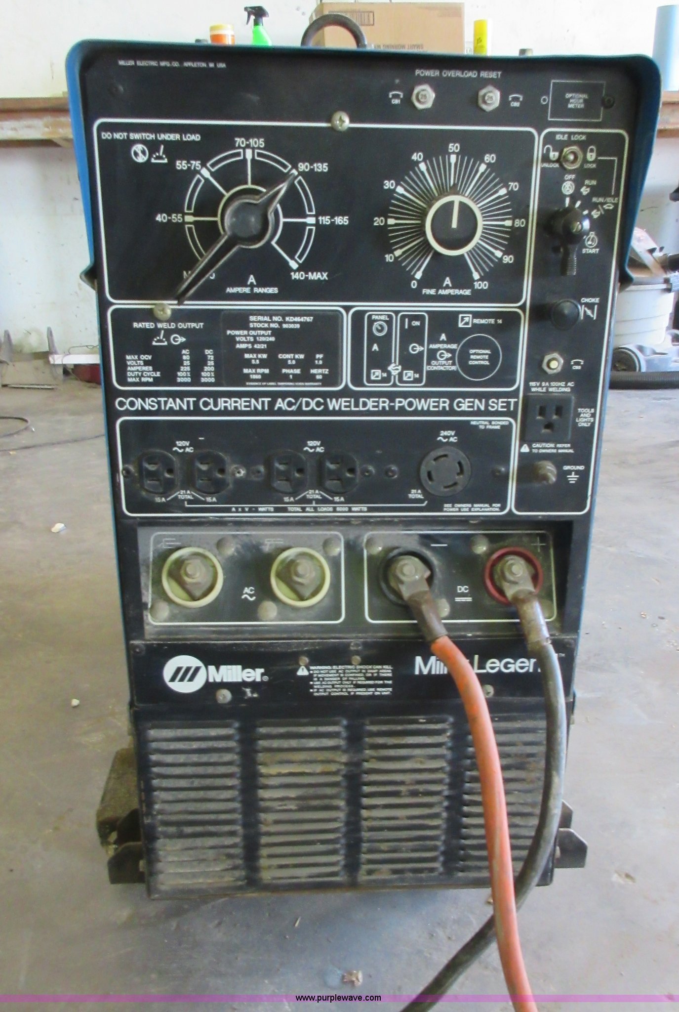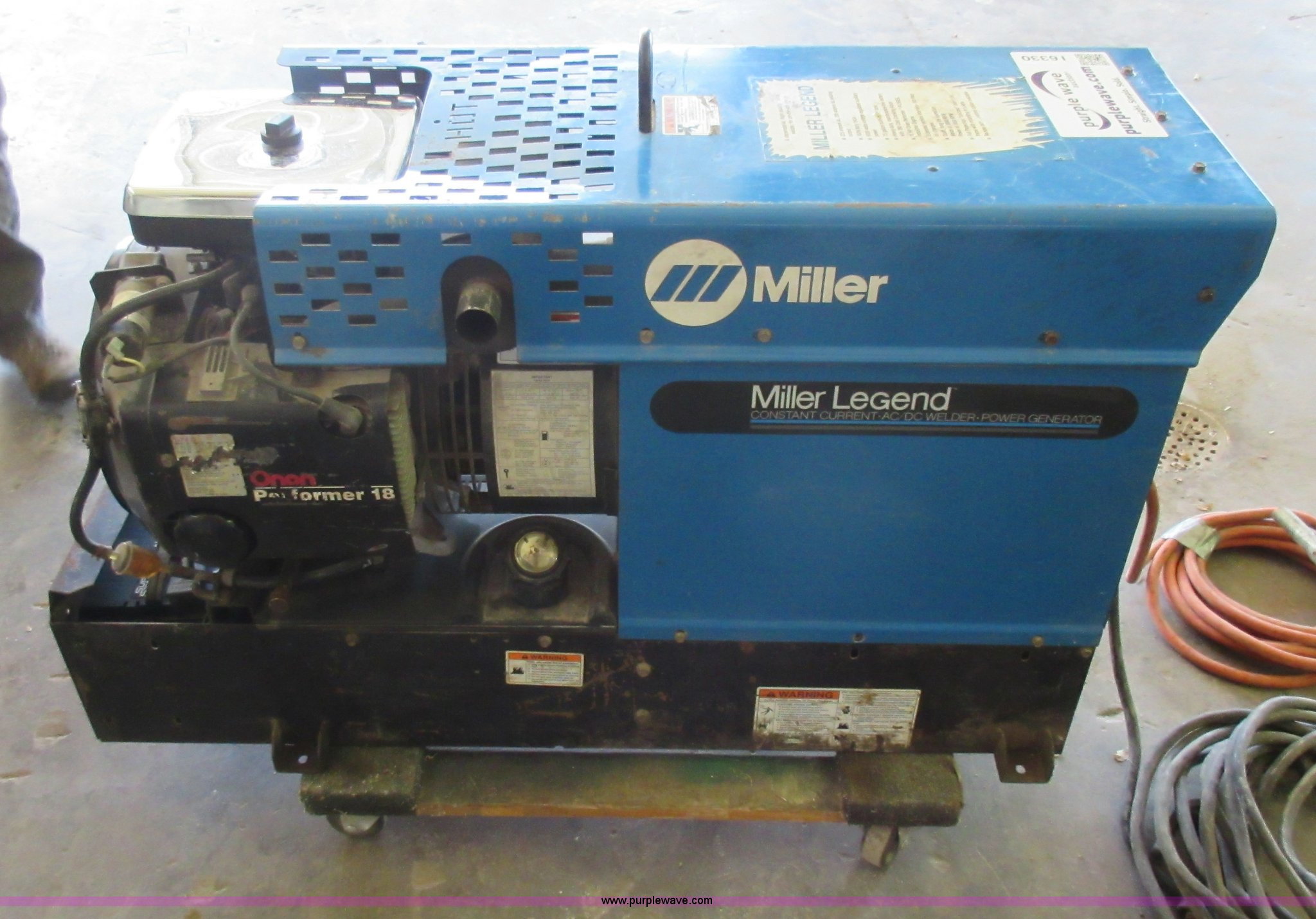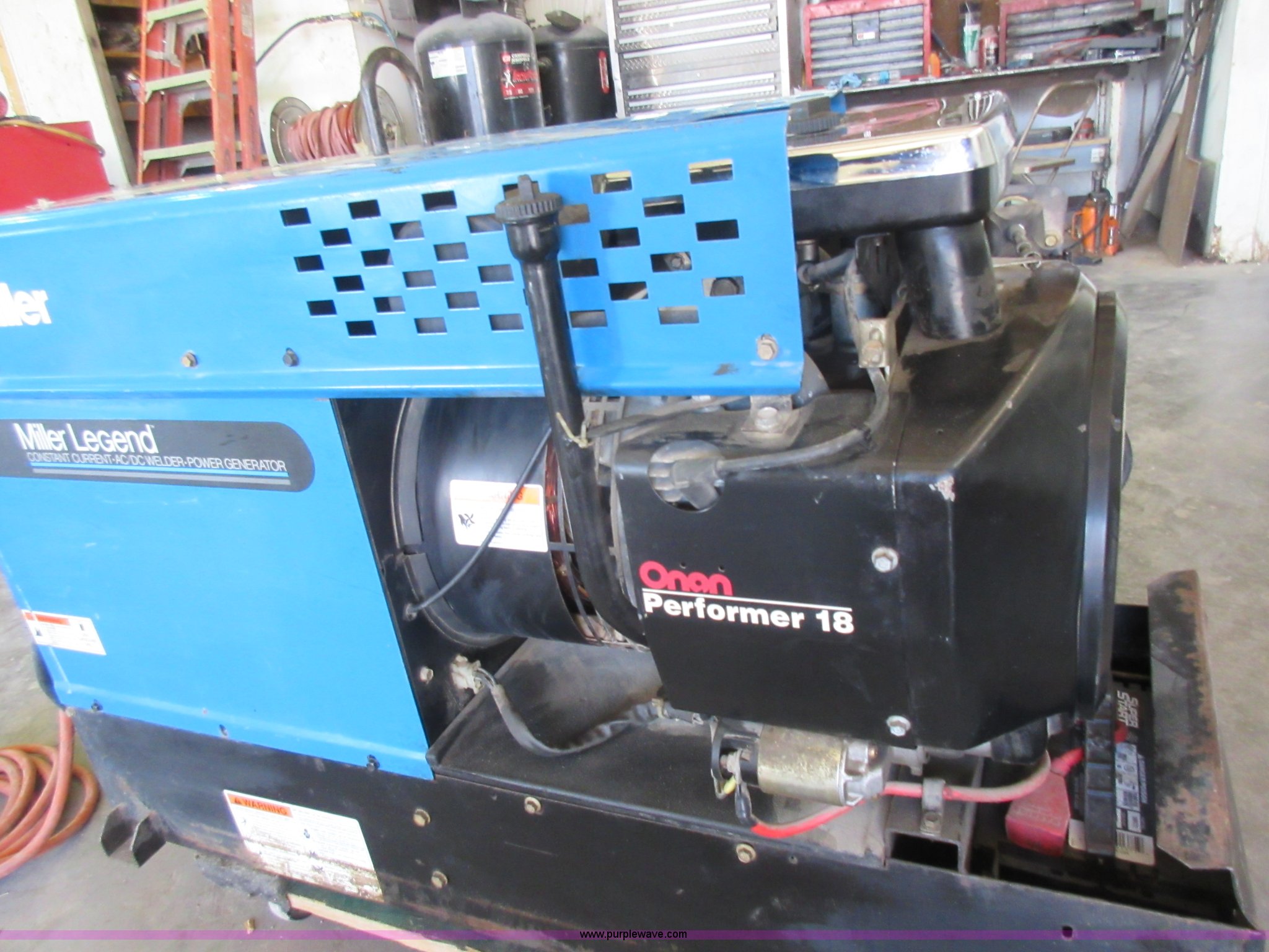 Purple Wave is selling a used Welder (Manual) in Missouri. This item is a Miller Legend welder/generator with the following: Onan Performer 18 twin cylinder gas engine, 120/240V outputs, 25'L ground lead, 75'L main lead, Cover