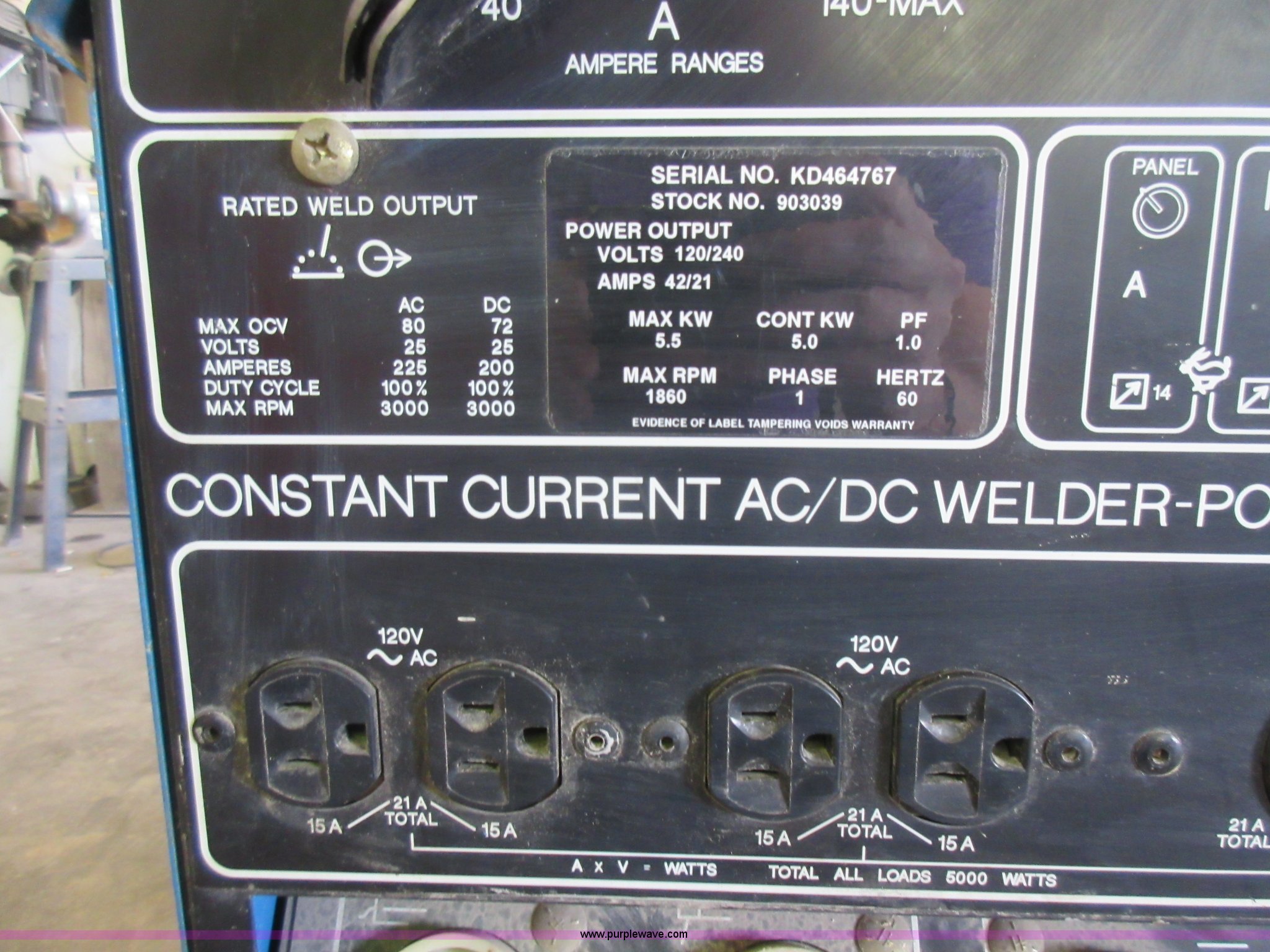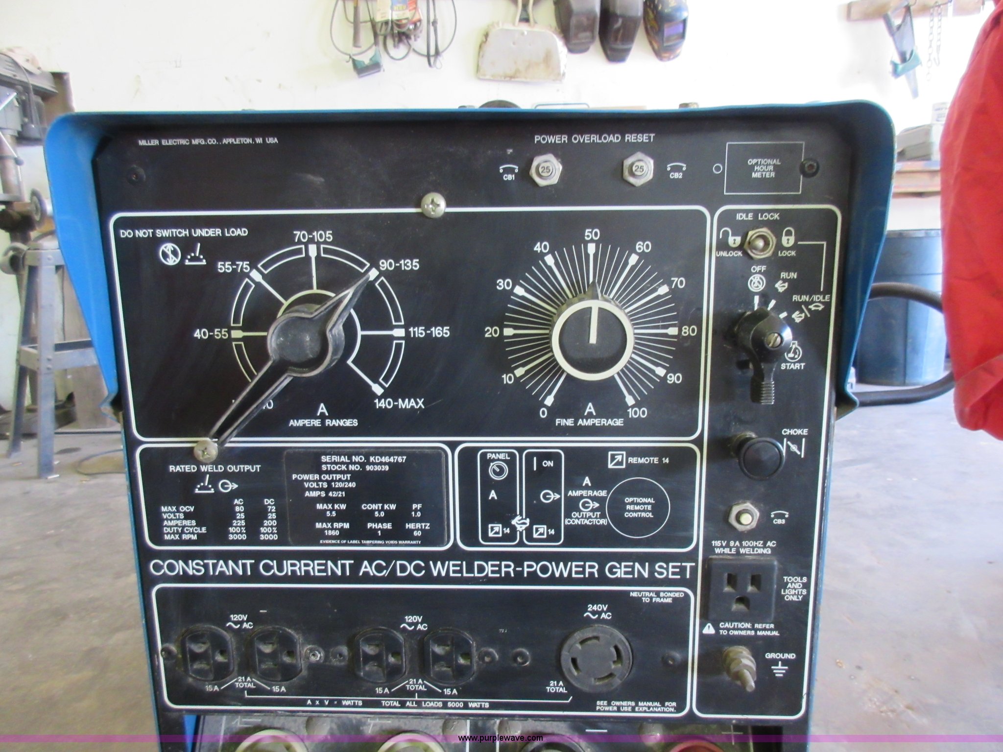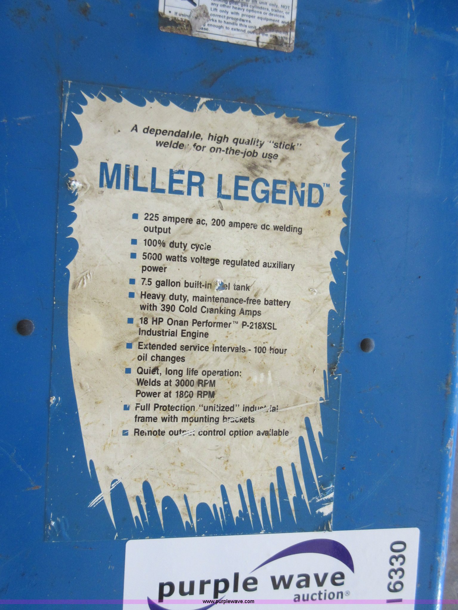 Purple Wave is selling a used Welder (Manual) in Missouri. This item is a Miller Legend welder/generator with the following: Onan Performer 18 twin cylinder gas engine, 120/240V outputs, 25'L ground lead, 75'L main lead, Cover