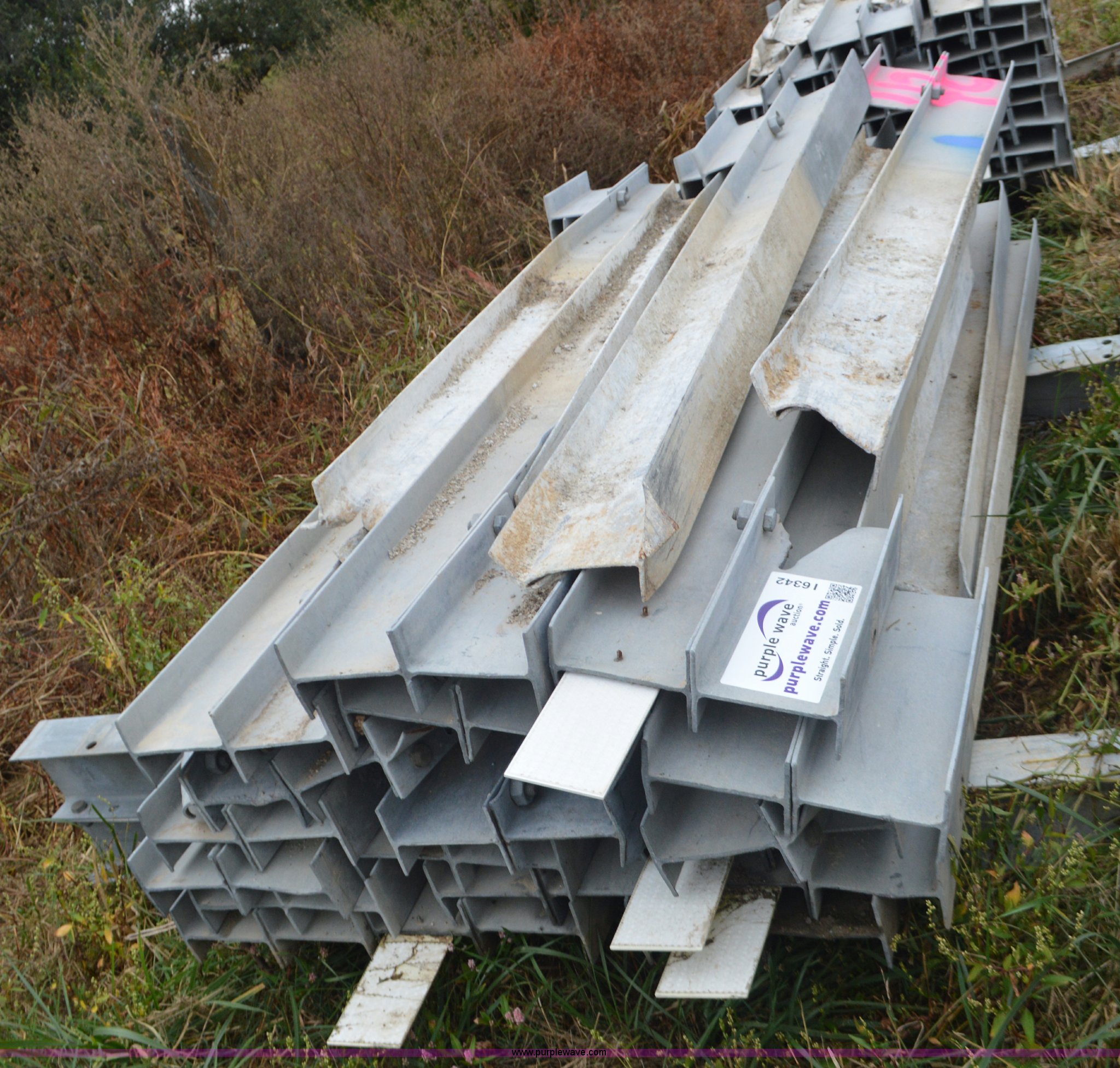 Purple Wave is selling a used Building Materials in Missouri. This item is a Approximately 42 galvanized guard rail posts with the following: 72" x 6" x 4", 13" x 4" x 6" bolt-on side piece