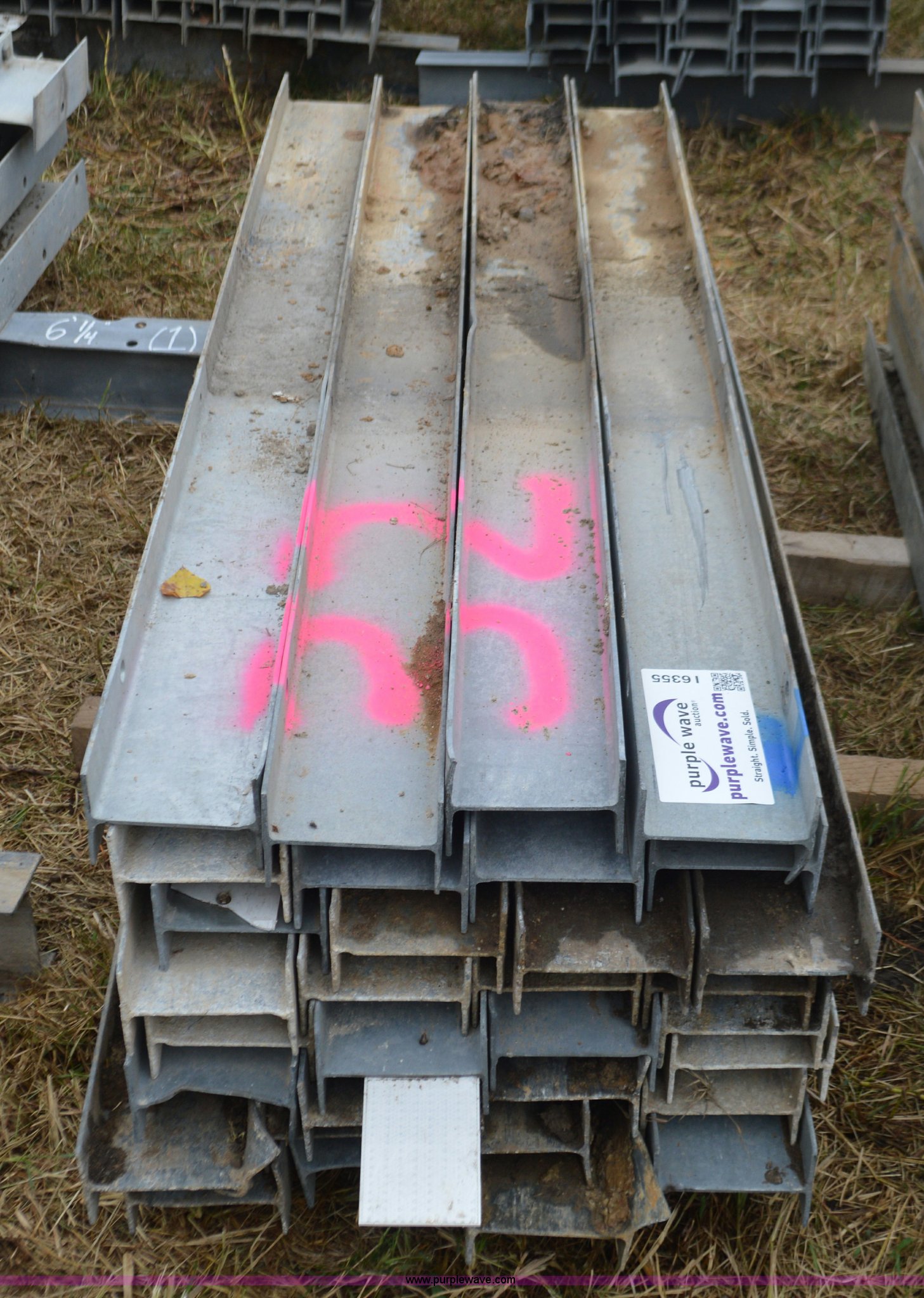 Purple Wave is selling a used Building Materials in Missouri. This item is a Approximately 32 guard rail posts with the following: 6' x 6" x 4"